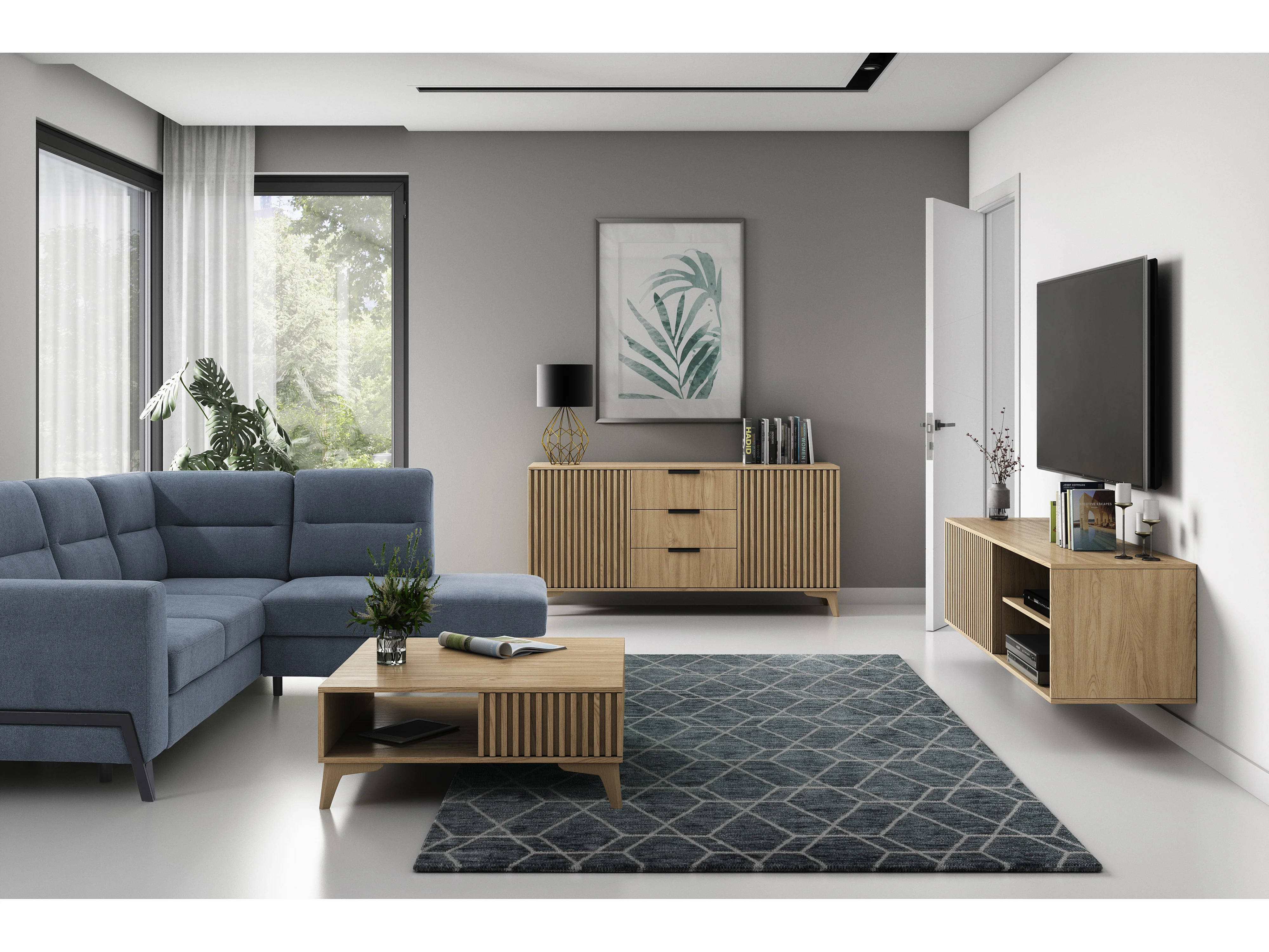 Petite table basse carrée bois clair rainuré – Collection Bazen