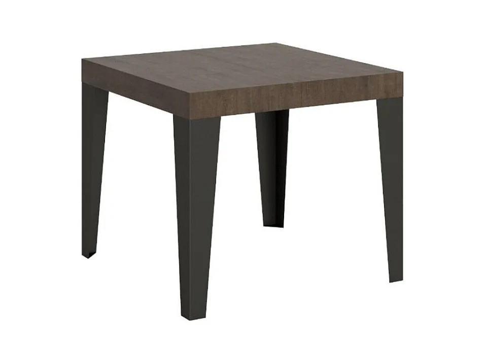 Petite table carrée 90-90cm extensible 10 personnes 90 à 246cm bois noyer et pieds métal anthracite Flavio