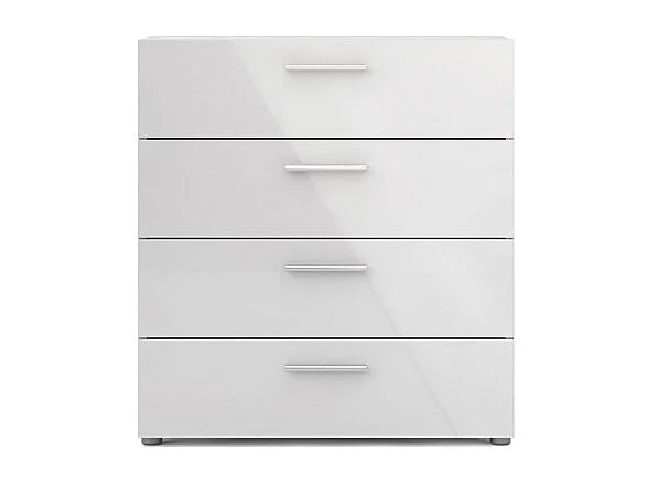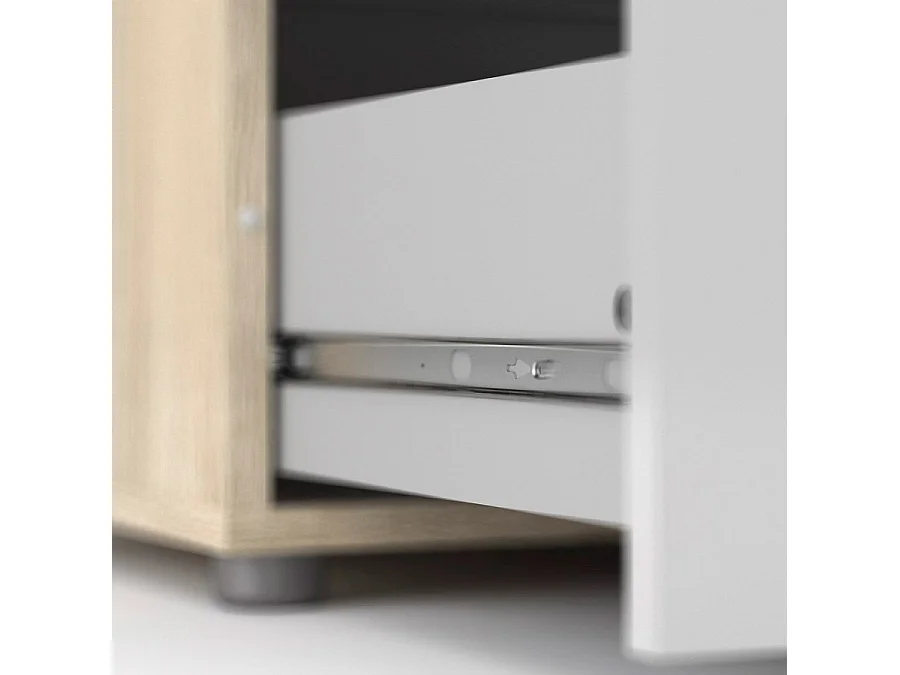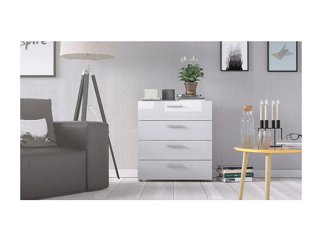 Petra Commode 4 tiroirs, finition chêne structuré et blanc brillant.
