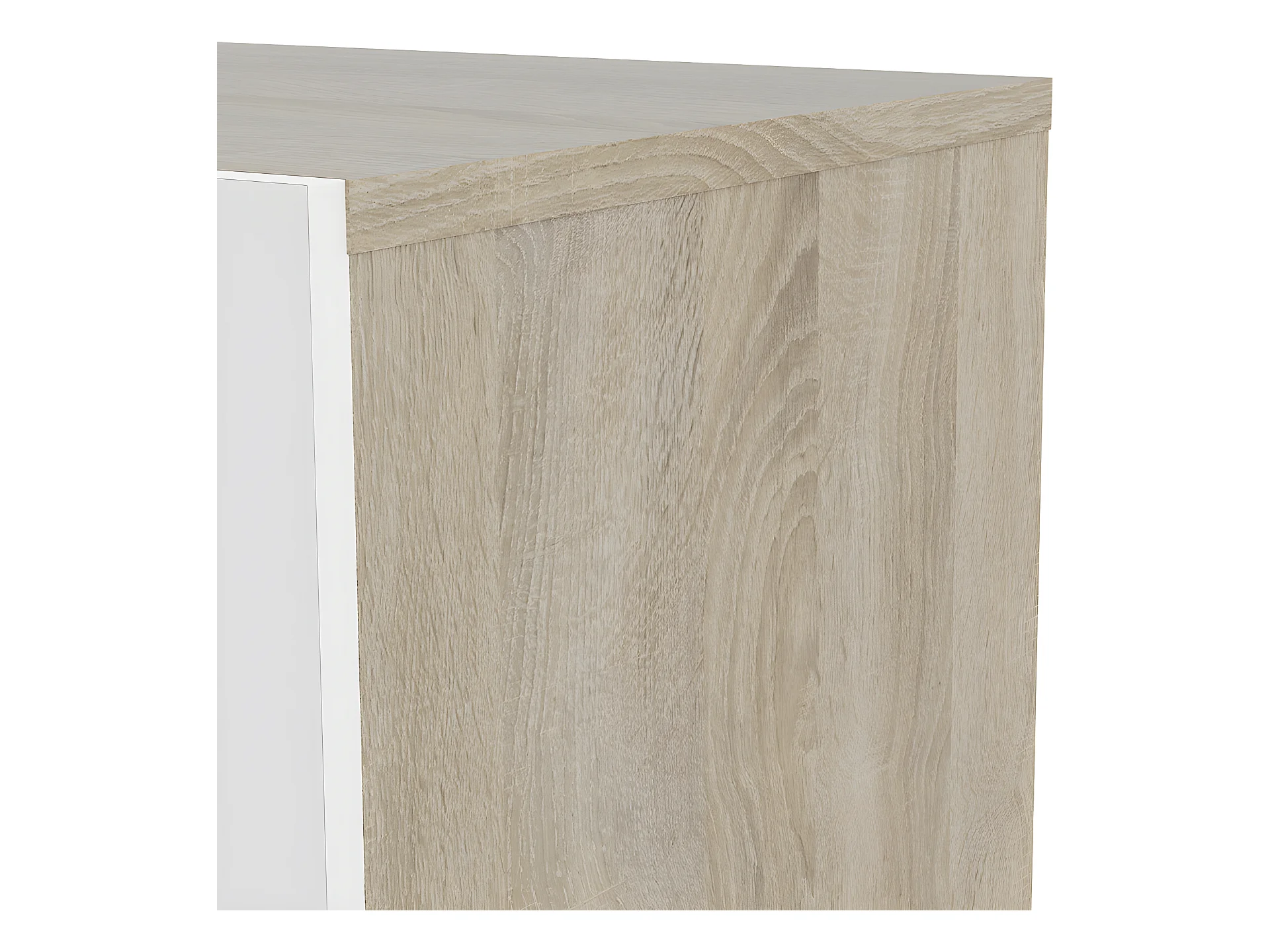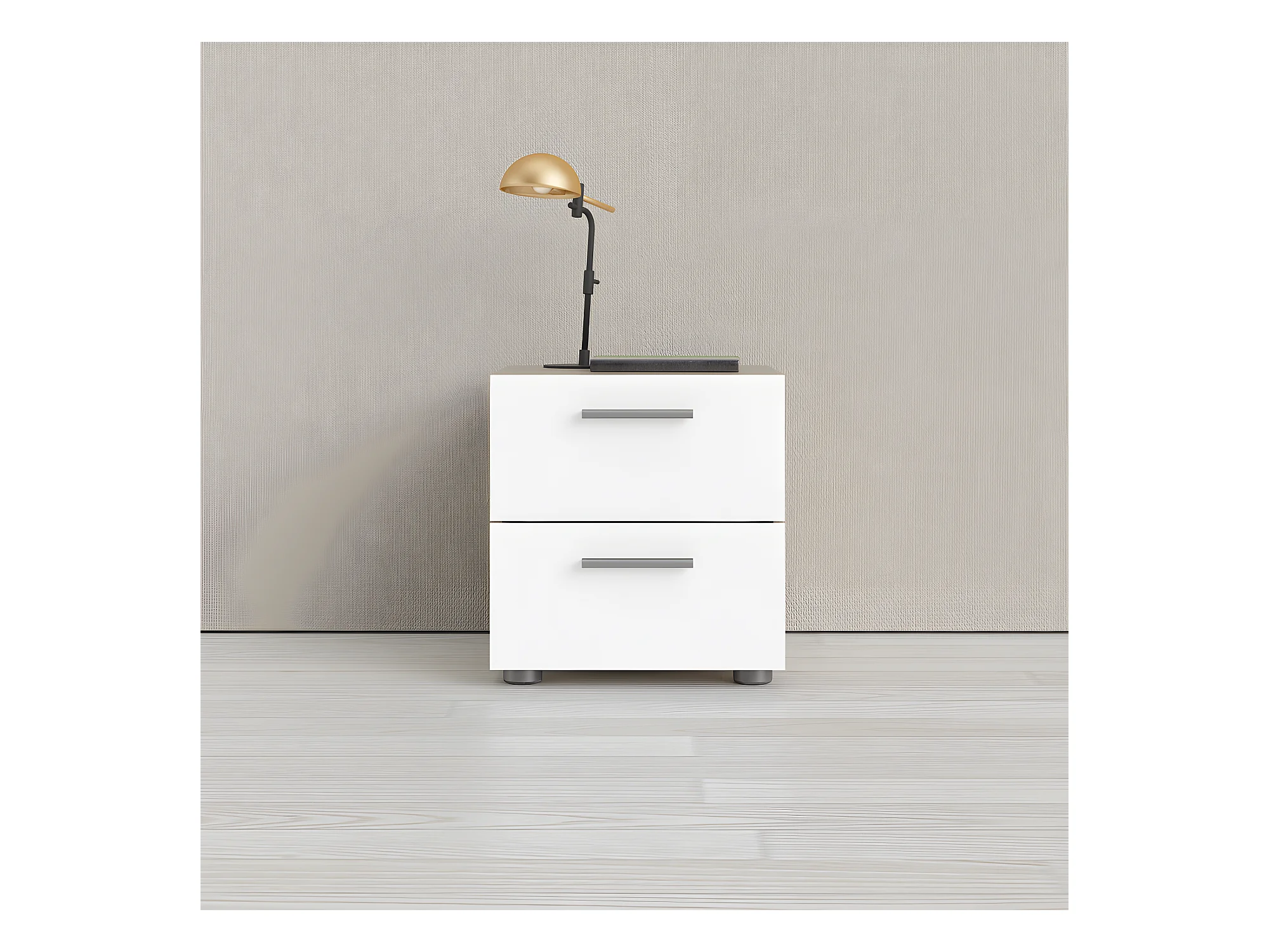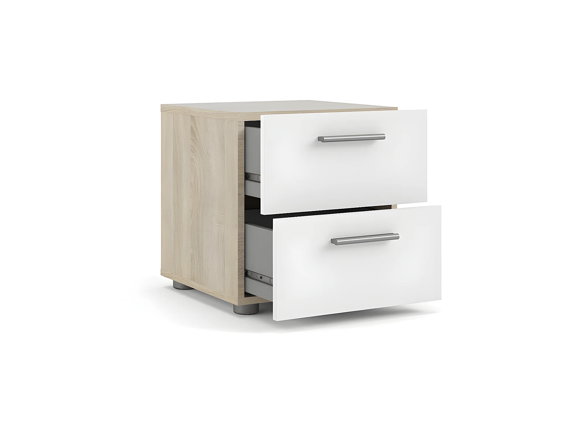 Petra Table de chevet à 2 tiroirs, imitation chêne, blanc brillant.