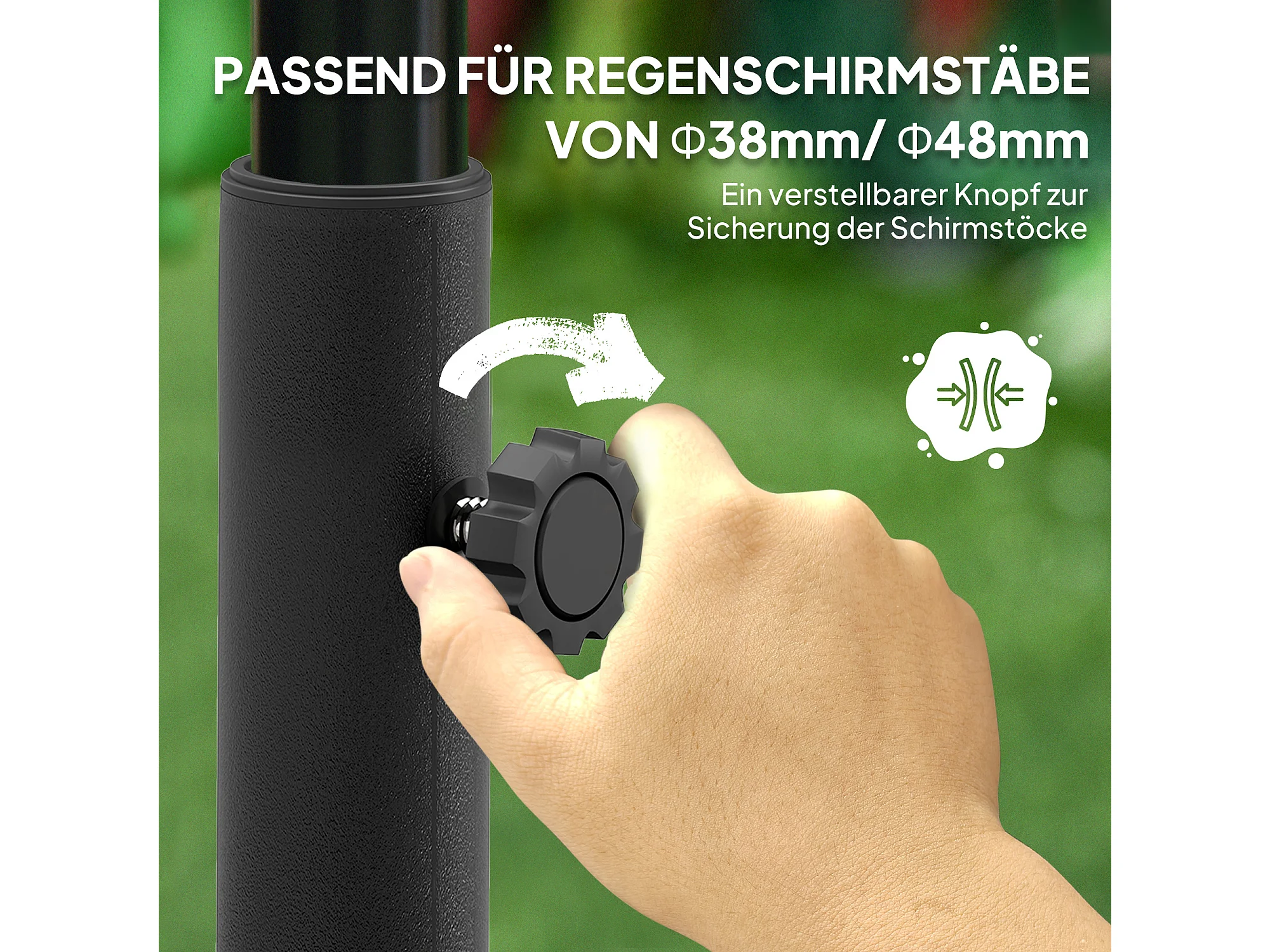 Pied de parasol carré mobile, remplissable jusqu’à 25kg, plastique noir, roulettes avec freins (48x48x32.5cm)