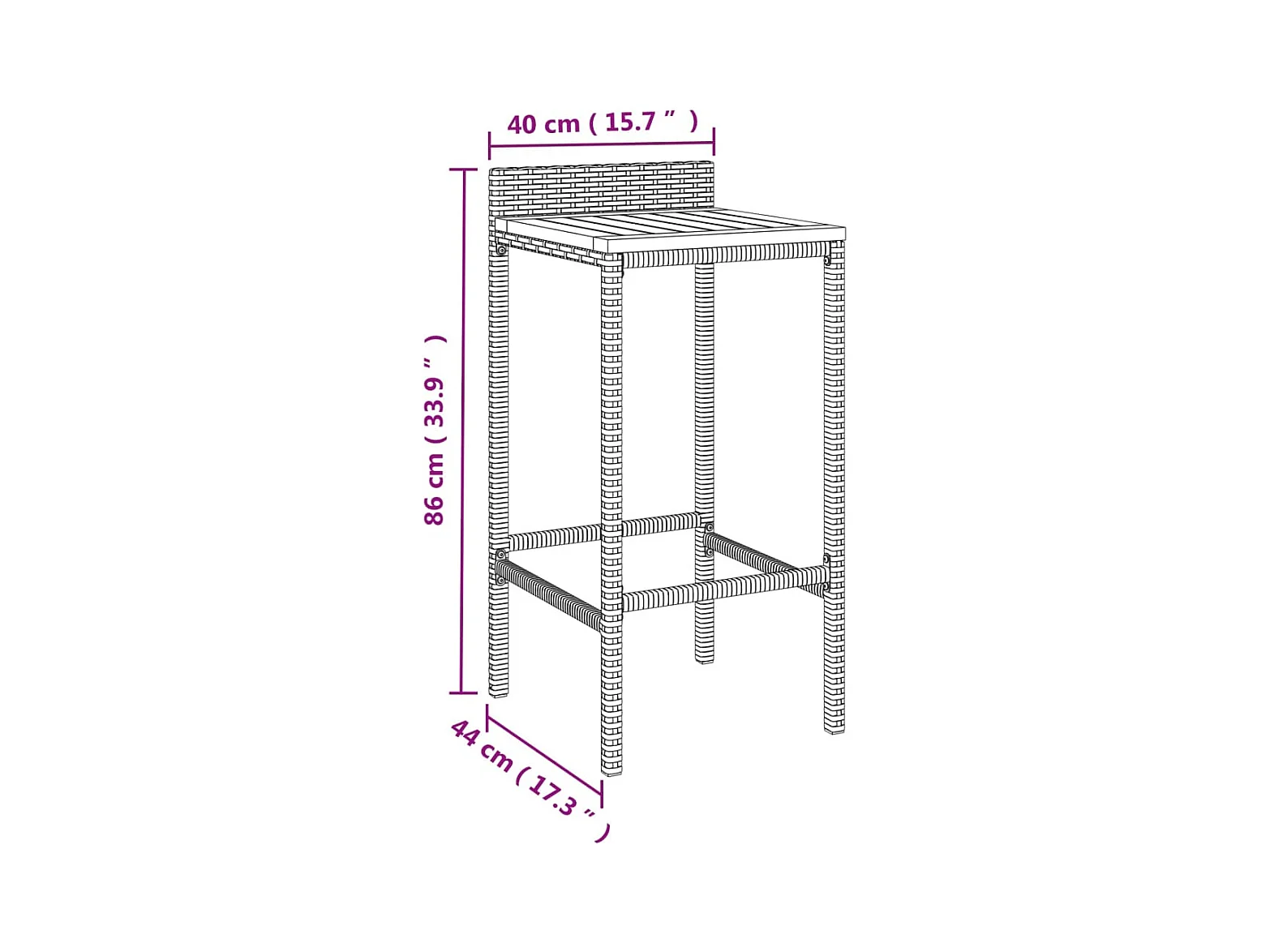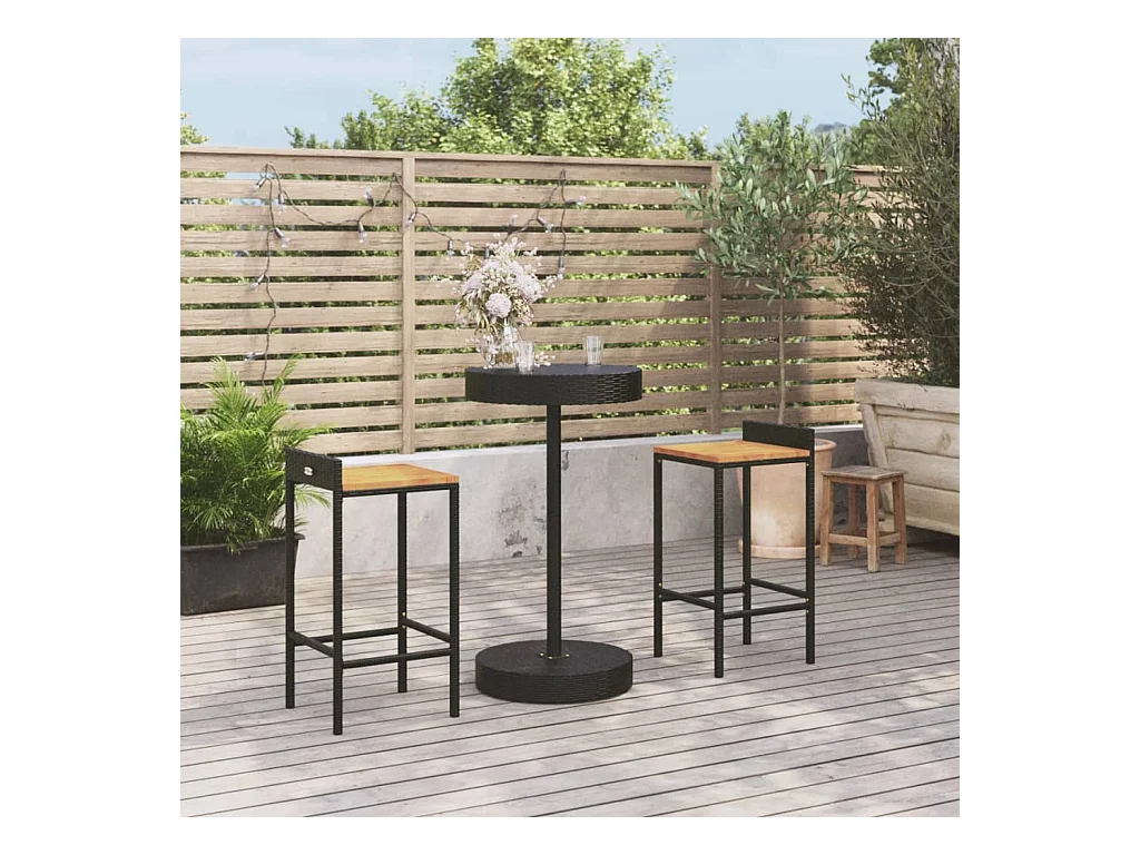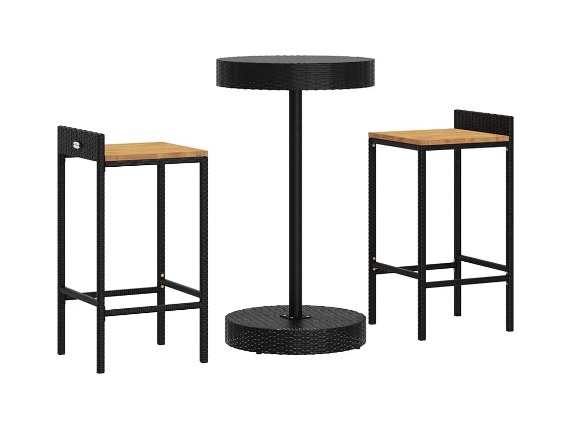 Pierre-Guillaume Ensemble de bar jardin 3 pcs noir poly rotin/bois massif acacia