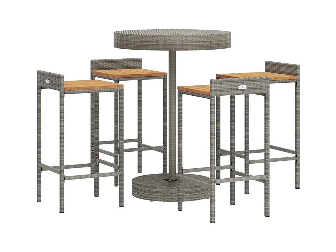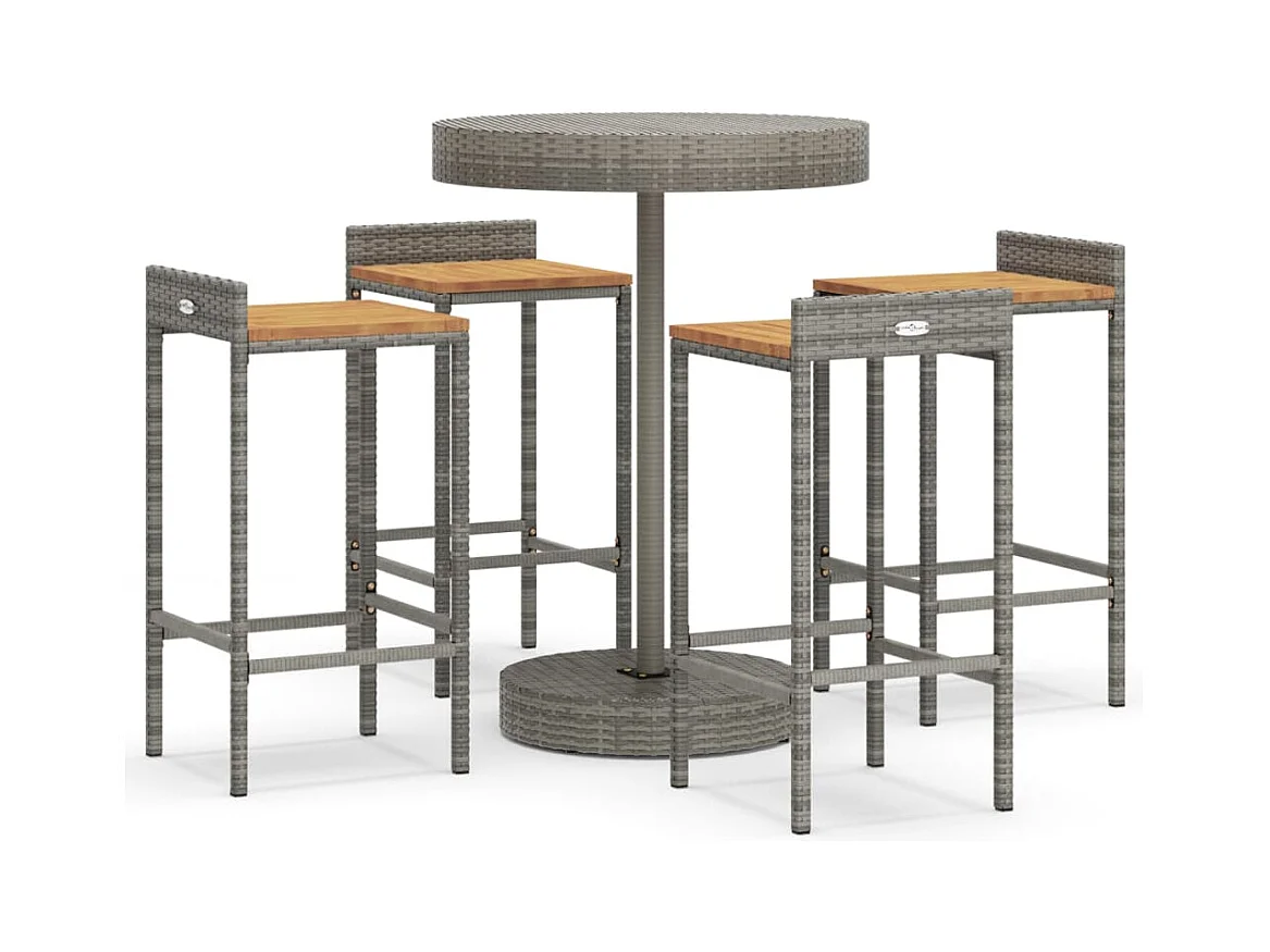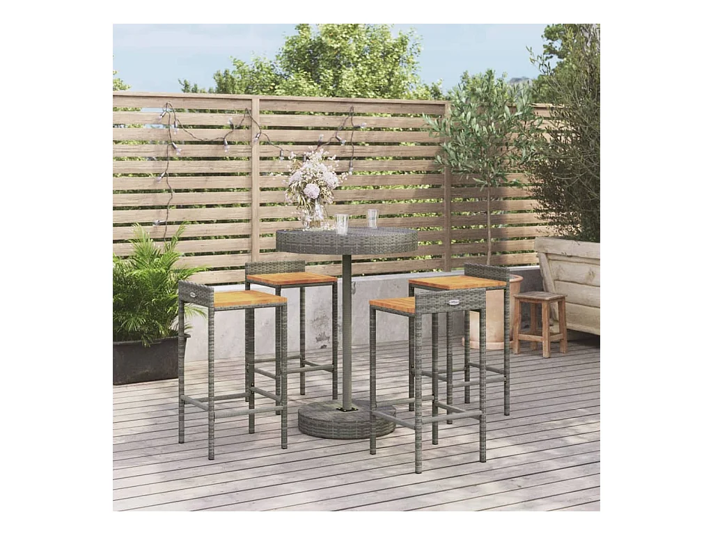 Arvind Ensemble de bar jardin 5 pcs gris poly rotin/bois massif acacia