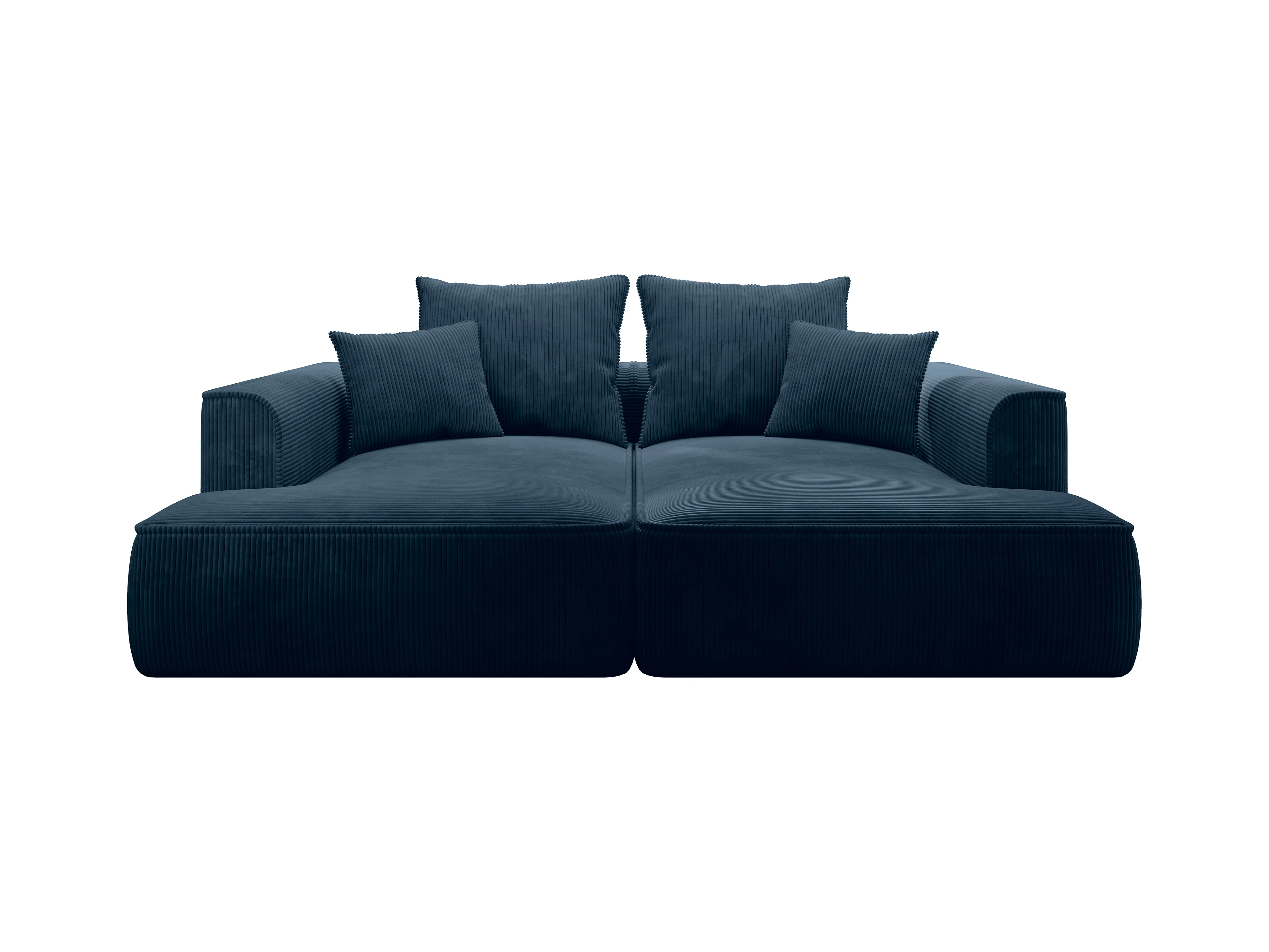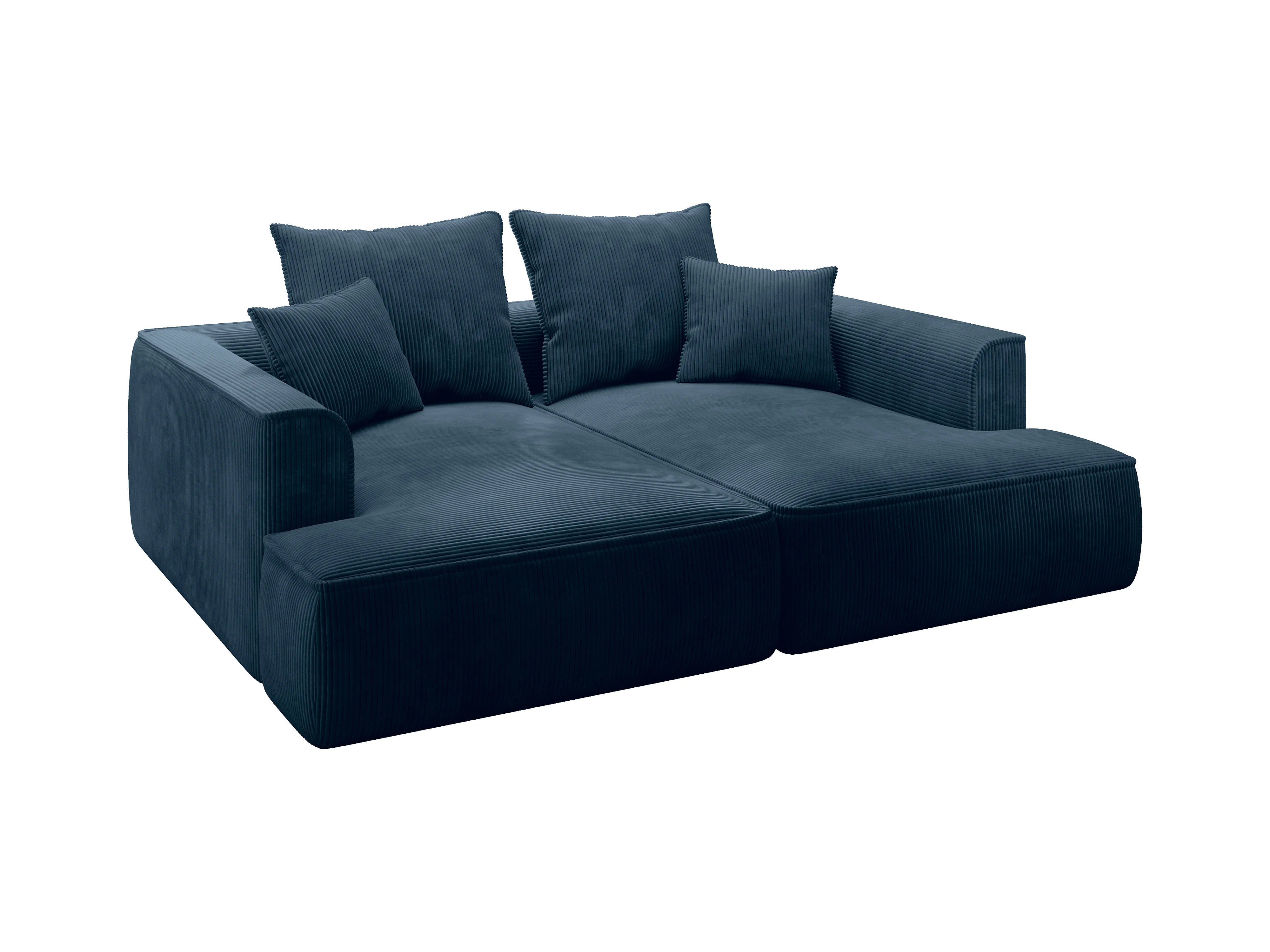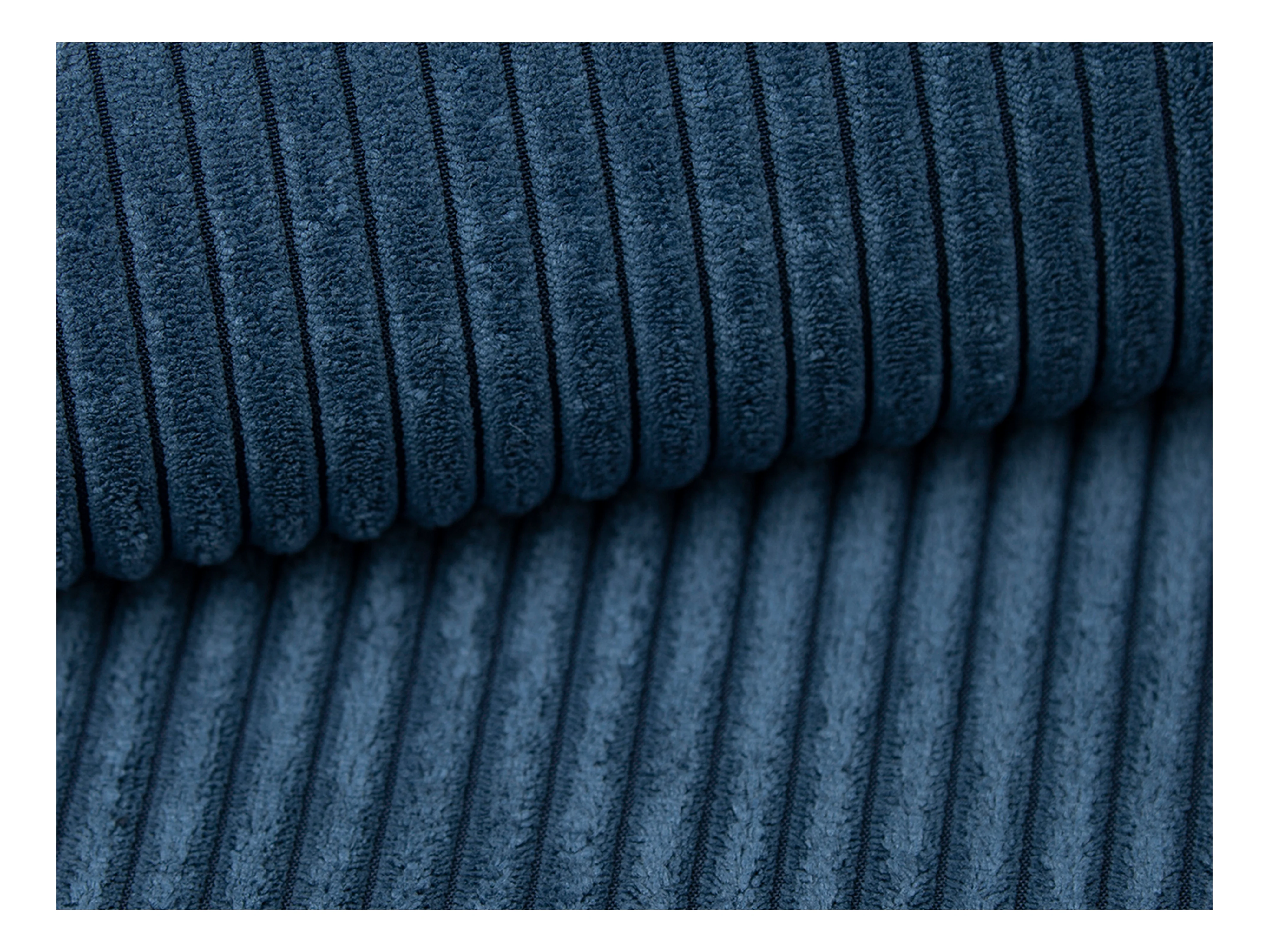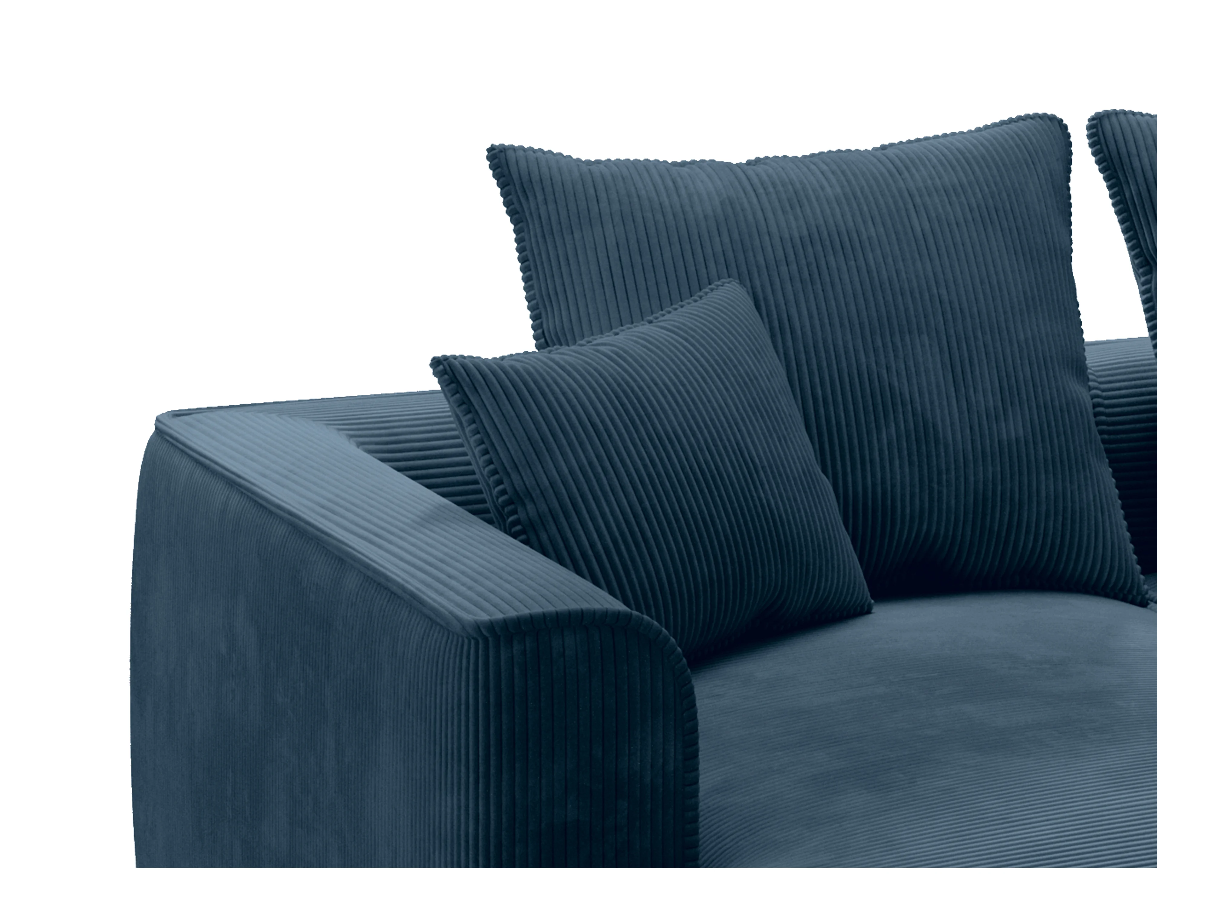 Canapé 3 places confort assise profonde en velours côtelé bleu PINETA