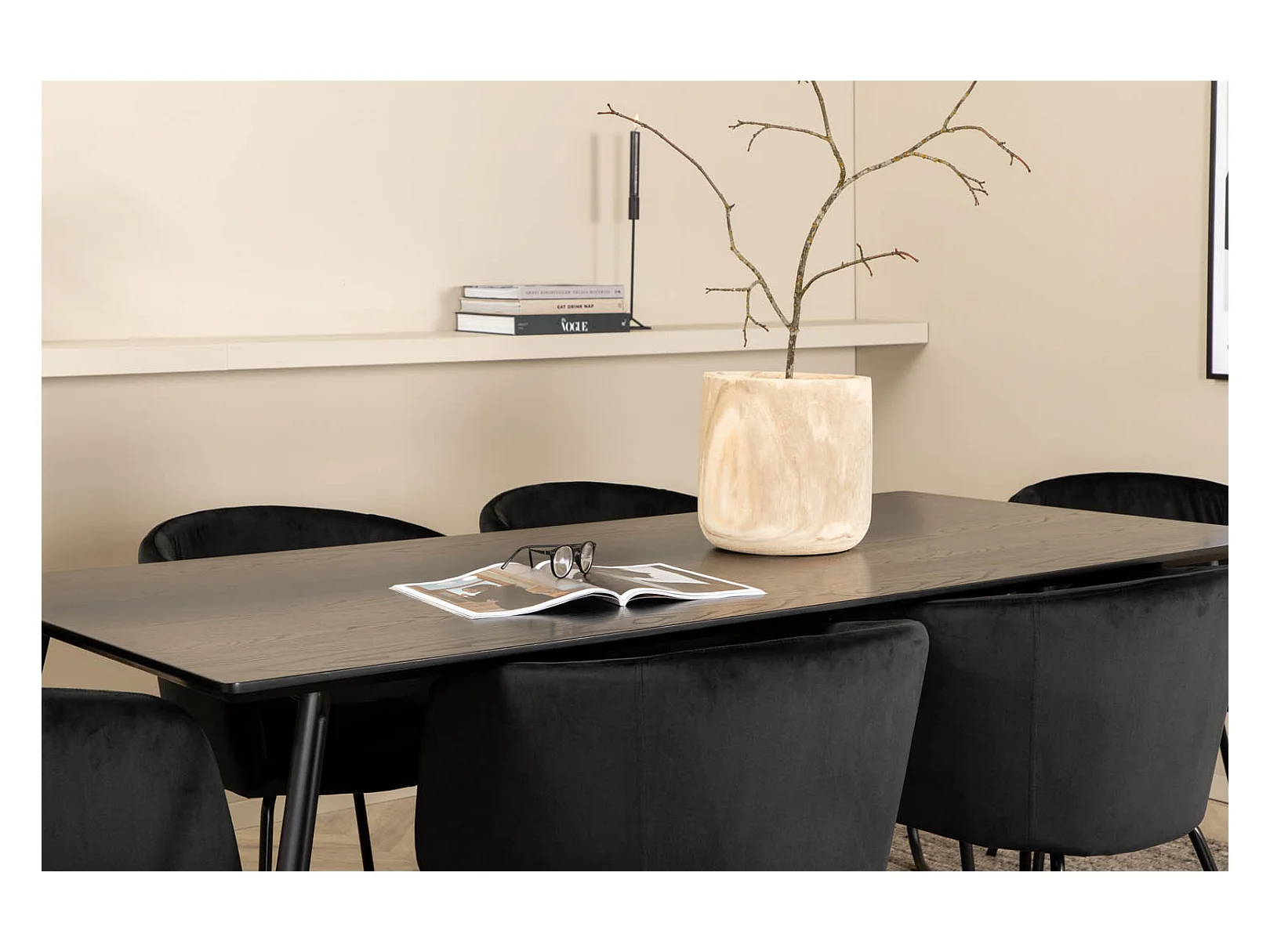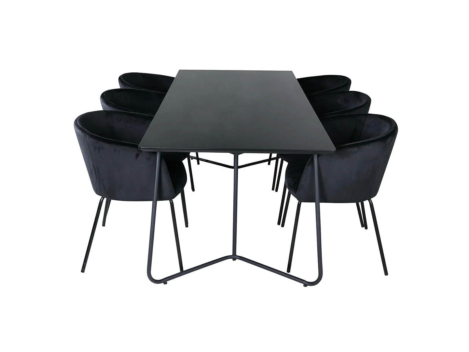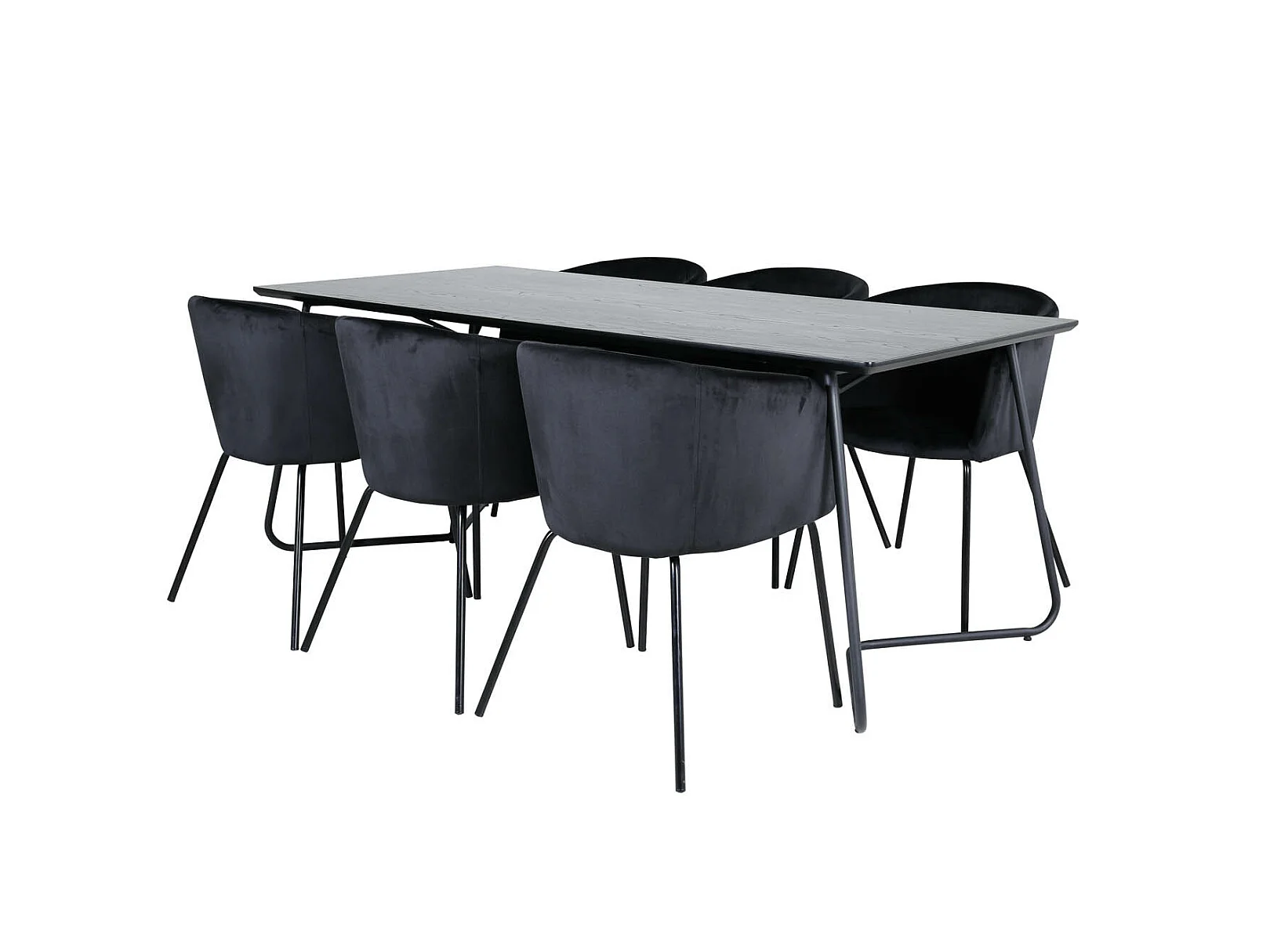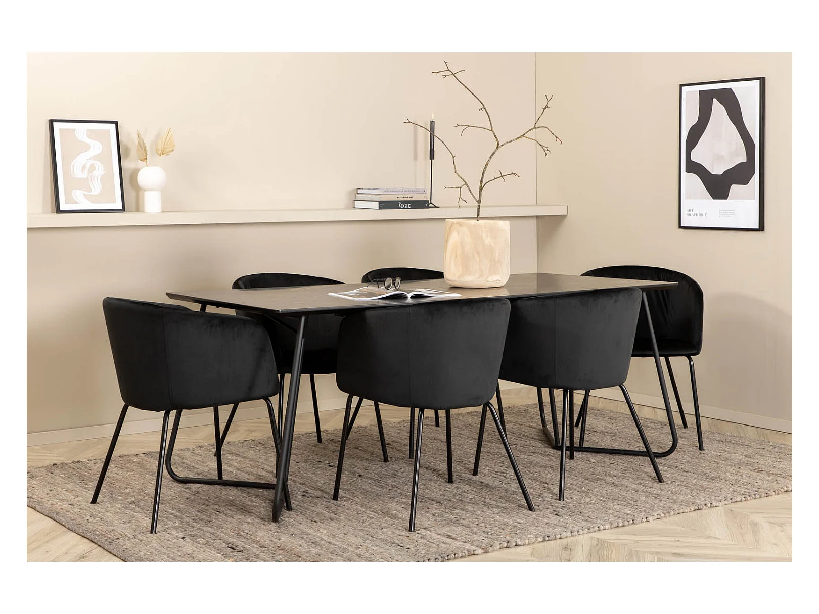 Dipp180x90BLBR ensemble table, table noir et 6 Velvet chaises Similicuir PU noir.