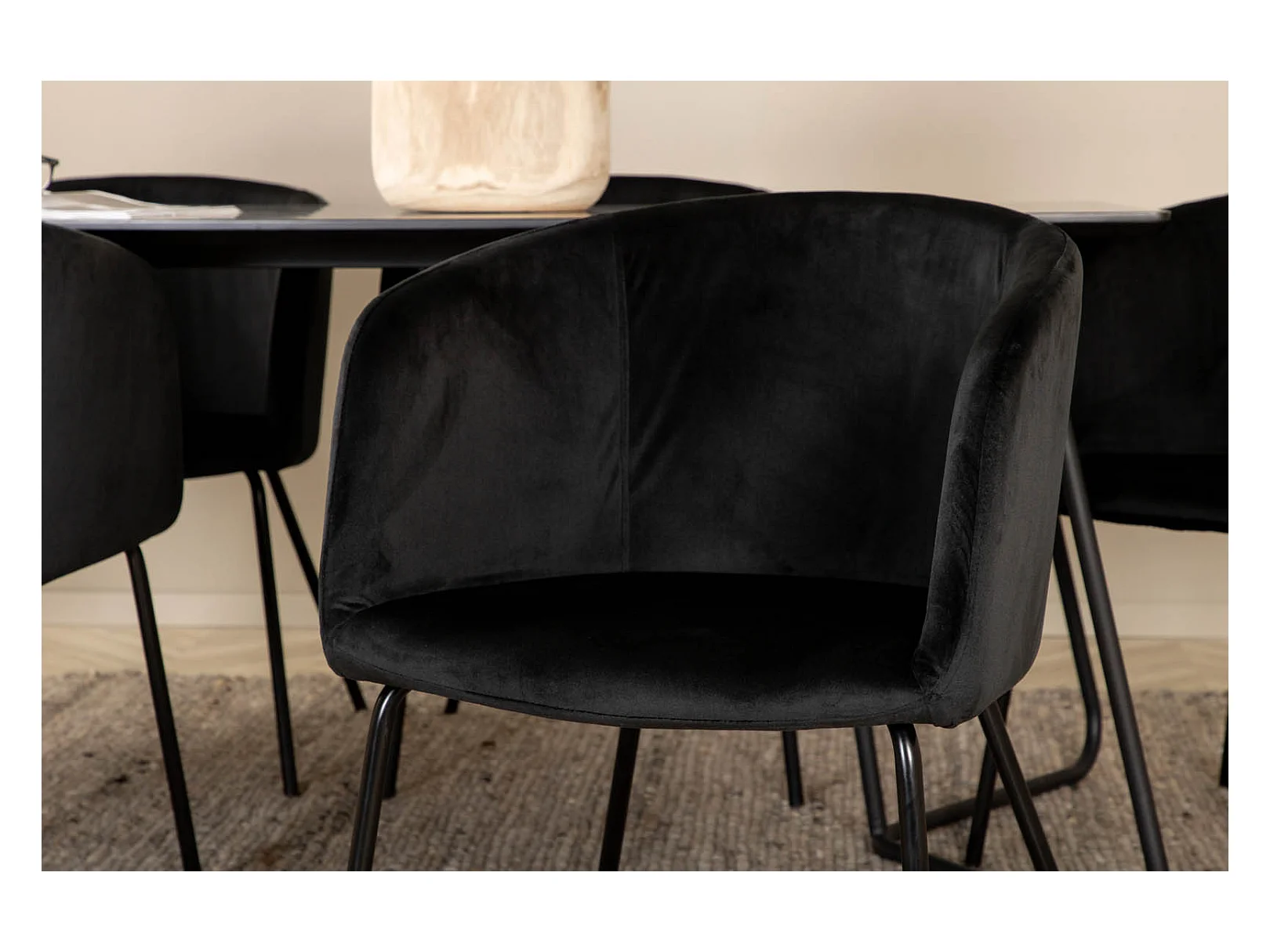 PippiBL ensemble table, table noir et 6 Berit chaises Velours noir.
