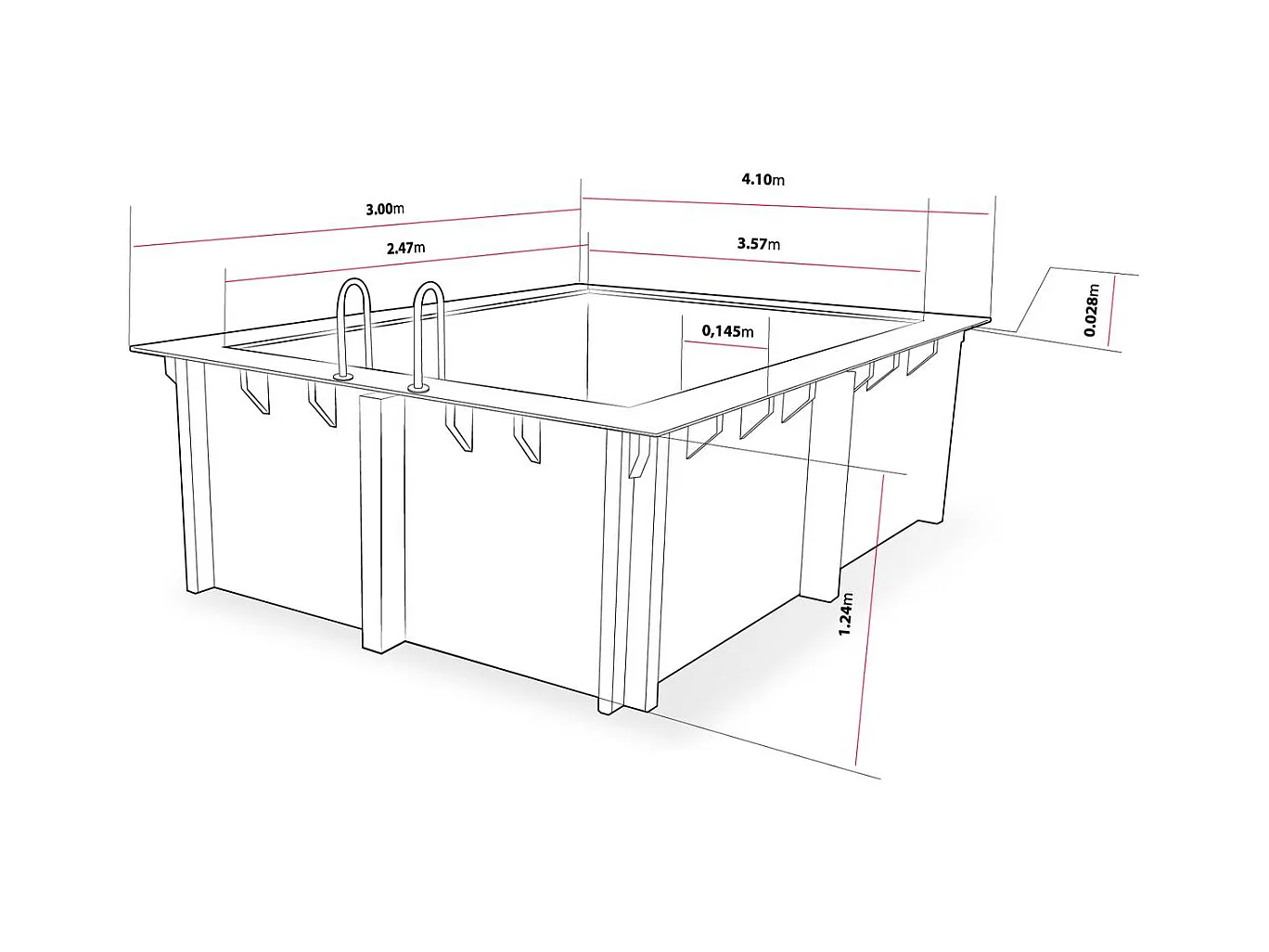Piscine bois rectangle " Caimans 140 " - 4.10 x 3.00 x 1.39 m