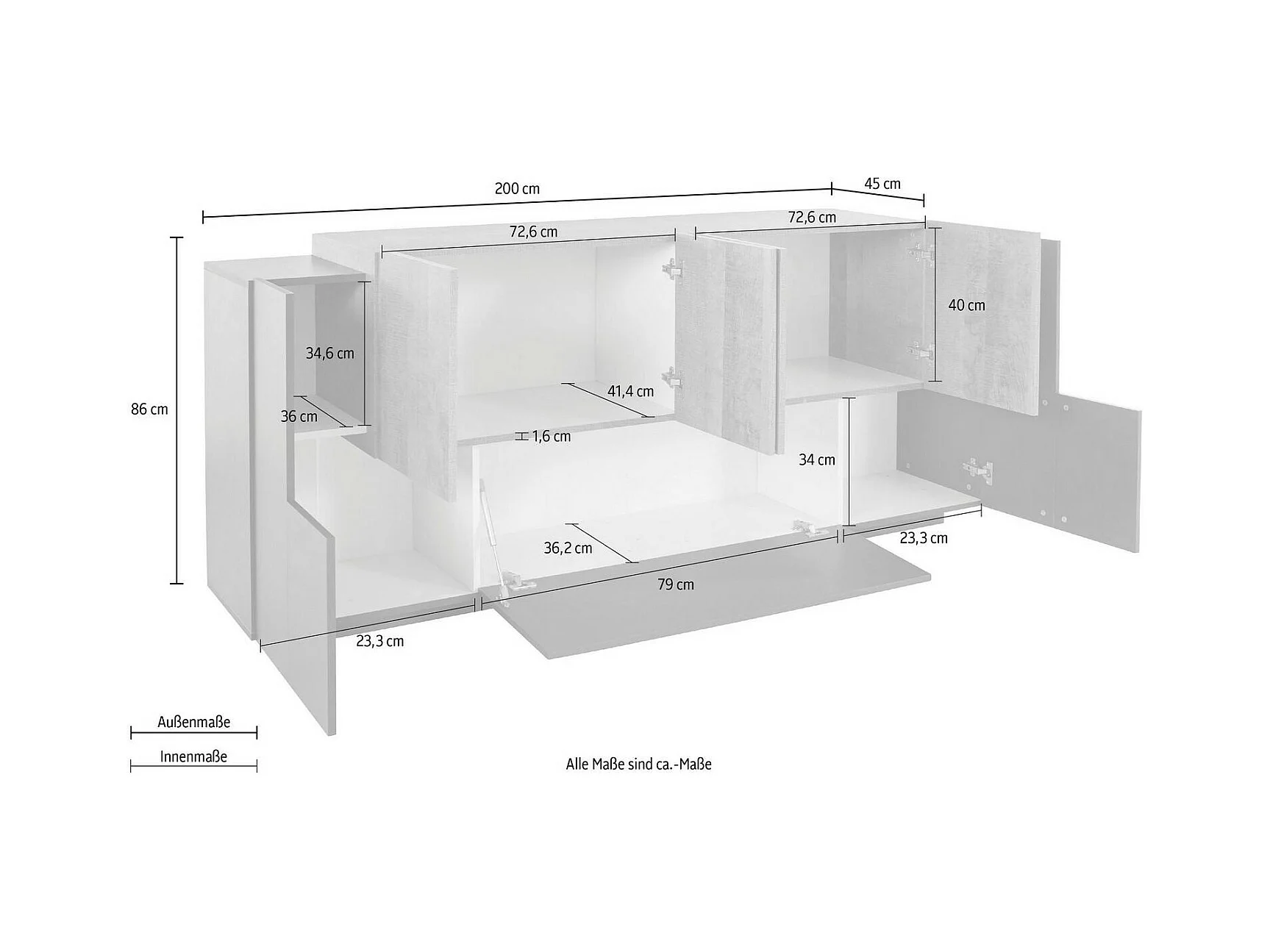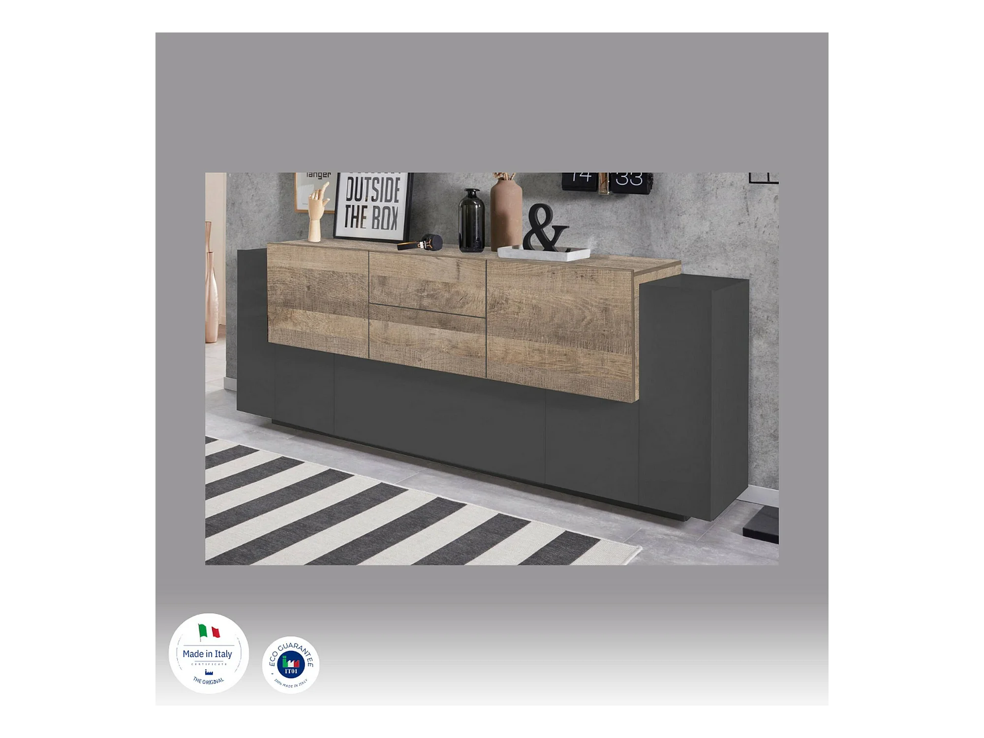 Buffet Dbaian, Buffet de cuisine avec 5 portes et 2 tiroirs, Buffet de salon, Buffet de cuisine, 100% Made in Italy, 220x45h86 cm, Anthracite et Érable