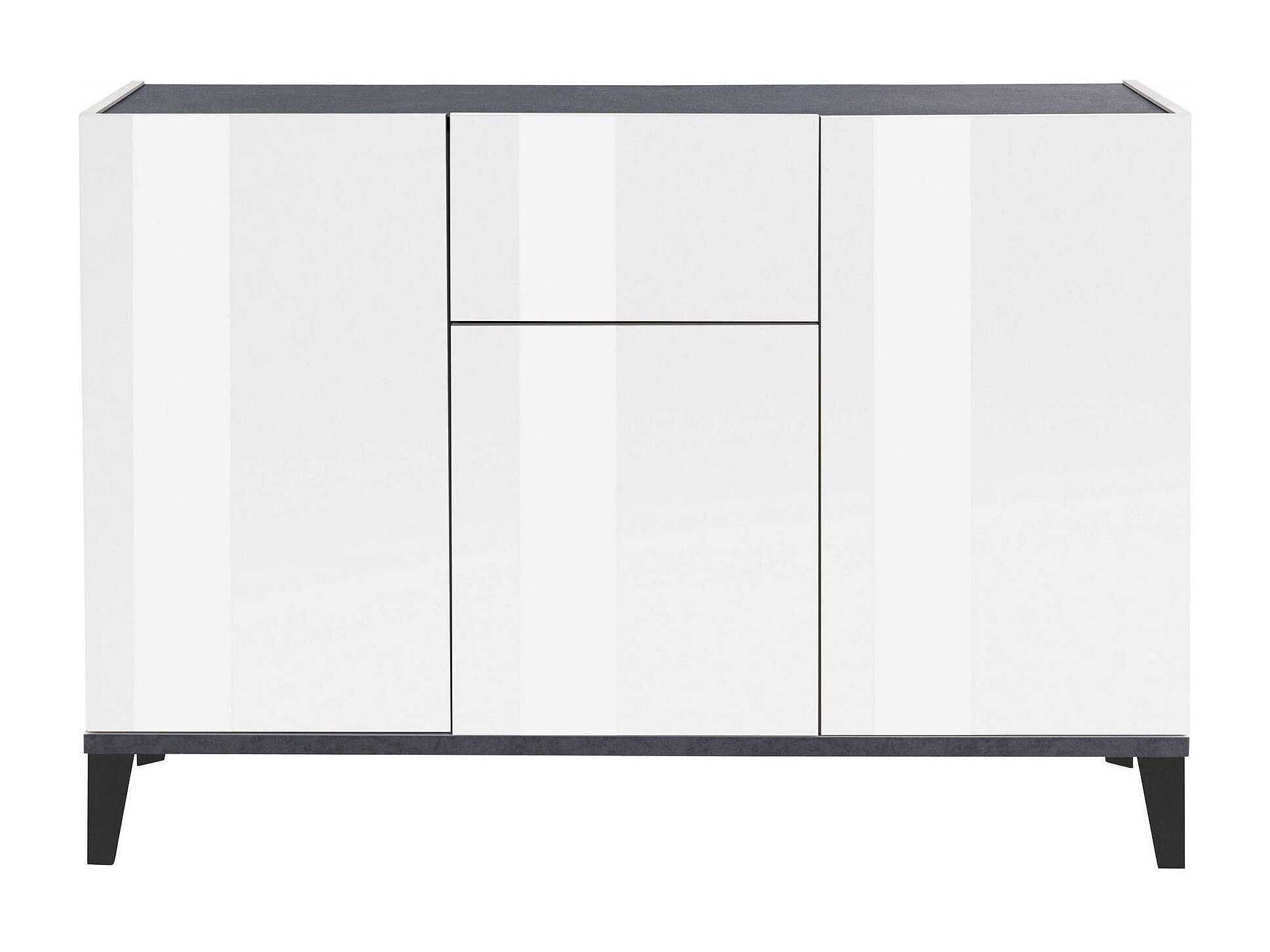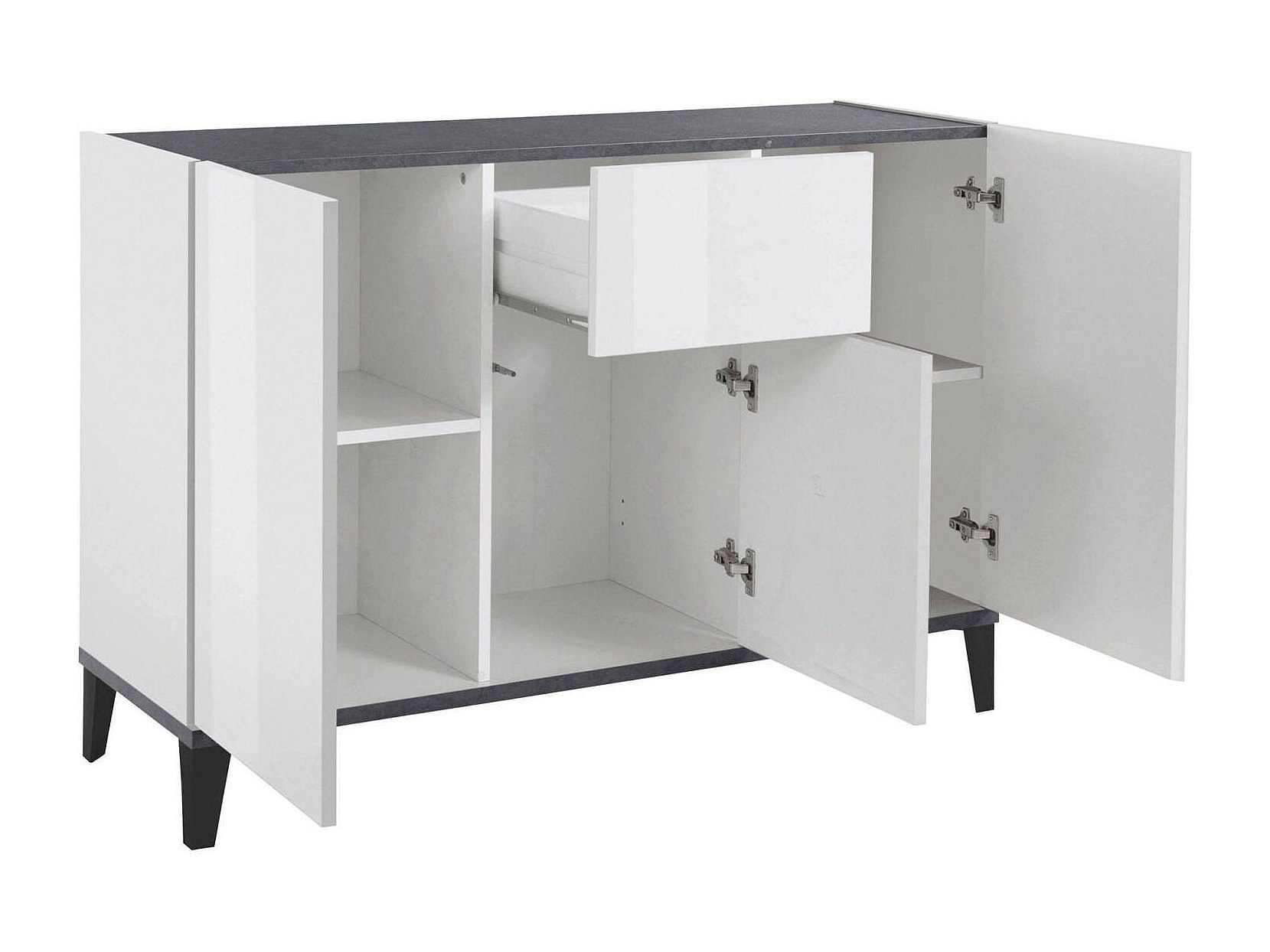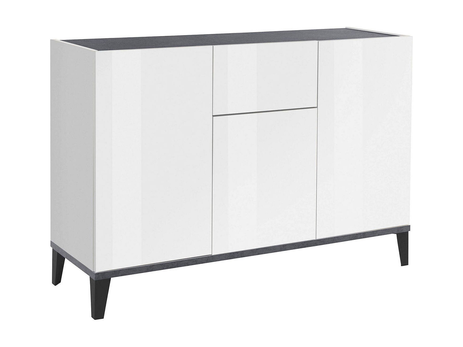 Buffet Ddybal, Buffet de cuisine avec 3 portes et 1 tiroir, Buffet de salon, Buffet de cuisine, 100% Made in Italy, 120x40h82 cm, Blanc brillant et ardoise