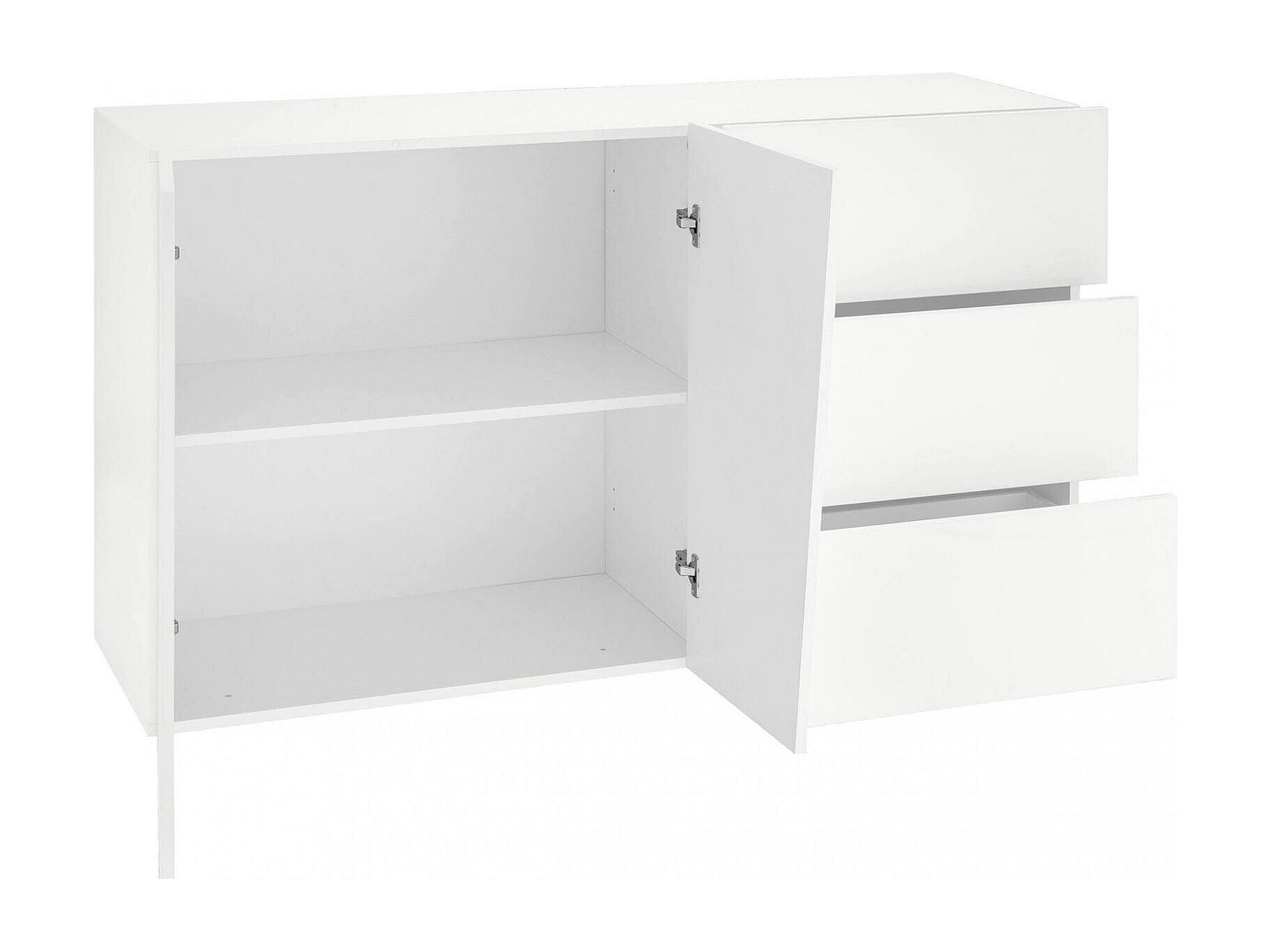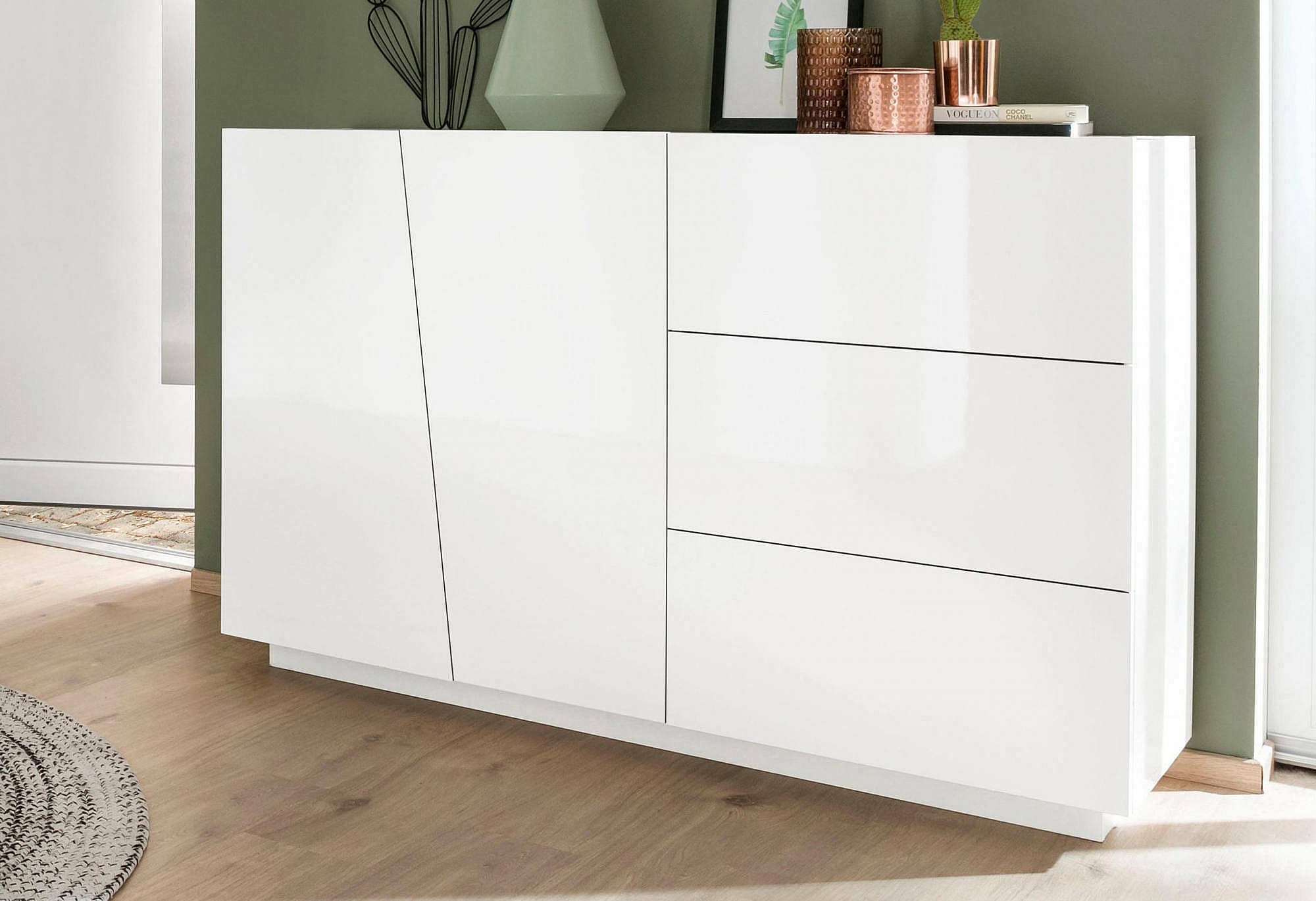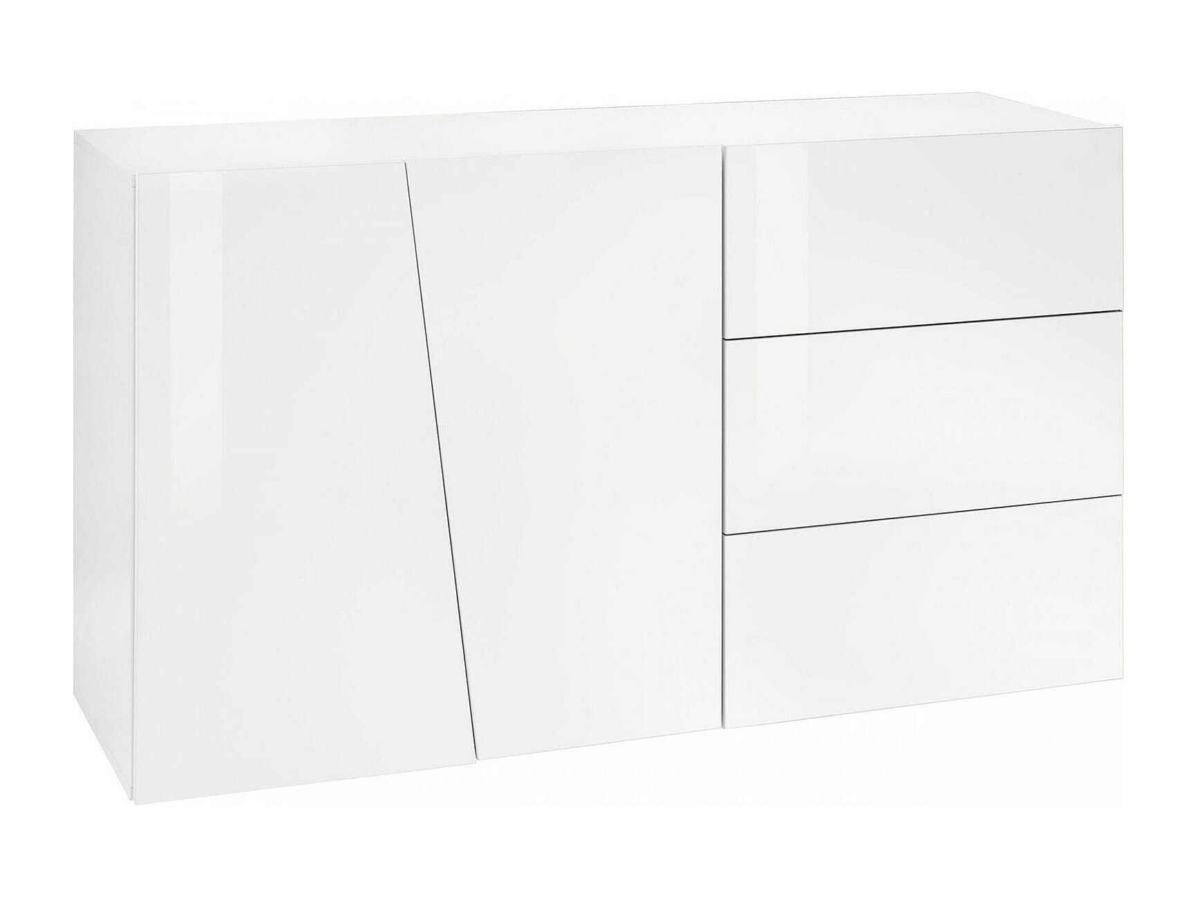 Buffet Dficagn, Buffet de cuisine avec 2 portes et 3 tiroirs, Buffet de salon, 100% Made in Italy, 141x43h86 cm, Blanc brillant