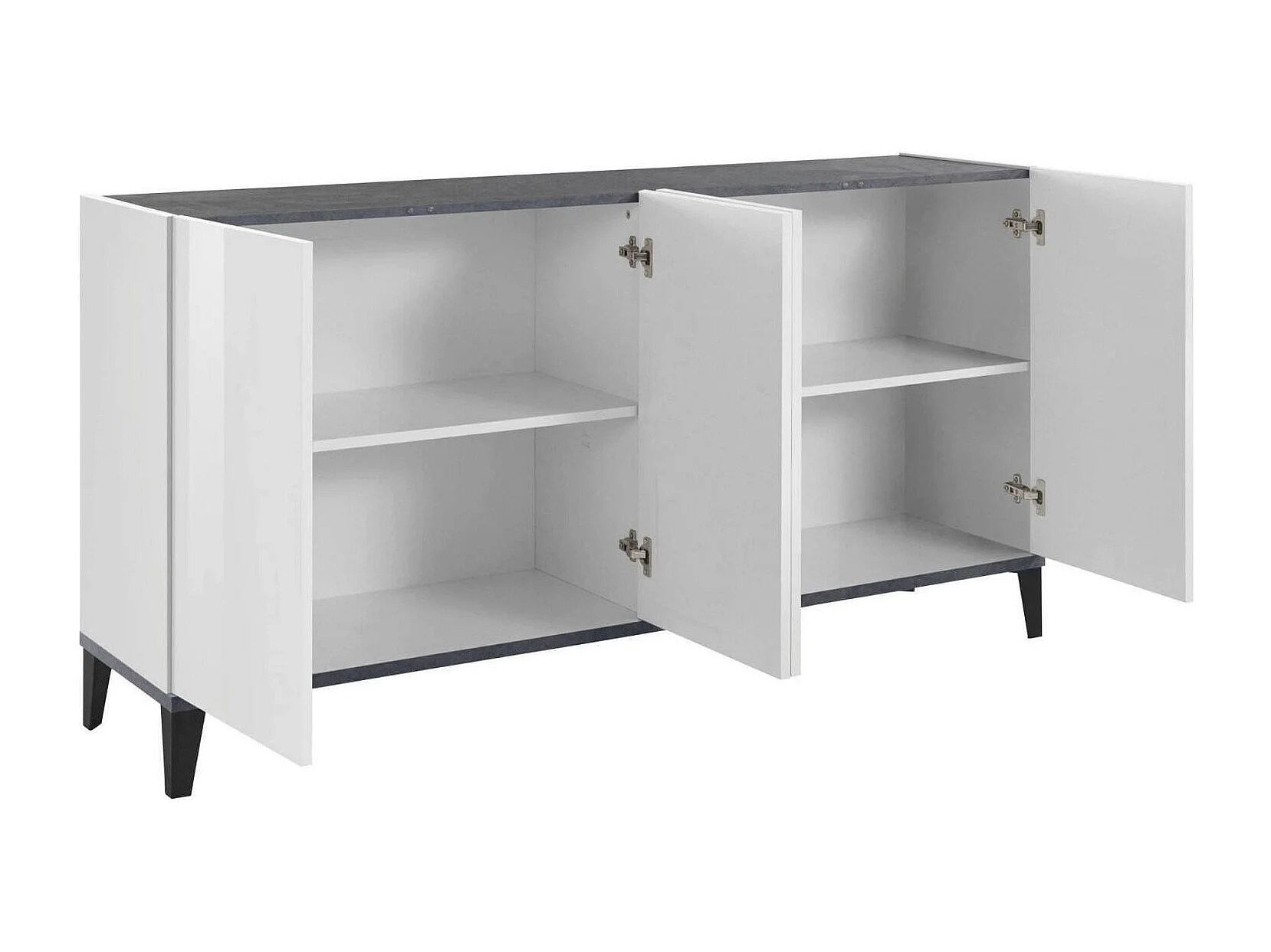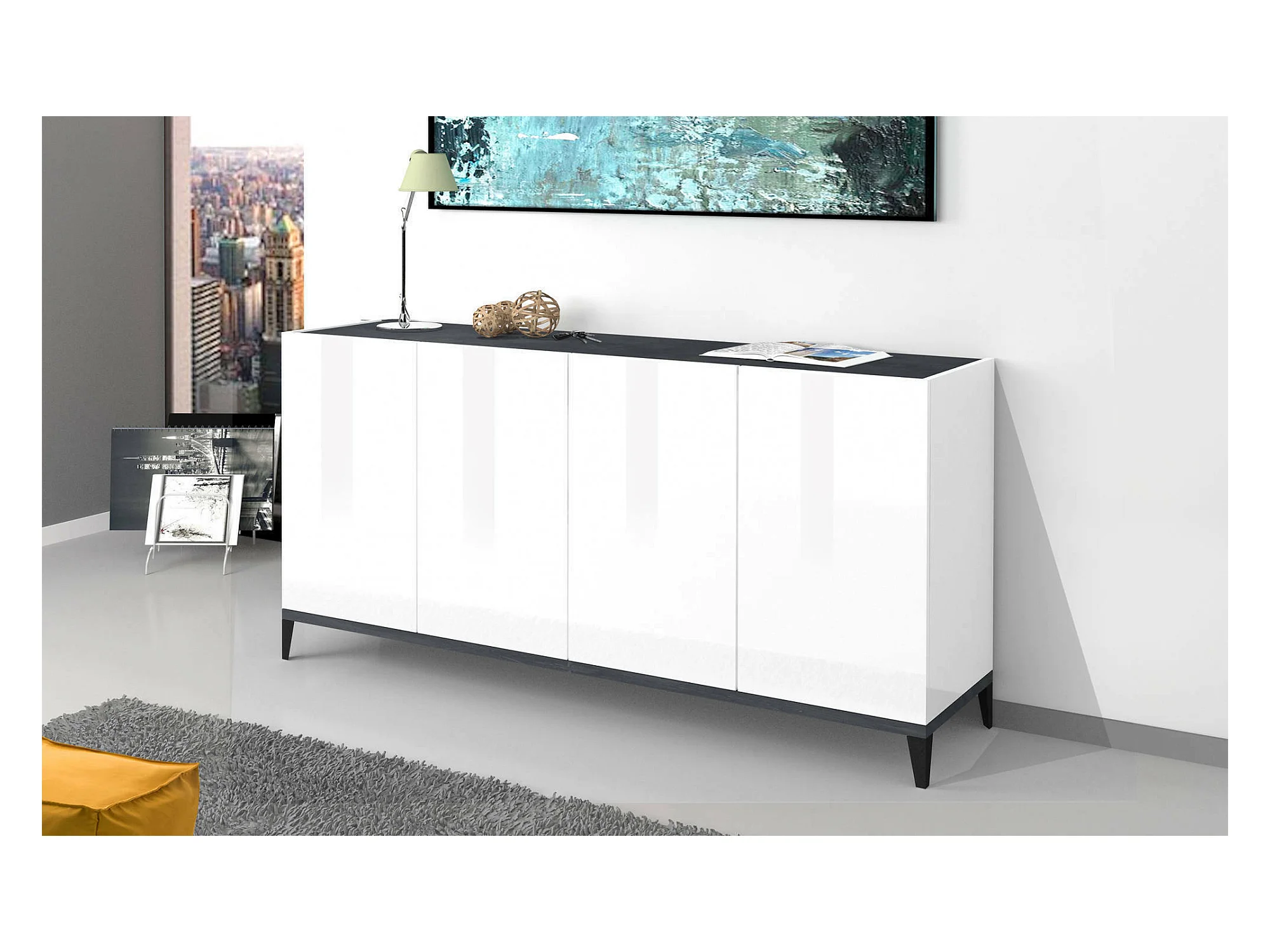 Buffet Dgarzo, Buffet de cuisine 4 portes, Buffet de salon, 100% Made in Italy, 160x40h82 cm, Blanc brillant et ardoise