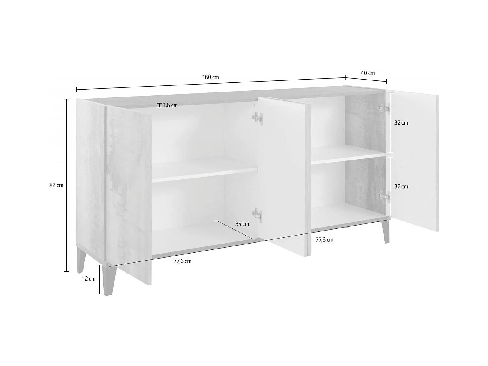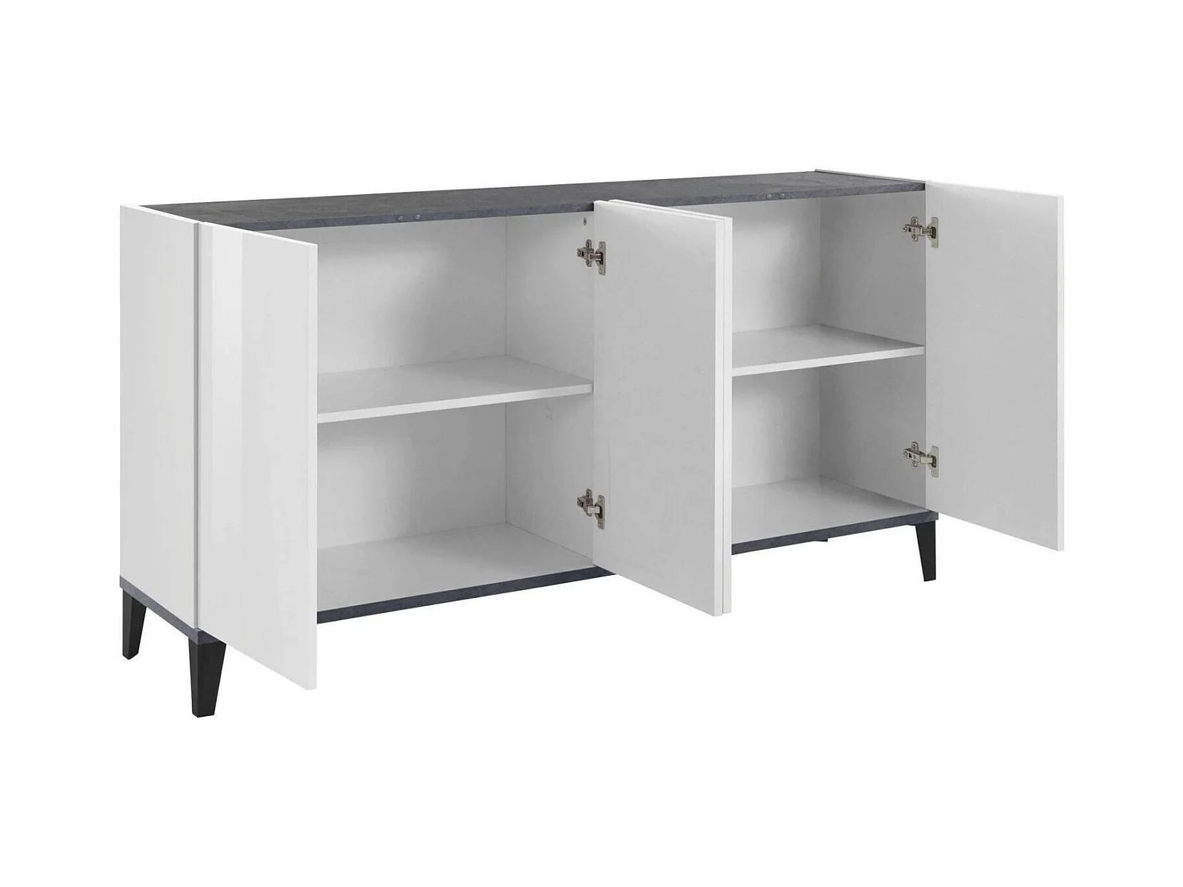 Buffet Dismajl, Buffet de cuisine avec 3 portes et 3 tiroirs, Buffet de salon, 100% Made in Italy, 160x45h86 cm, Blanc brillant et ardoise
