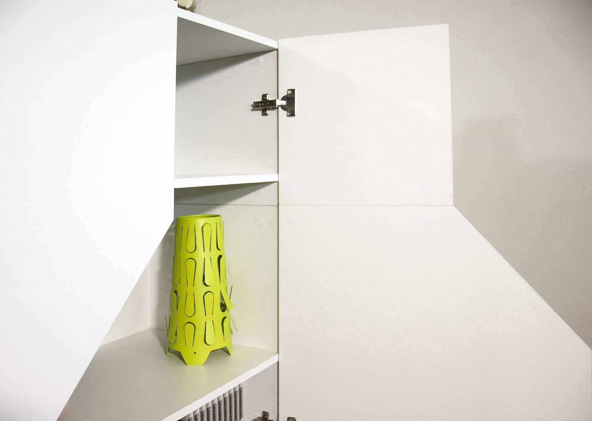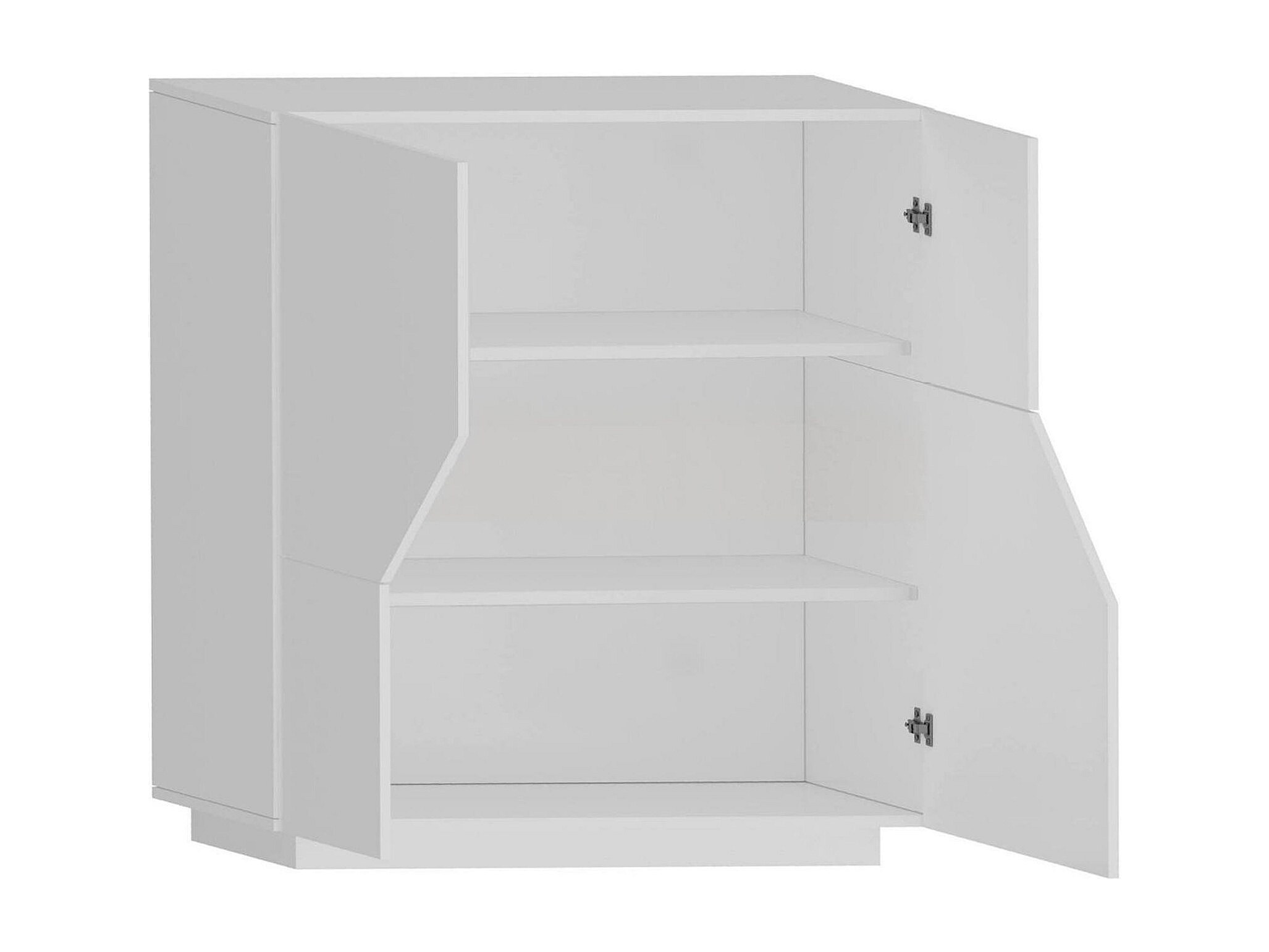Buffet Dceesa, Buffet de cuisine avec 2 portes géométriques, Buffet de salon, Buffet de cuisine, 100% Made in Italy, 79x43h86 cm, Blanc brillant