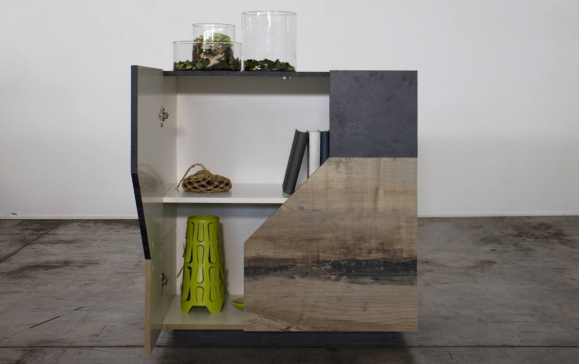 Buffet Dkoud, Buffet de cuisine 2 portes, Buffet de salon, 100% Made in Italy, 100x43h106 cm, Ardoise et Érable