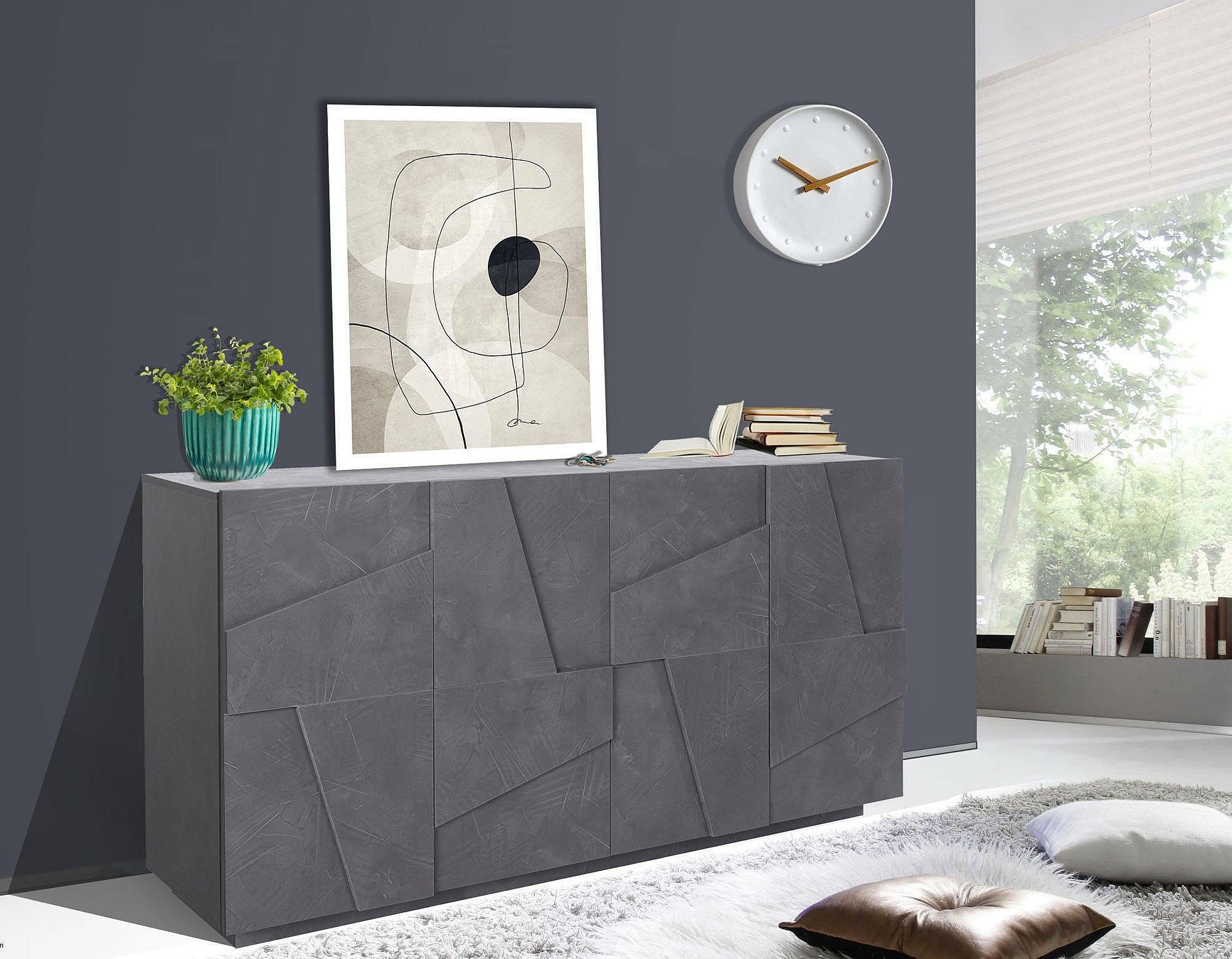 Buffet Dlanzar, Buffet de cuisine 4 portes, Buffet de salon, 100% Made in Italy, 162x44h86 cm, Ardoise
