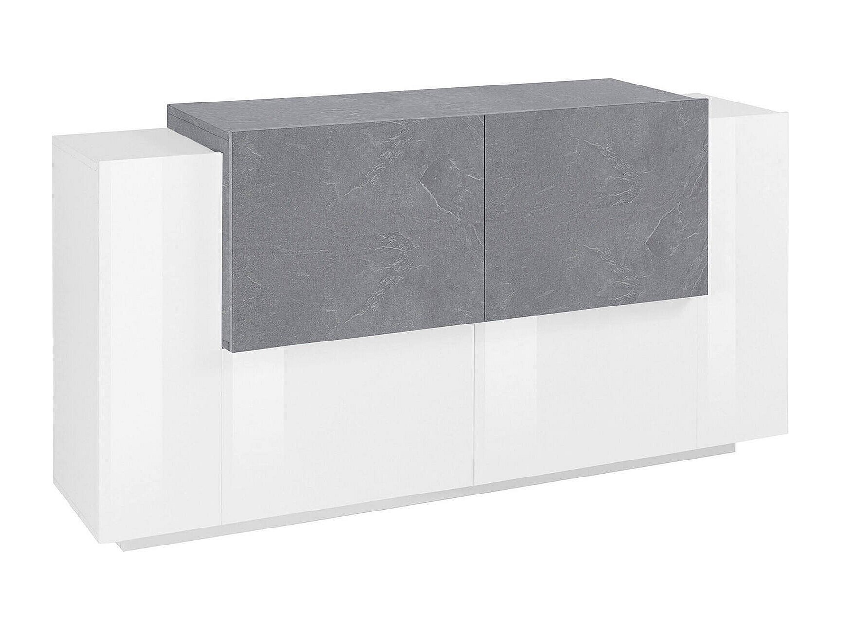 Buffet Dlenz, Buffet de cuisine avec 4 portes, Buffet de salon, 100% Made in Italy, 160x45h86 cm, Blanc brillant et ciment