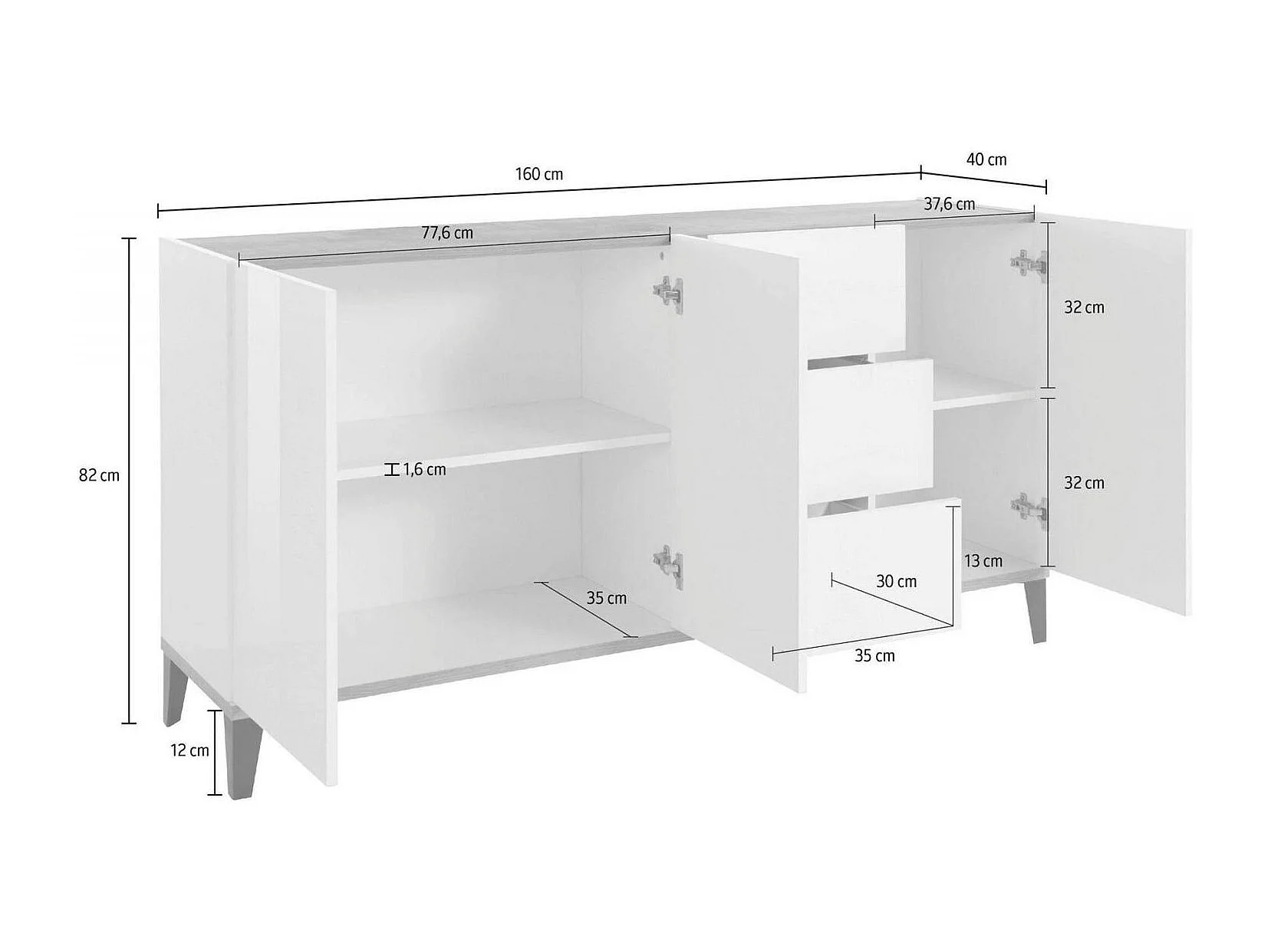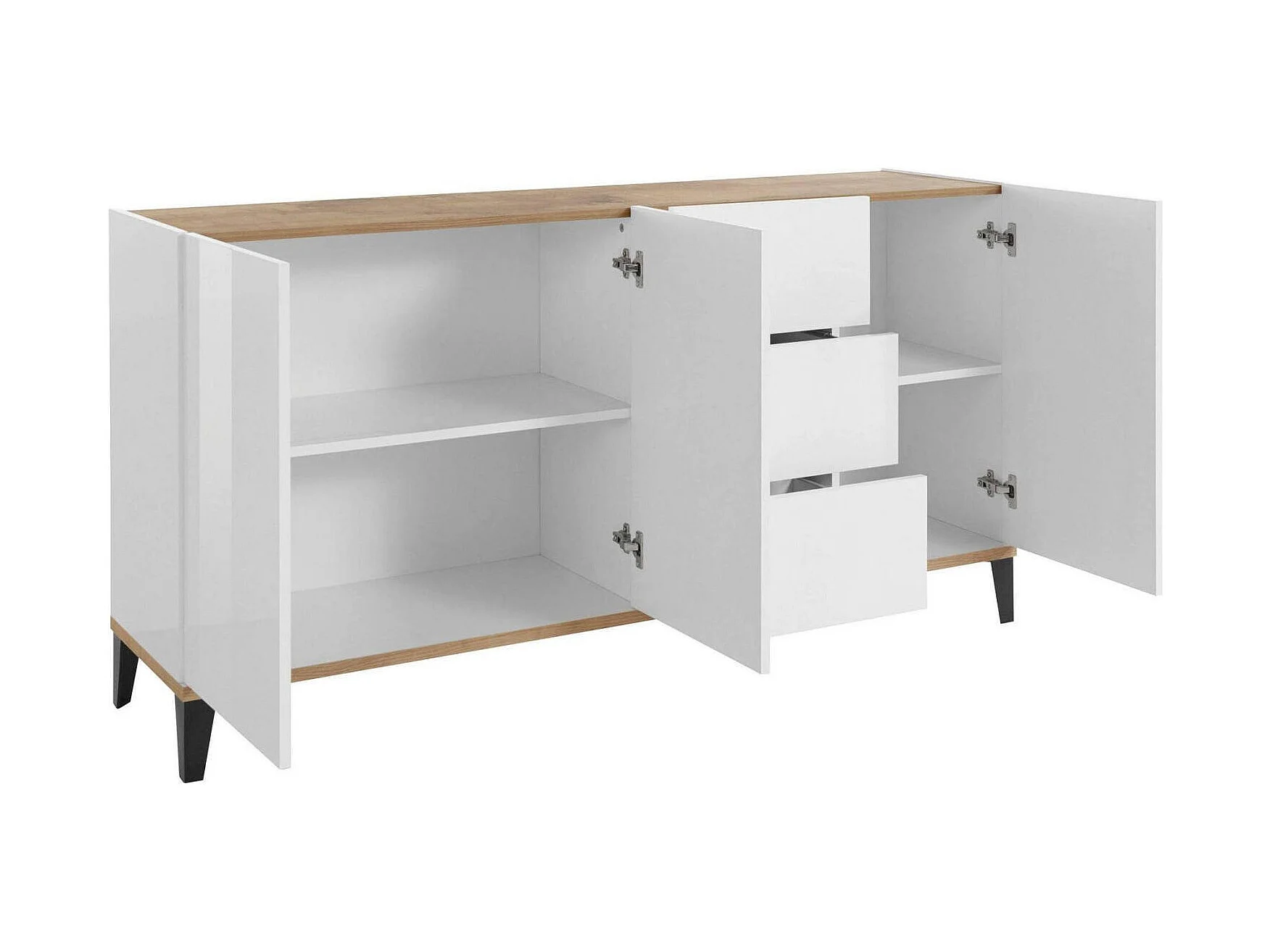Buffet Dlong, buffet de cuisine 3 portes et 3 tiroirs, Buffet de salon, 100% Made in Italy, 160x40h82 cm, Blanc brillant et érable