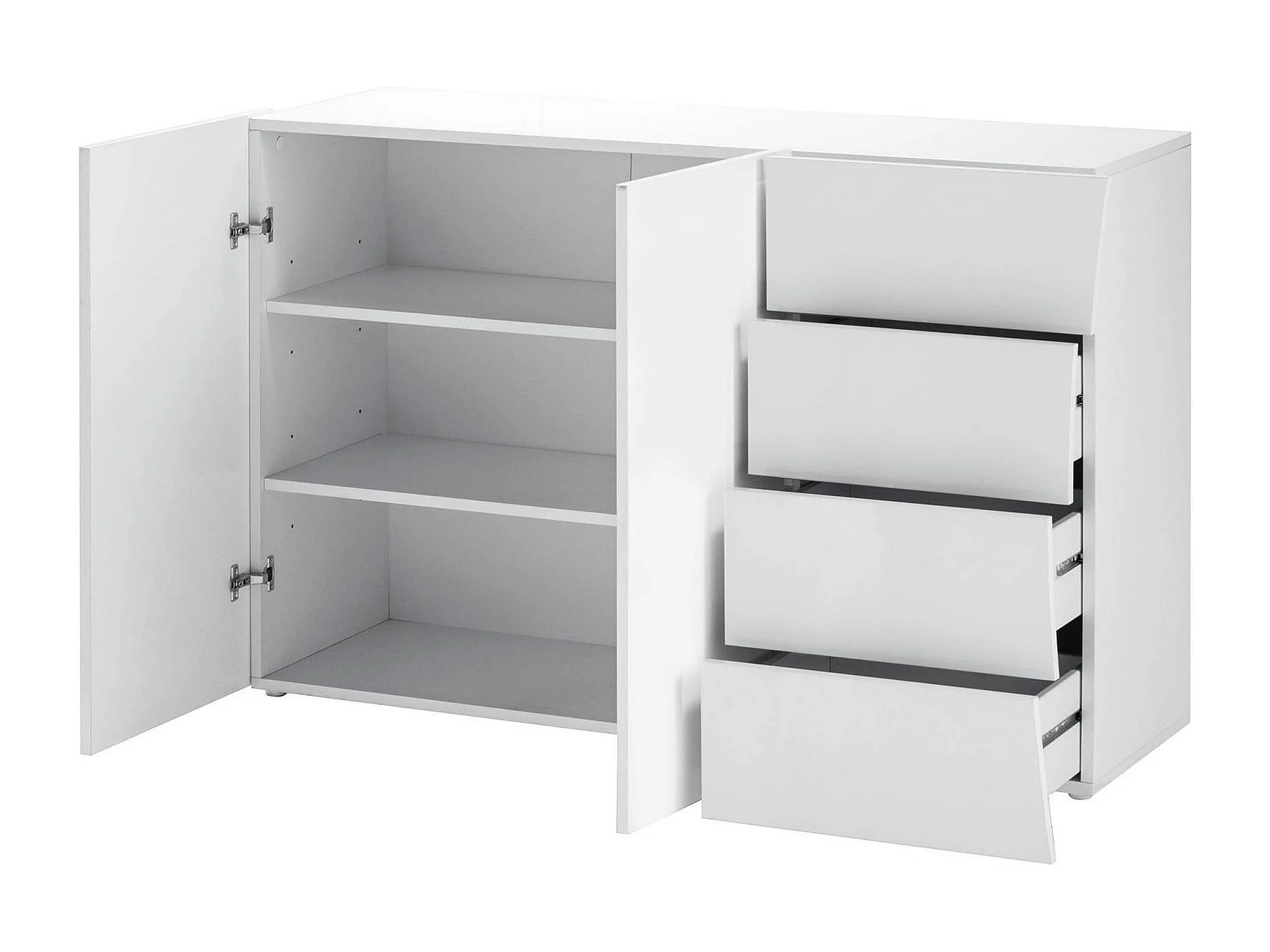 Buffet Dmarasc, Buffet de cuisine avec 2 portes et 4 tiroirs, Buffet de salon, 100% Made in Italy, 124x40h81 cm, Blanc brillant