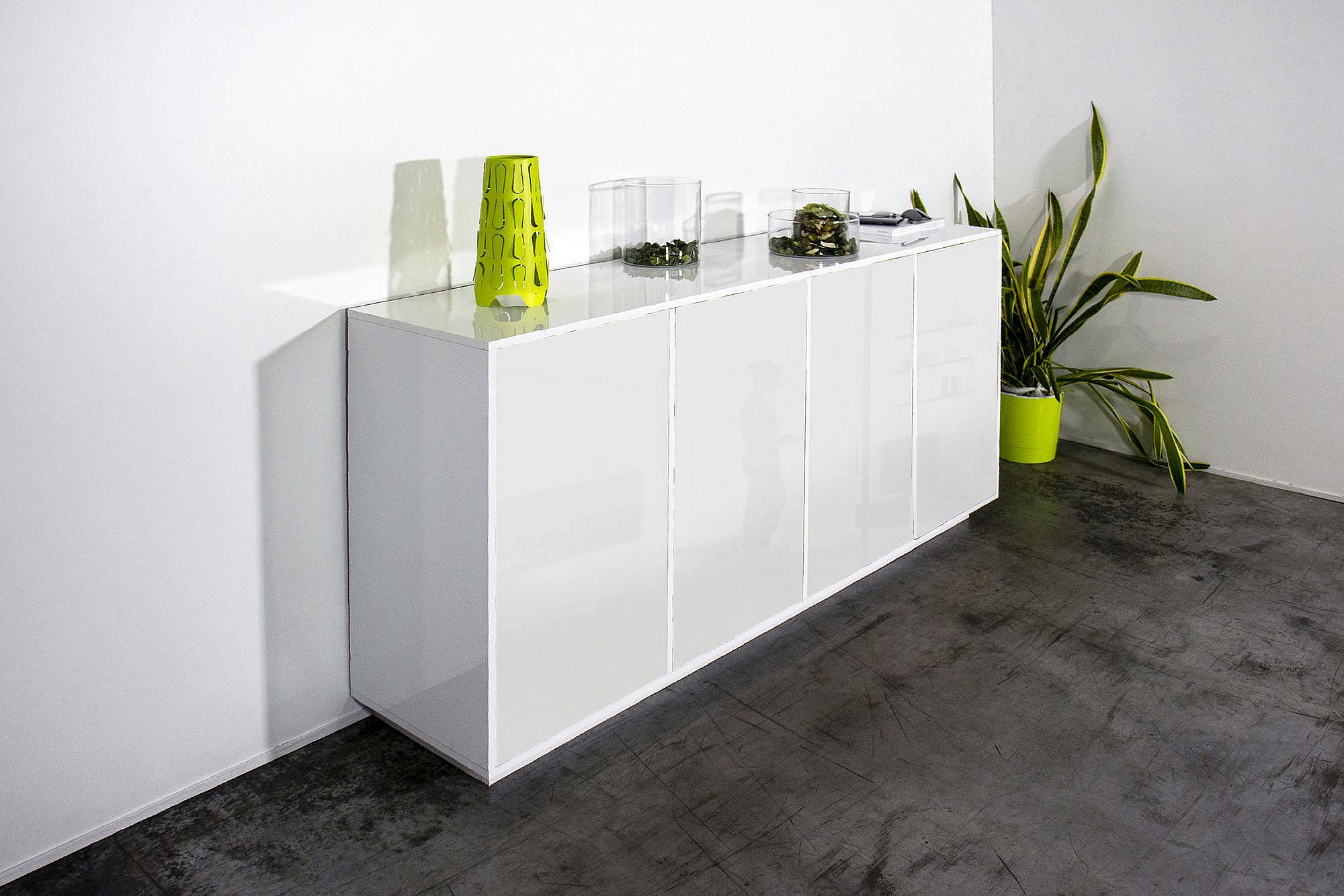 Buffet Dnande, Buffet de cuisine 4 portes, Buffet de salon, 100% Made in Italy, 180x41h86 cm, Blanc brillant