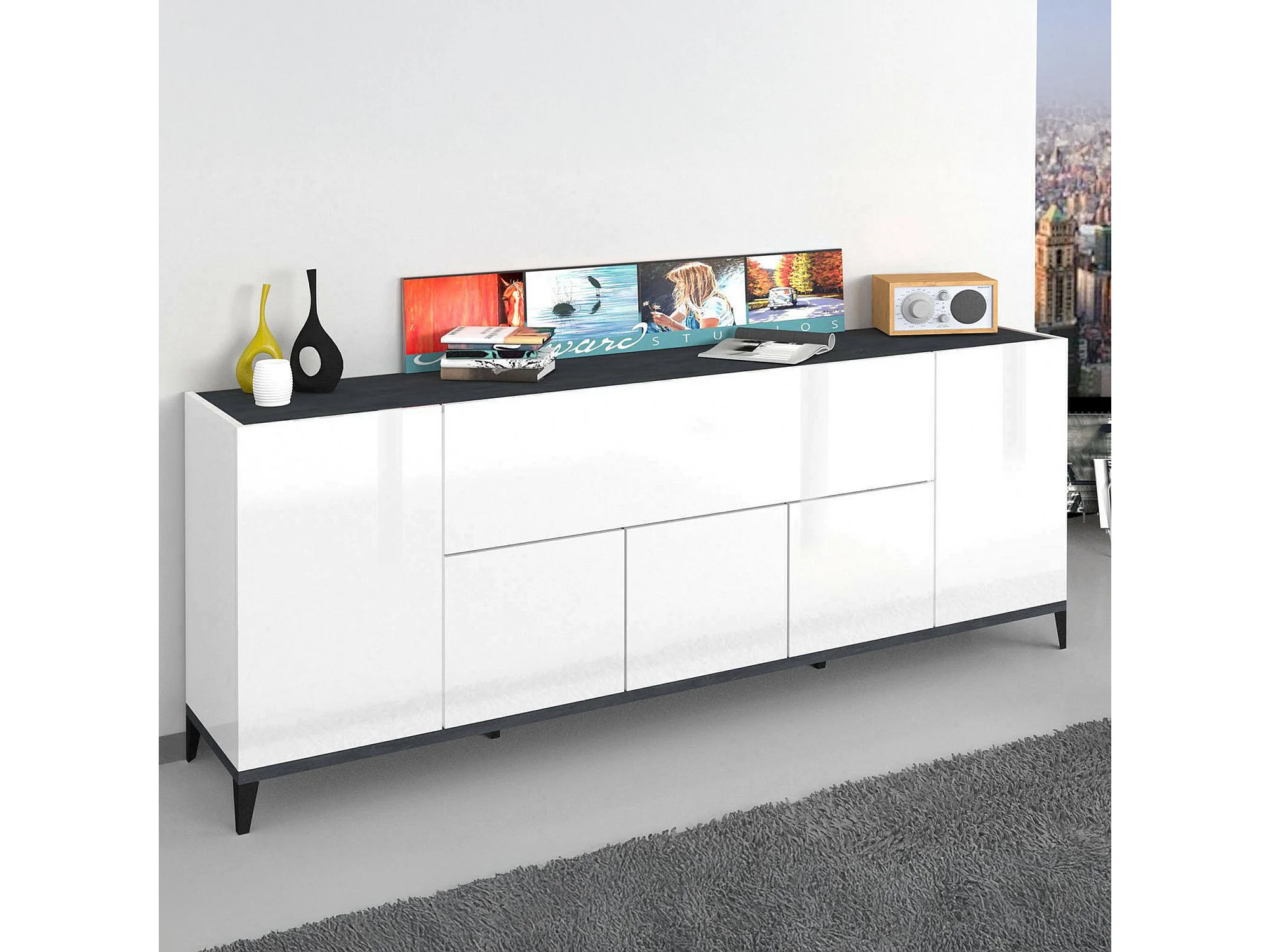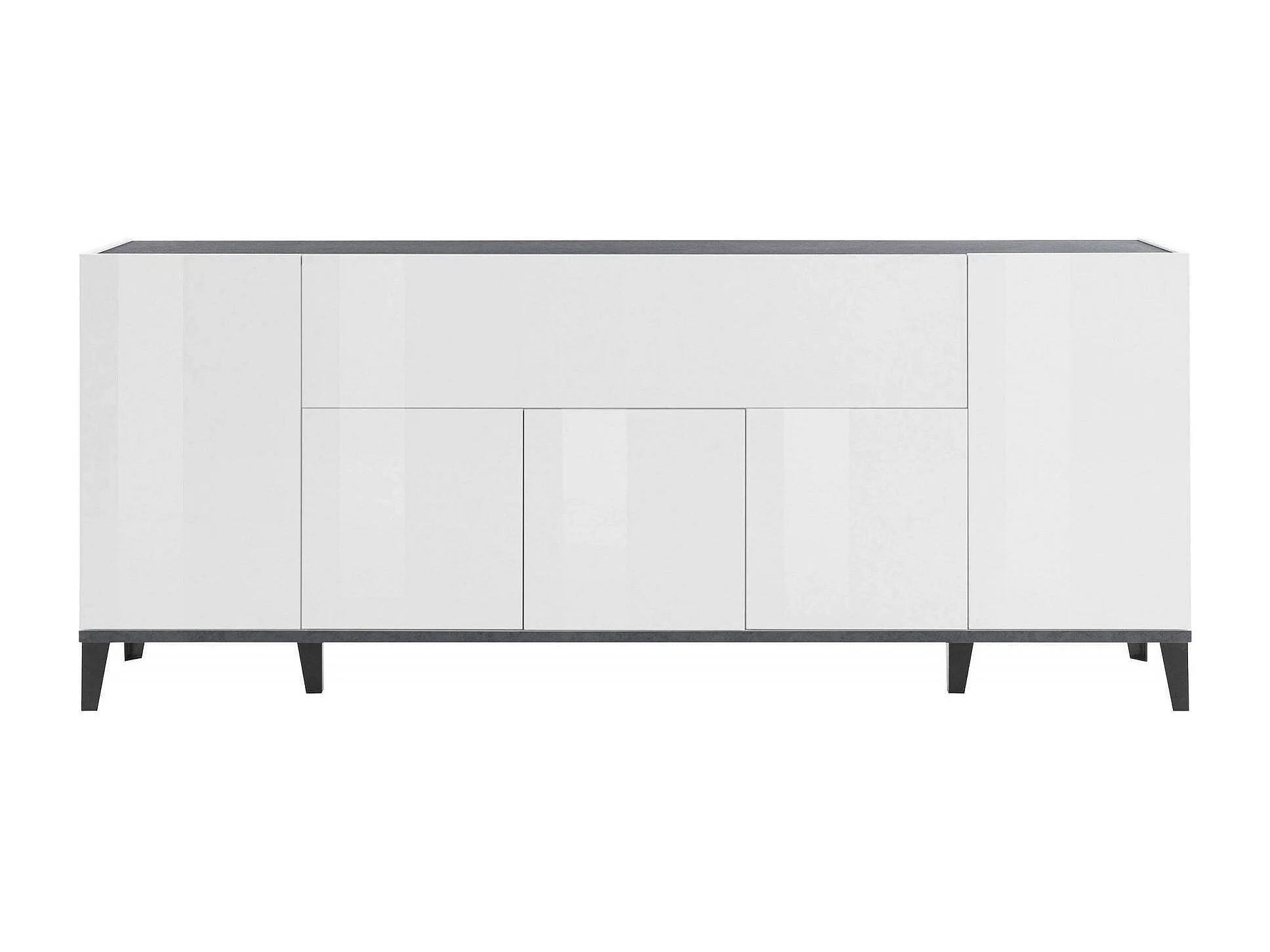 Buffet Dnatal, Buffet de cuisine 6 portes, Buffet de salon, 100% Made in Italy, 200x40h82 cm, Blanc brillant et ardoise