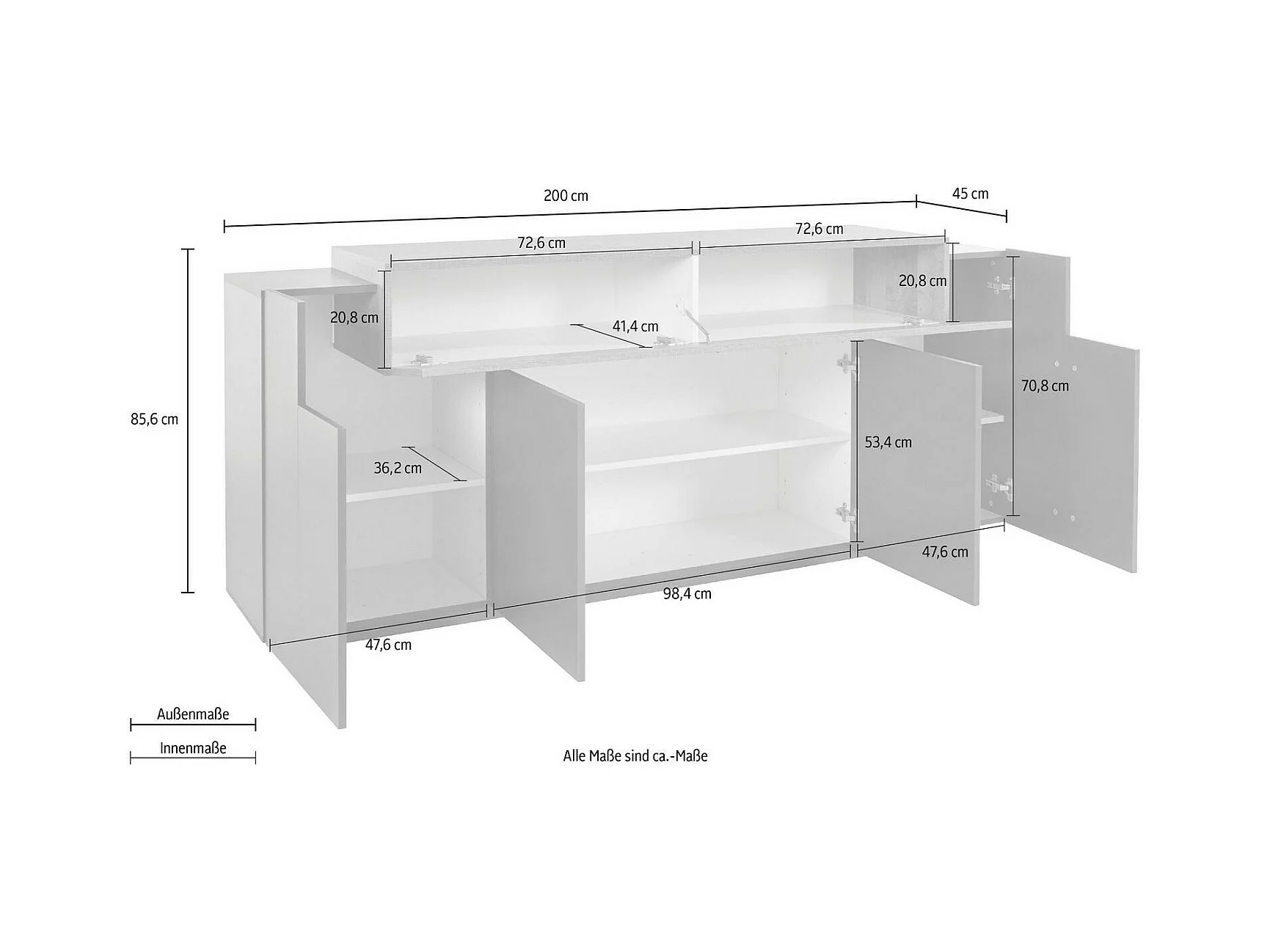 Buffet Acceglio, Buffet du salon, Commode de salon, Garde-manger de cuisine, 267x40 h222 cm, Blanc et chêne