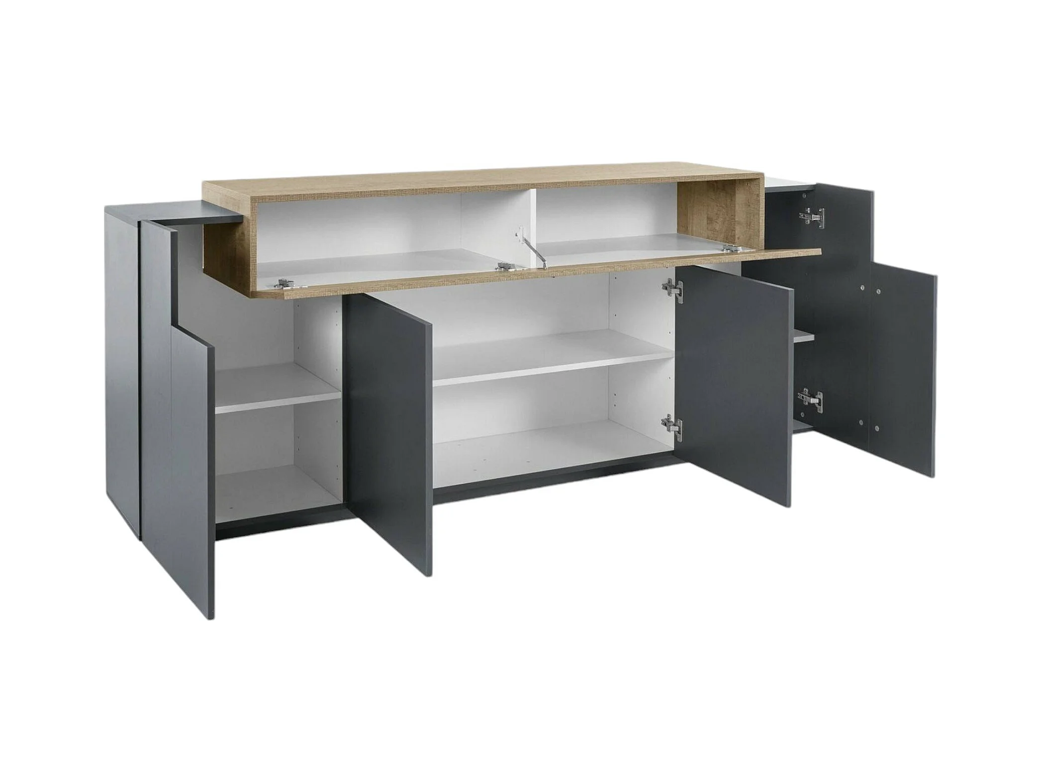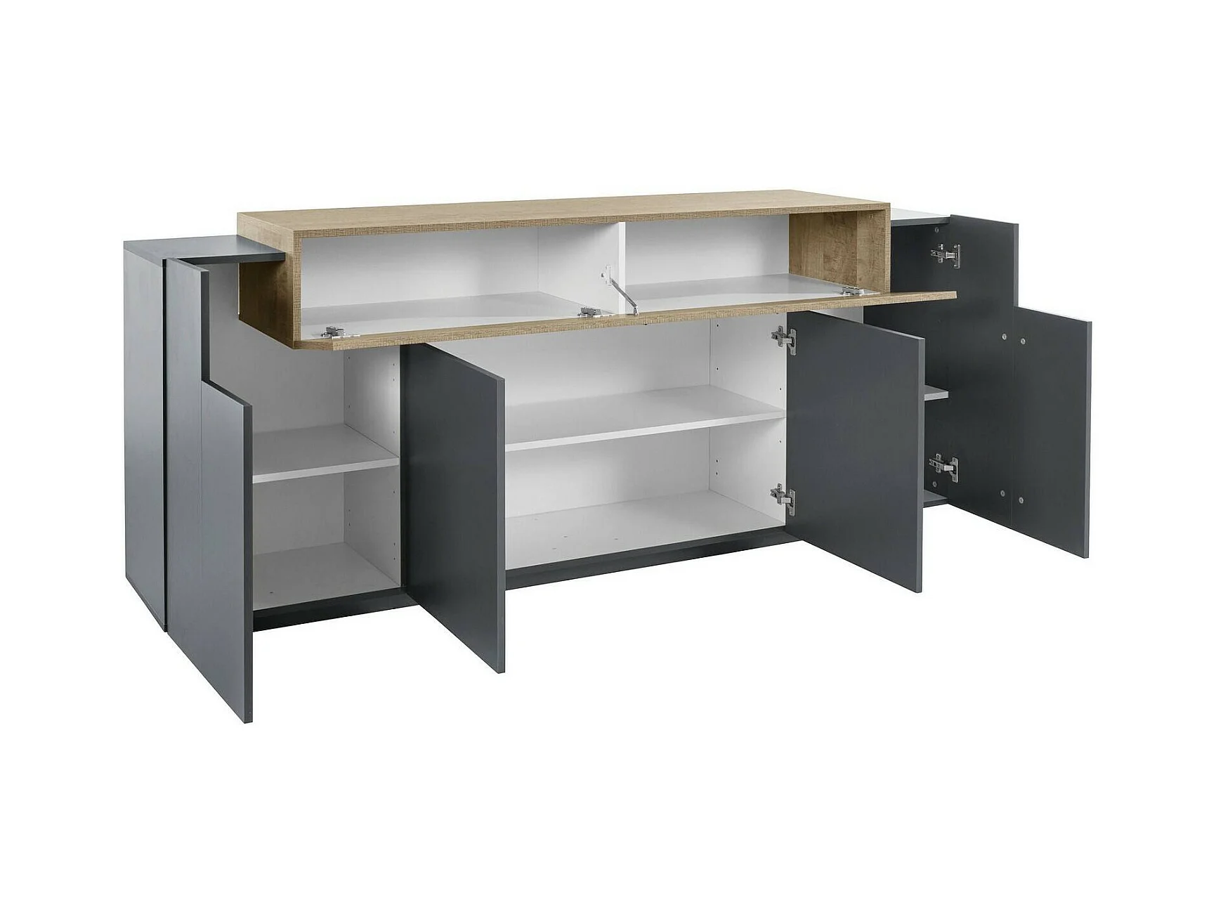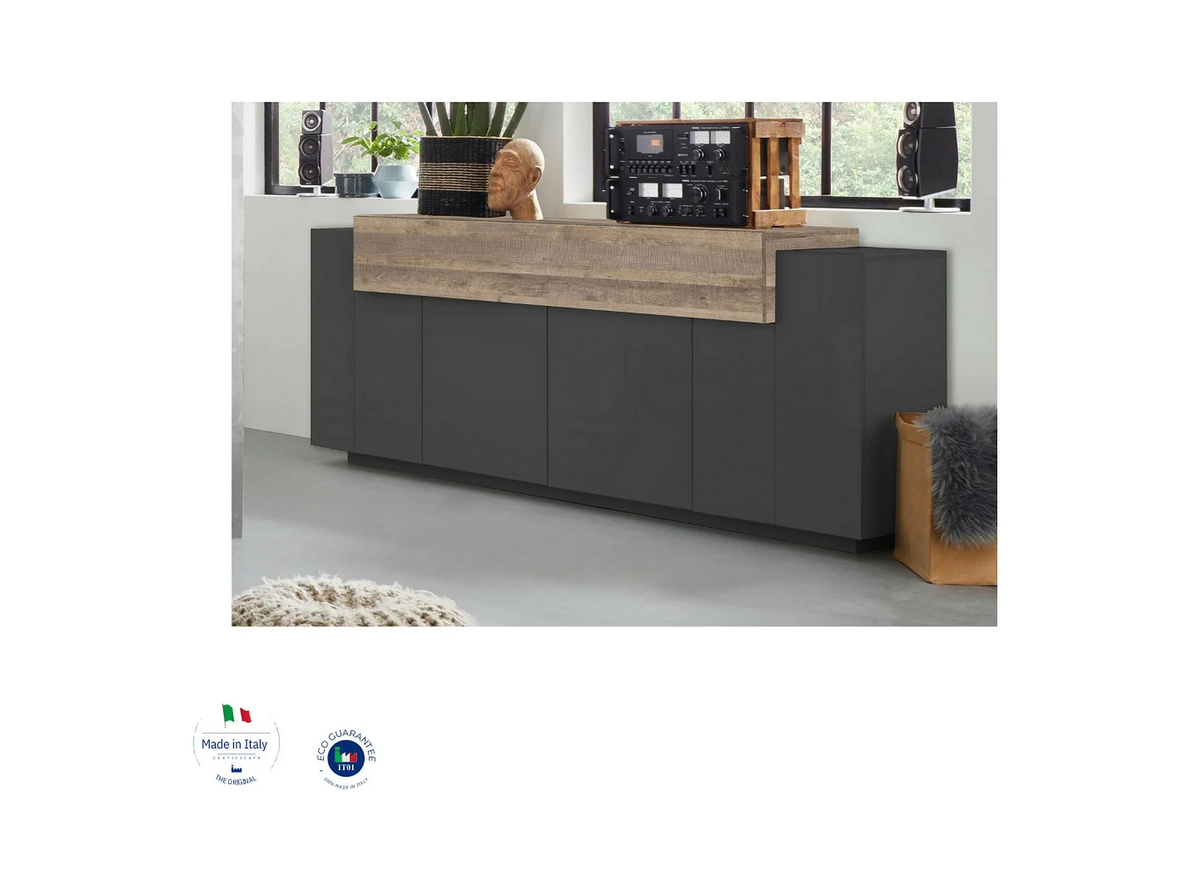 Buffet Loris, Buffet de cuisine 4 portes, Buffet de salon, 100% Made in Italy, 220x45h86 cm, Anthracite et Érable