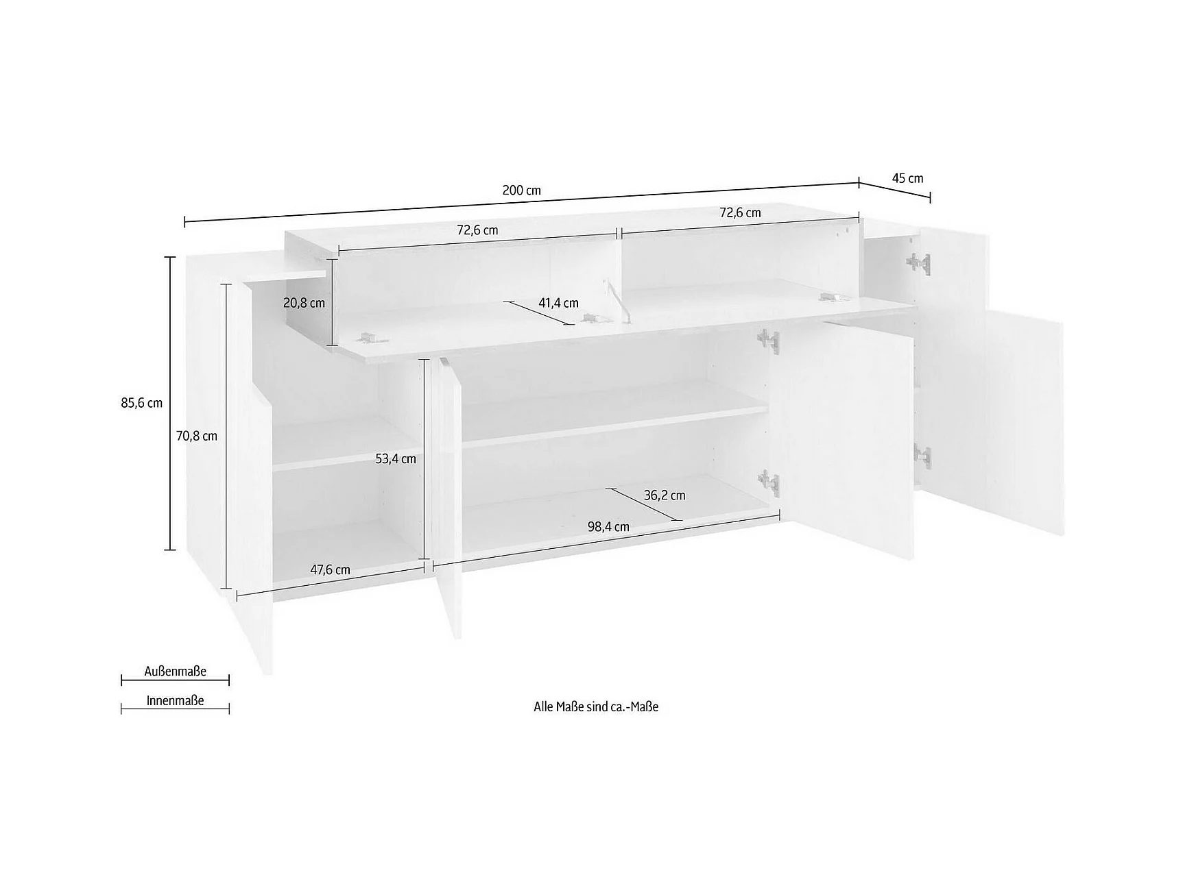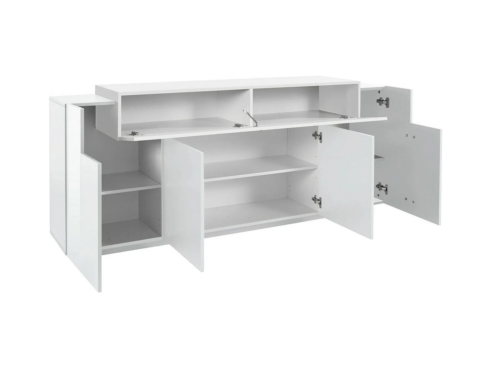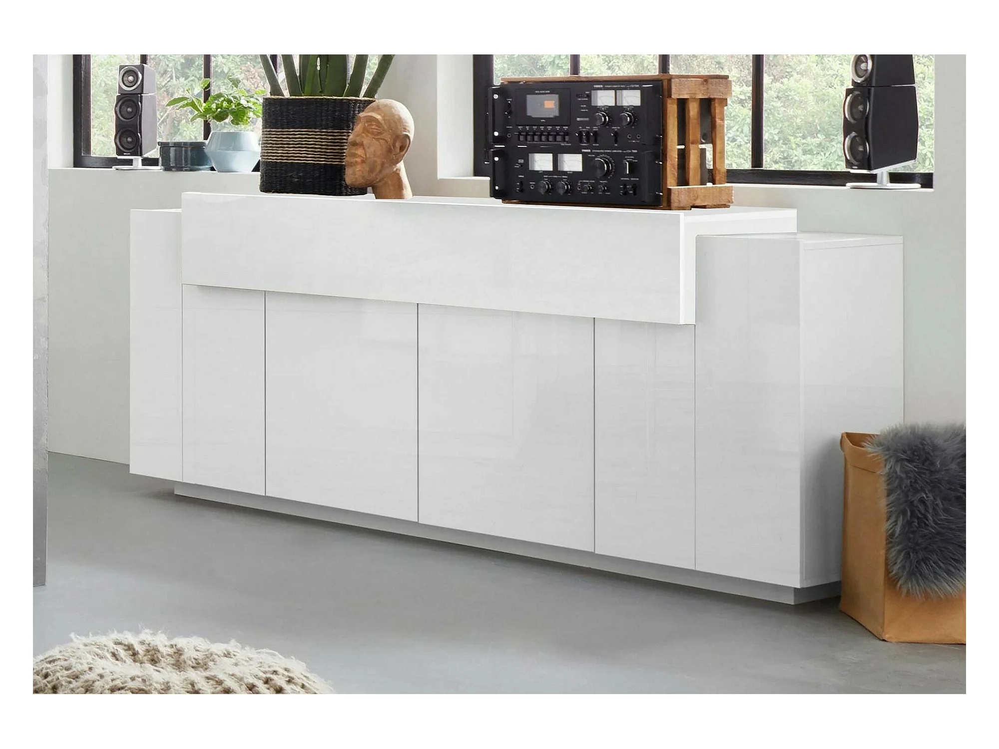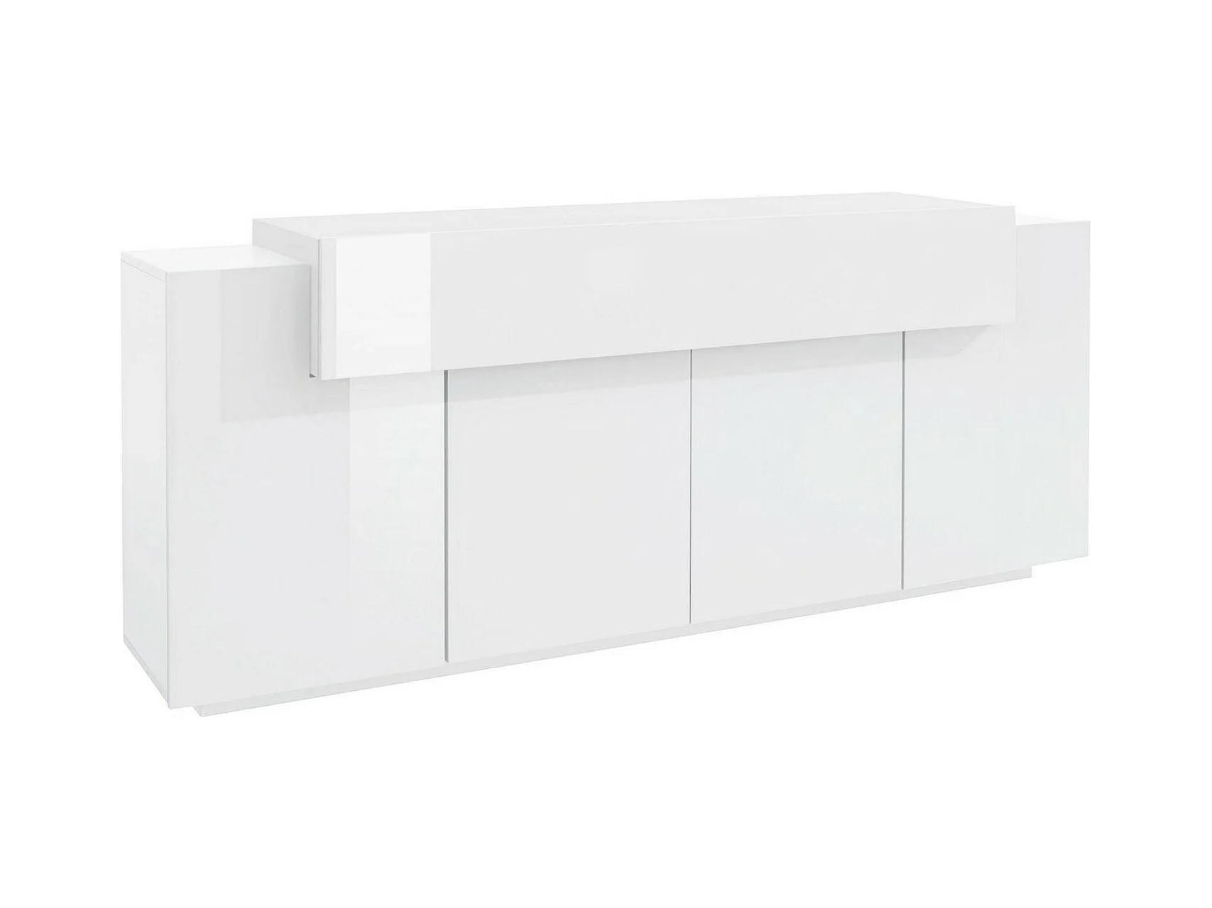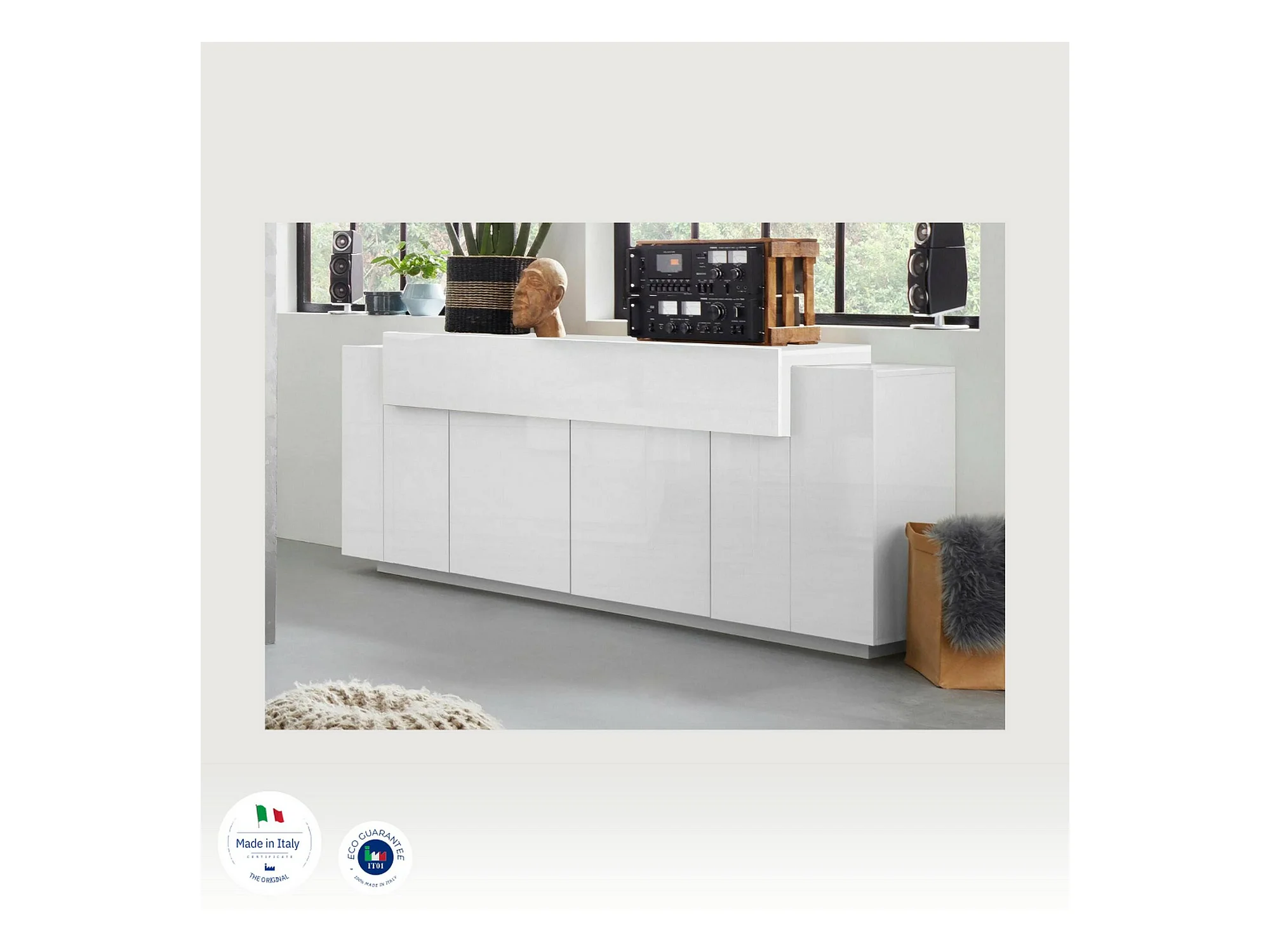 Buffet Loris, Buffet de cuisine 4 portes, Buffet de salon, 100% Made in Italy, 220x45h86 cm, Blanc brillant