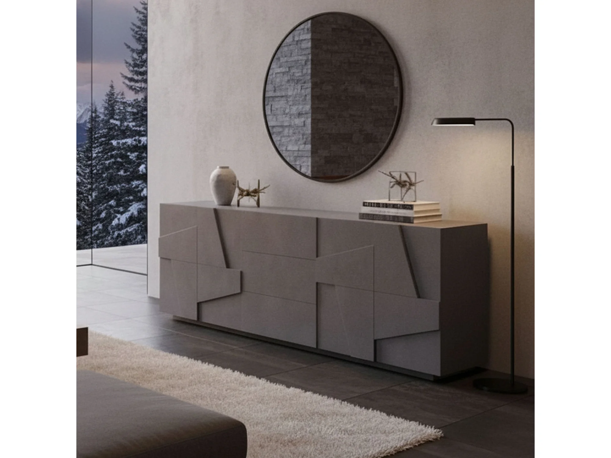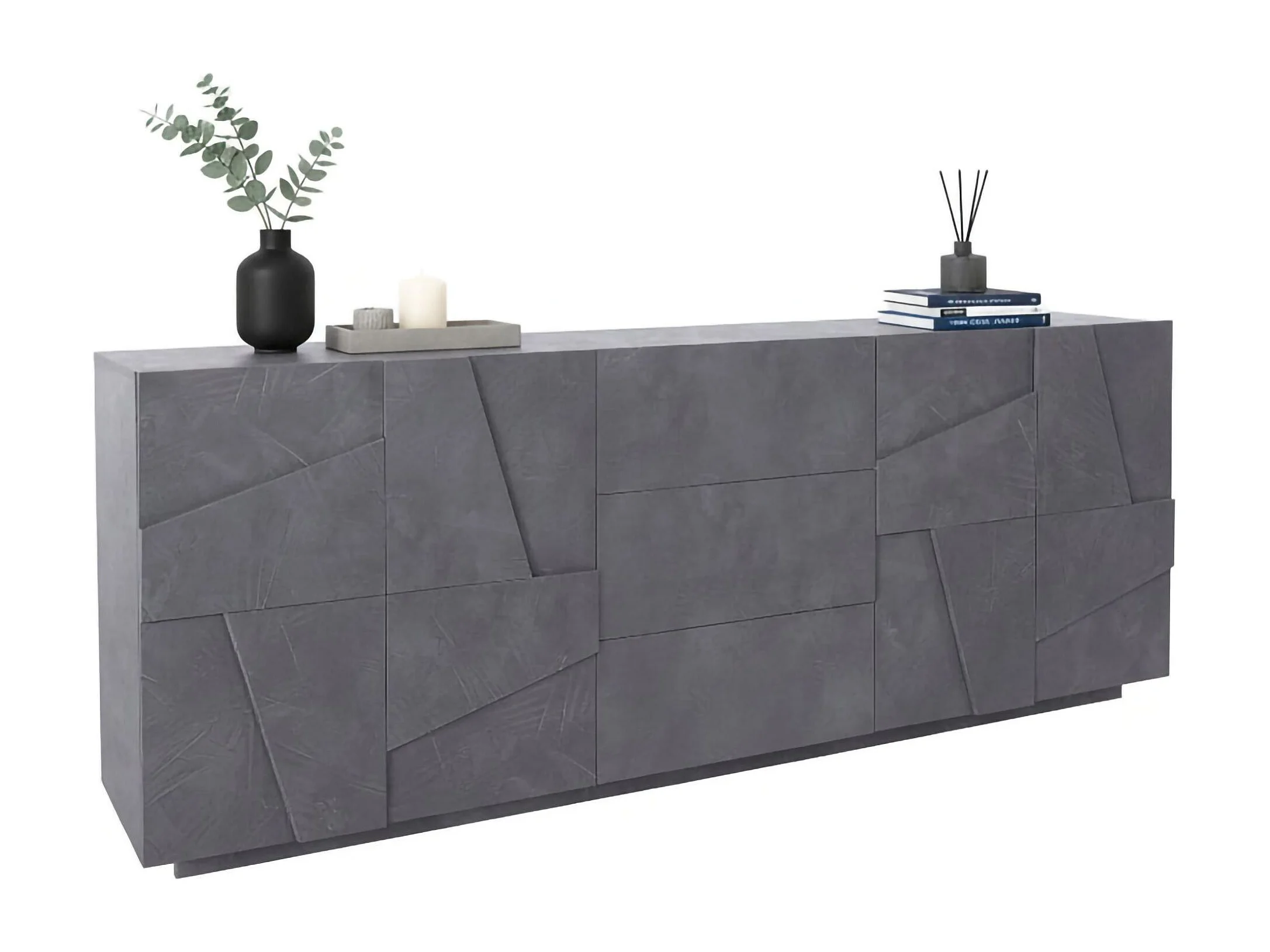 Buffet Mason, Buffet de cuisine avec 4 portes et 3 tiroirs, Buffet de salon, 100% Made in Italy, 224x44h86 cm, Ardoise