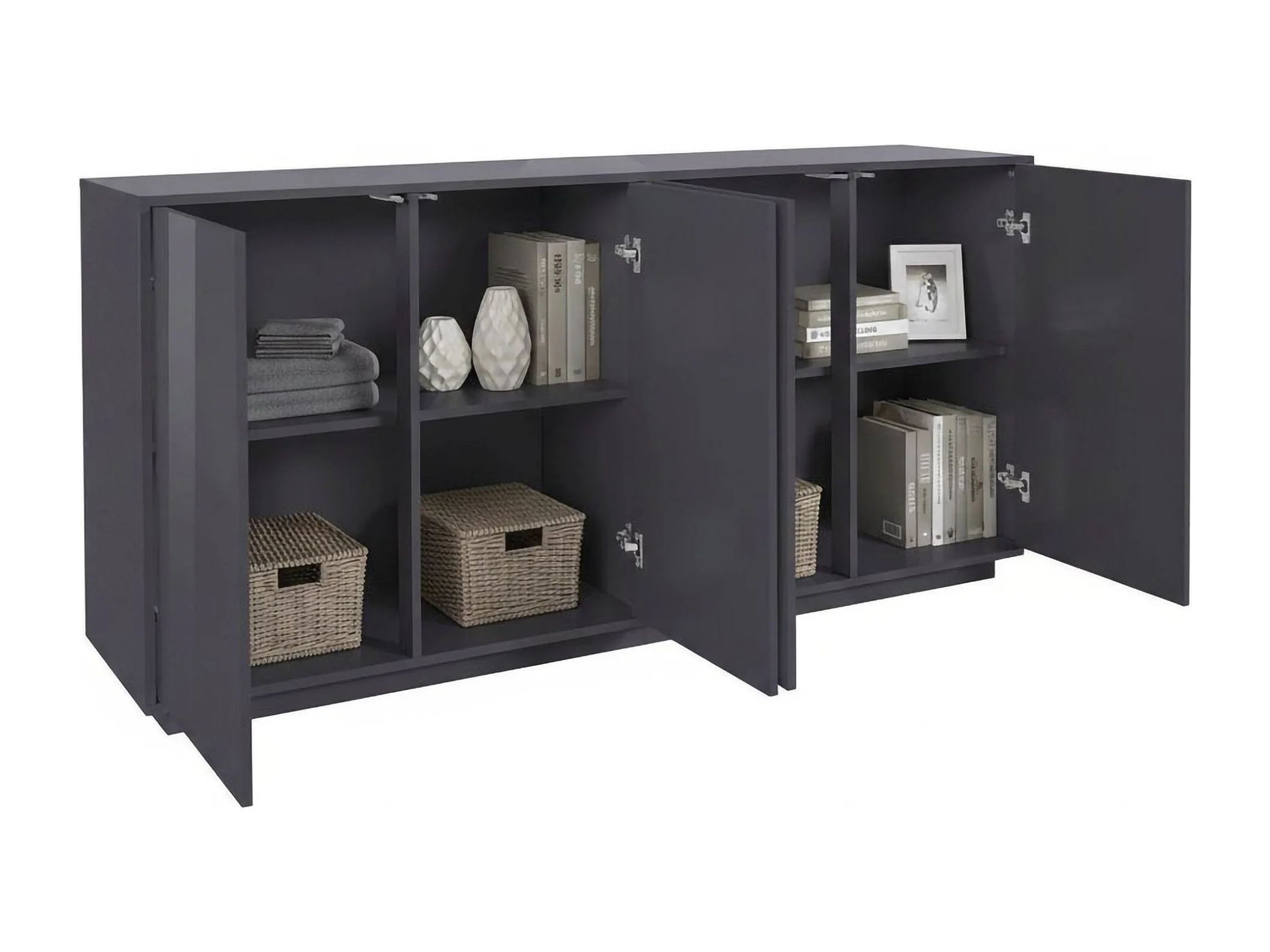 Buffet Virgilio, Buffet de cuisine 4 portes, Buffet de salon, 100% Made in Italy, 180x41h86 cm, Anthracite Brillant