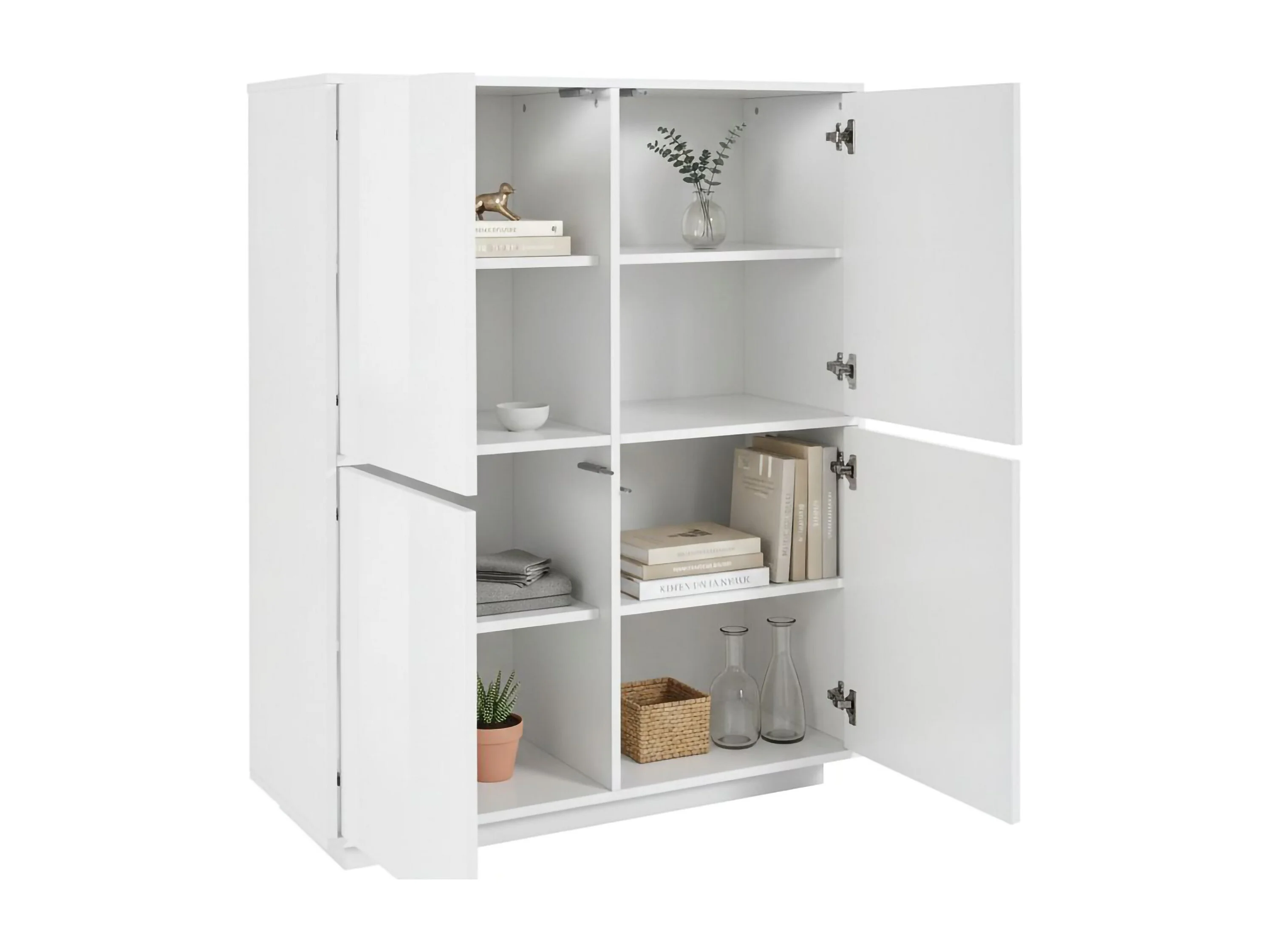 Buffet Zaccaria, Buffet de cuisine 4 portes, Buffet de salon, 100% Made in Italy, 100x41h126 cm, Blanc brillant