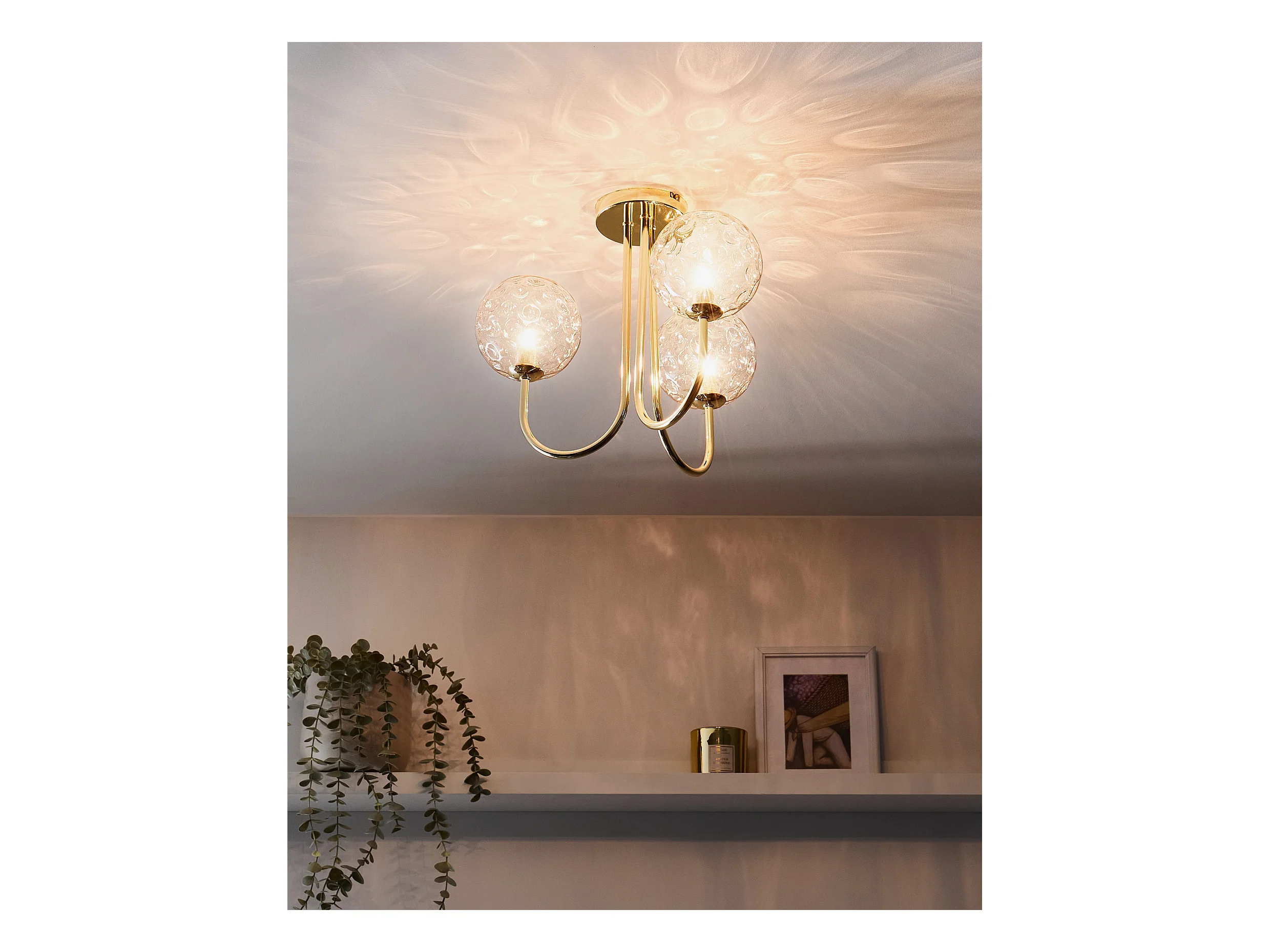 Ideal Lux Shell Plafonnier / Plafonnier Intérieur à 4 Lumières Or avec Verre Ambré, E27