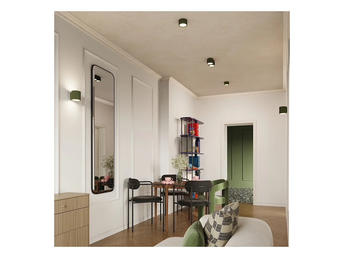 Plafonnier Aura Minimaliste En Aluminium - 1 Sources Lumineuses - L.10 X H.10 Cm - Vert Olive