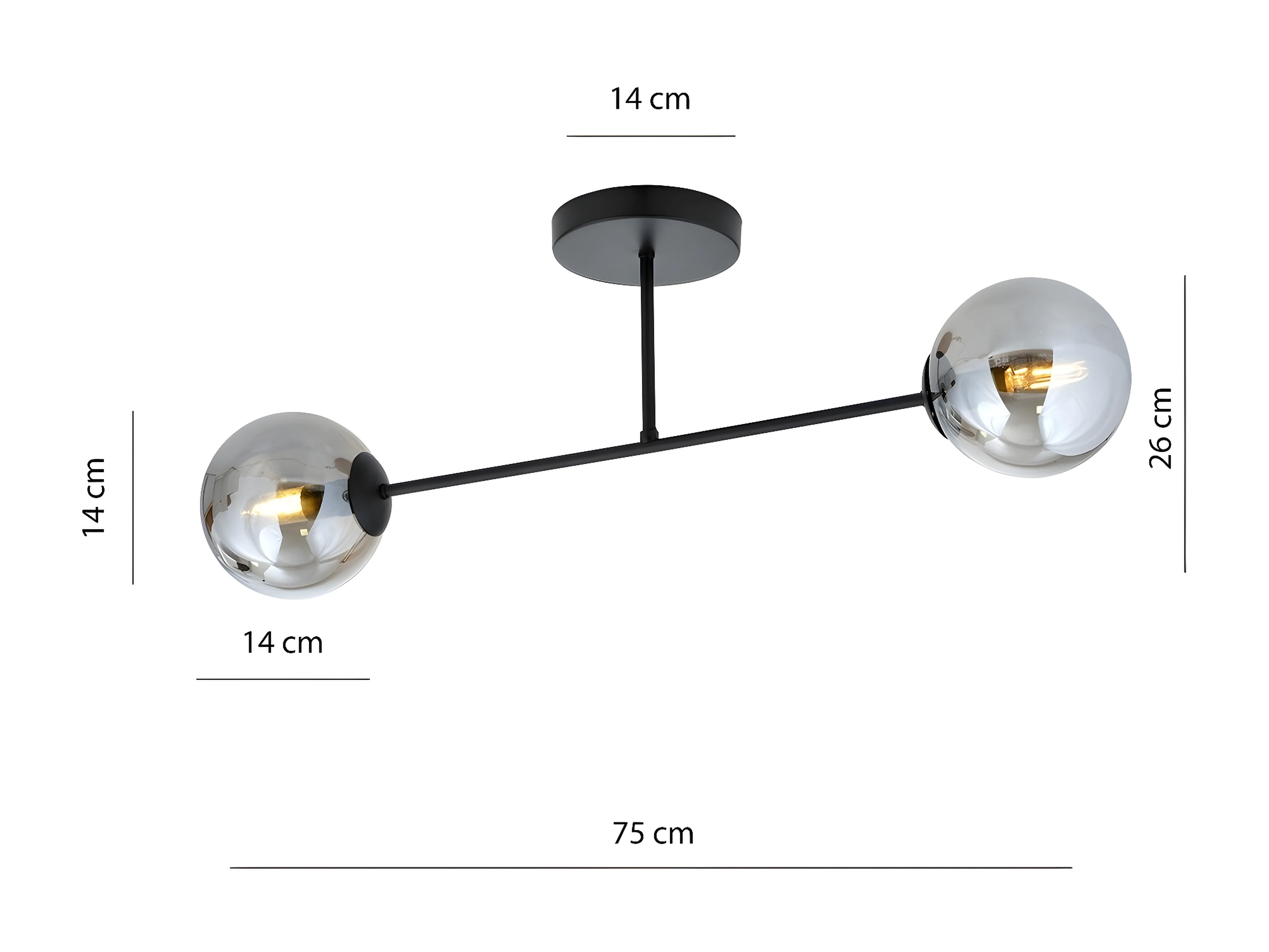 Plafonnier Aurora, Noir, 45x19x19 cm, Seven Design