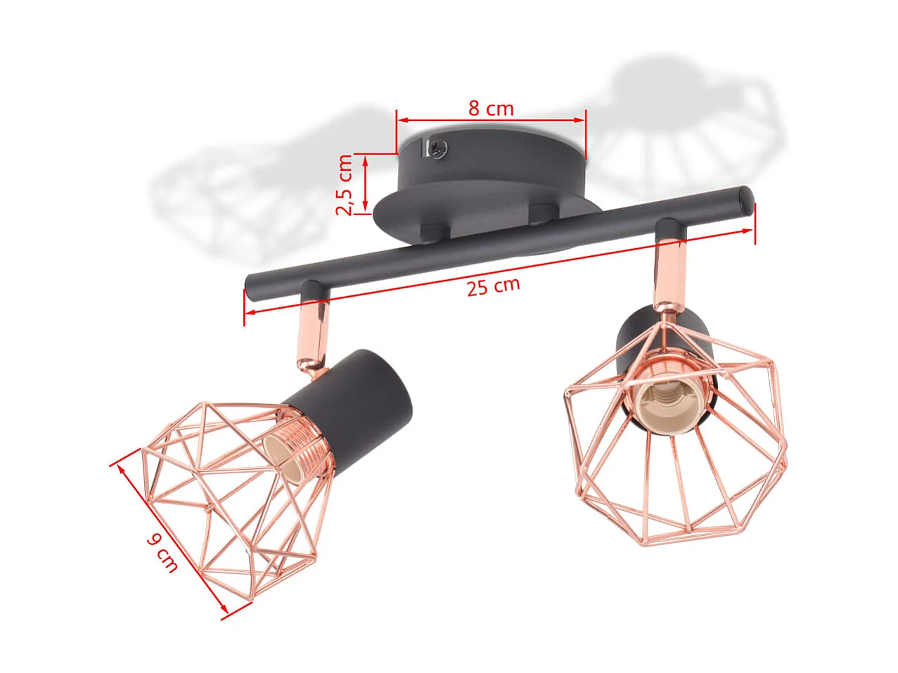 Plafonnier avec 2 projecteurs E14 Noir et cuivre FR754134