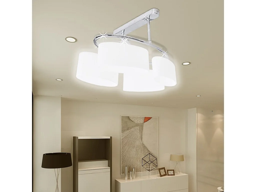 Plafonnier avec abat-jour en verre pour 4 ampoules E14