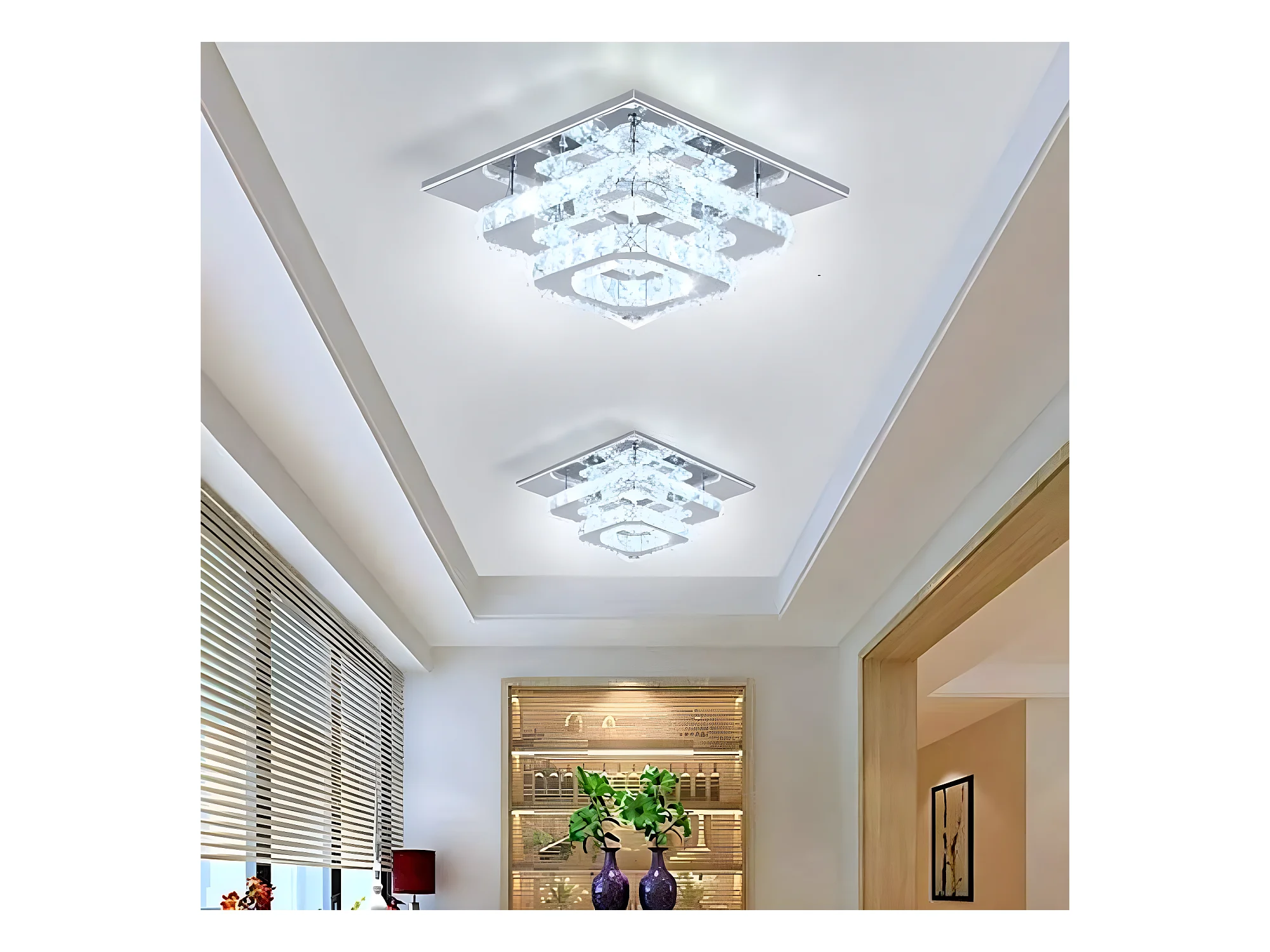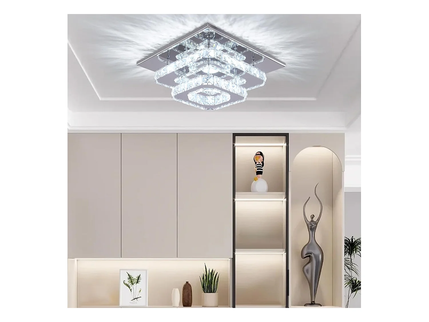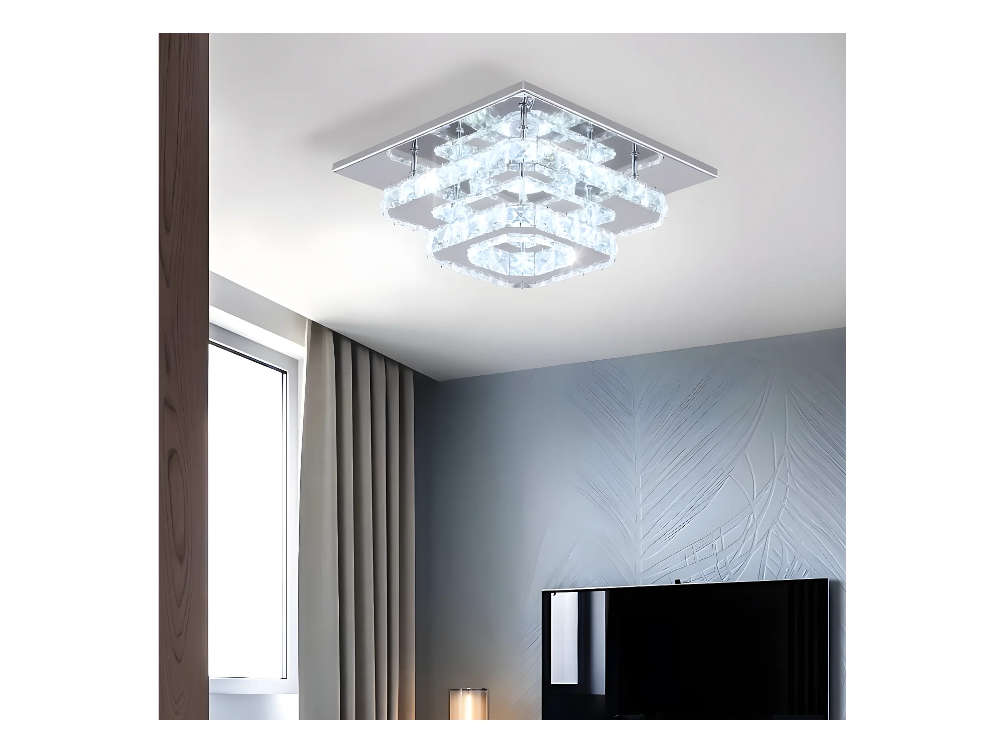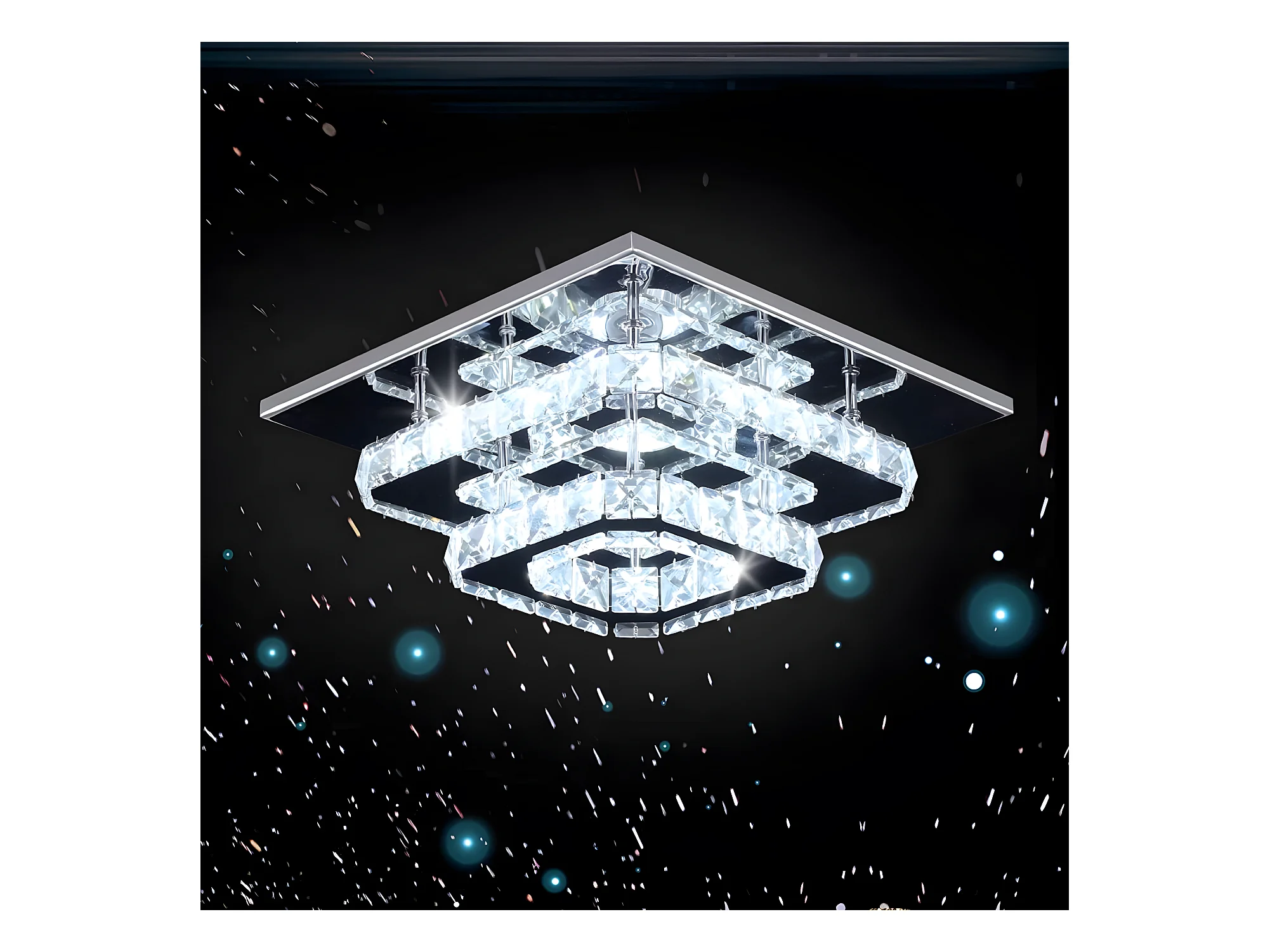 Plafonnier en cristal en acier inoxydable, 30*30*15cm, argenté, LED intégrées 29w, lumière blanc