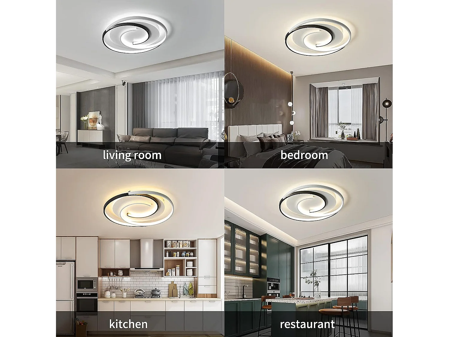 Plafonnier led dimmable avec télécommande moderne, blanc noir, diamètre 50cm, 3000k-6000k