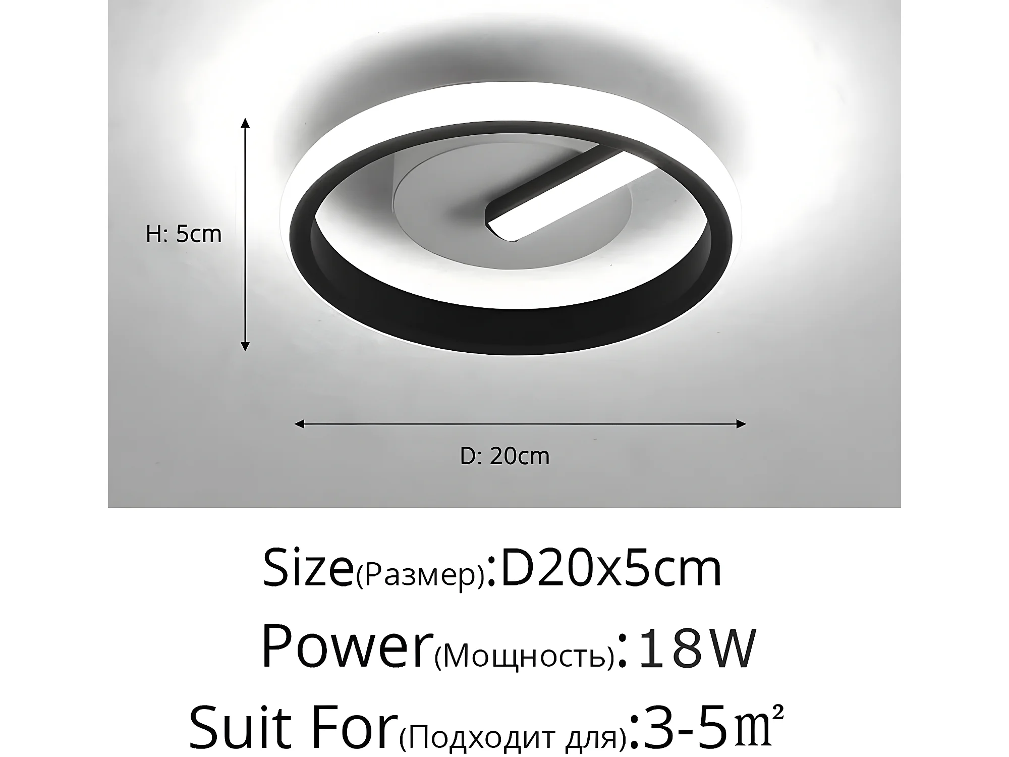 Plafonnier led moderne rond, noir, 24*24*4cm, 18w, en acrylique pour salon chambre