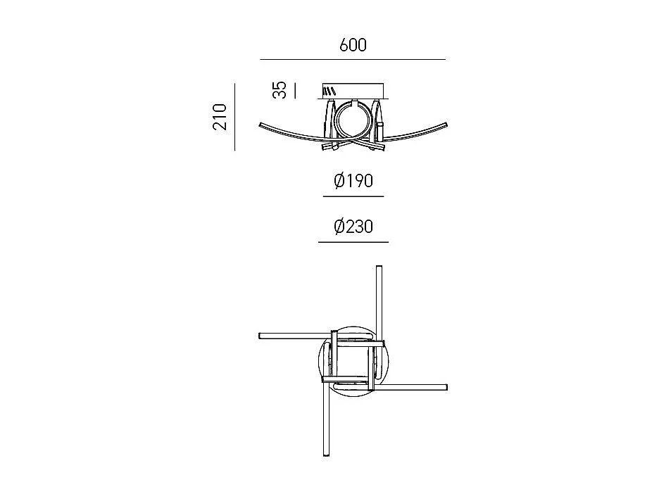 Plafonnier LED moderne Tosca 60W 3200lm lumière chaude 4000K, design sculptural, aluminium blanc satiné, diffuseur opale