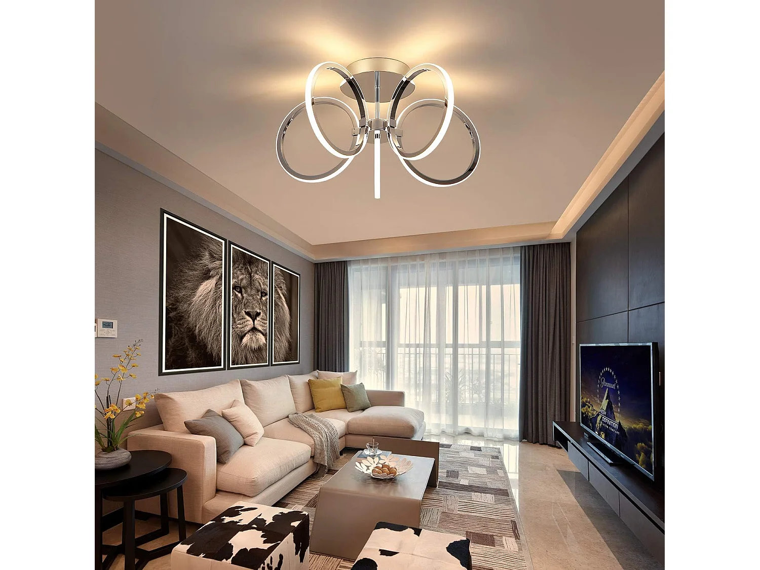 Plafonnier LED NETTLIFE pour salon, lampe de salon à intensité variable, 82 cm, design moderne, doré, 74 W, lampe de chambre avec télécommande