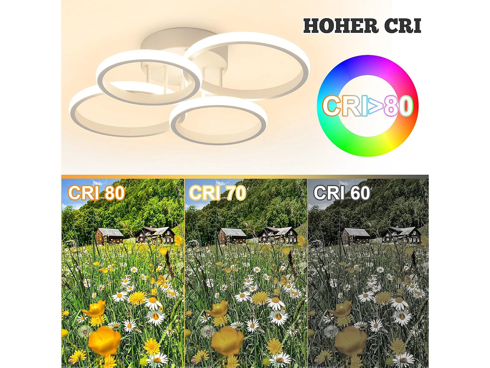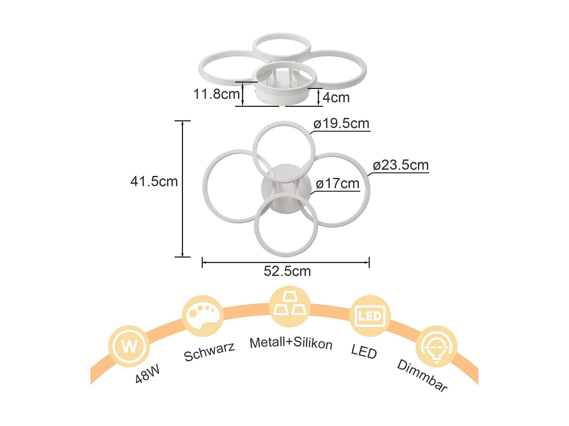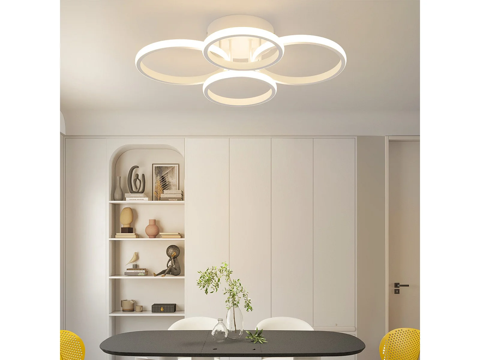 Plafonnier LED NETTLIFE, plafonnier LED à 4 anneaux, intensité variable, blanc, 48 W, lampe de salon