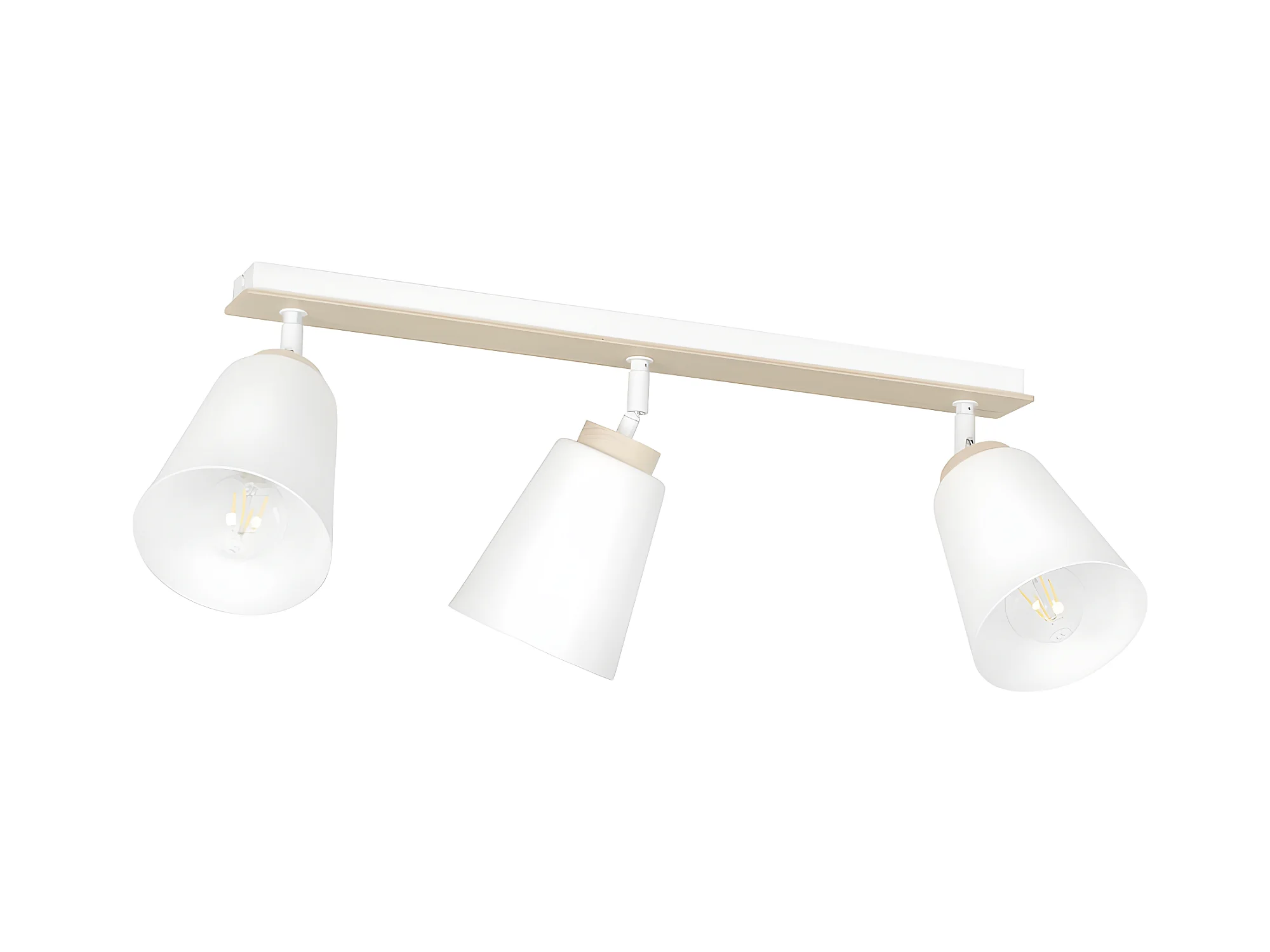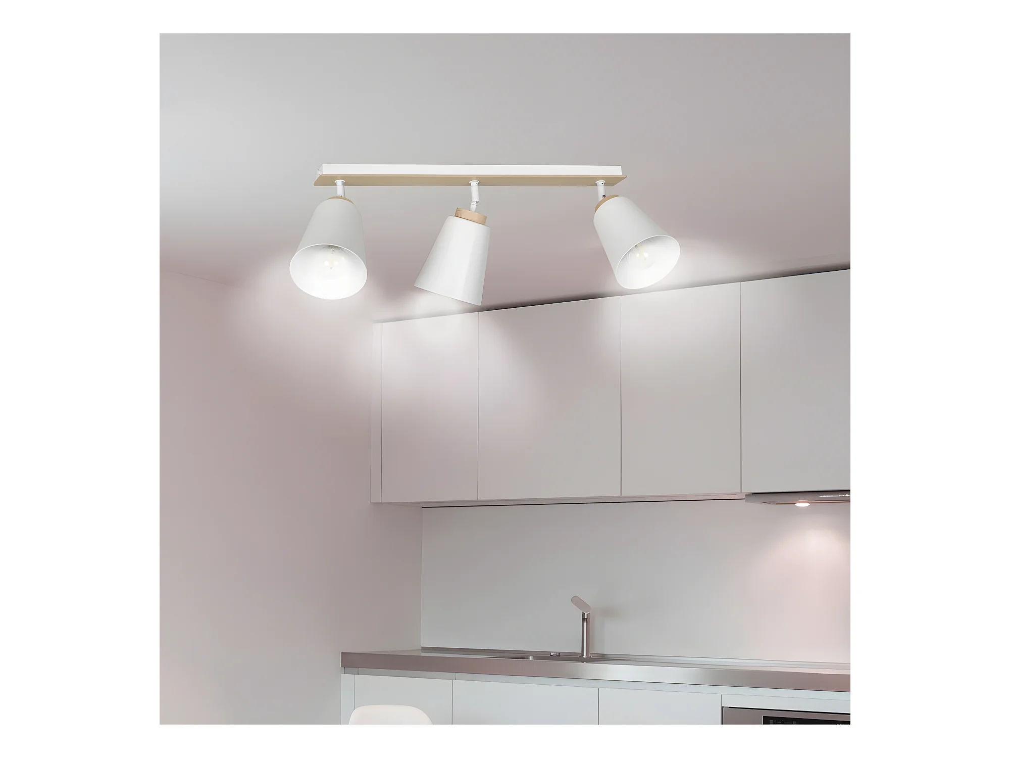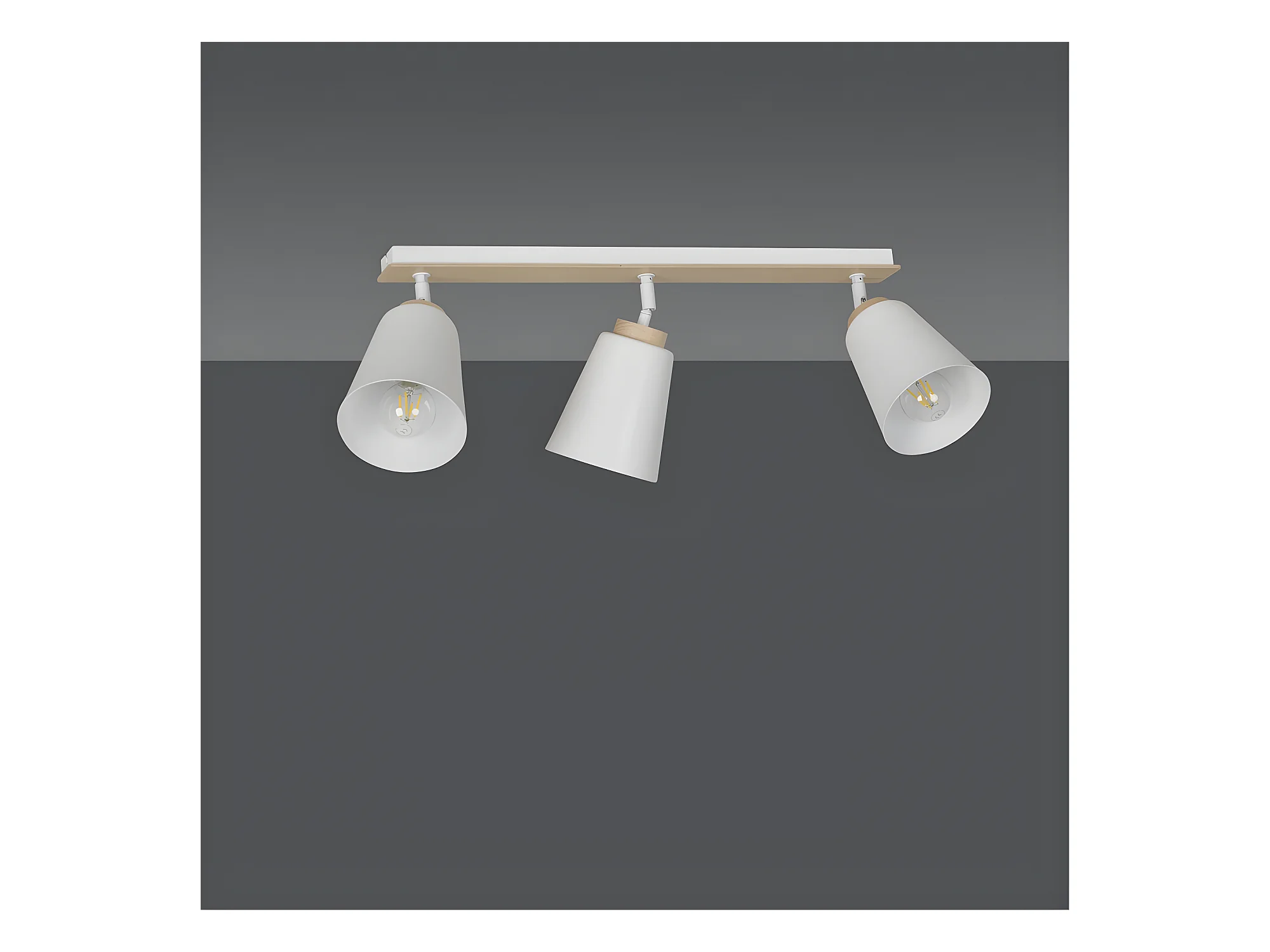 Plafonnier linéaire Tasla en métal et bois avec 3 abat-jour blancs orientables 3xE27