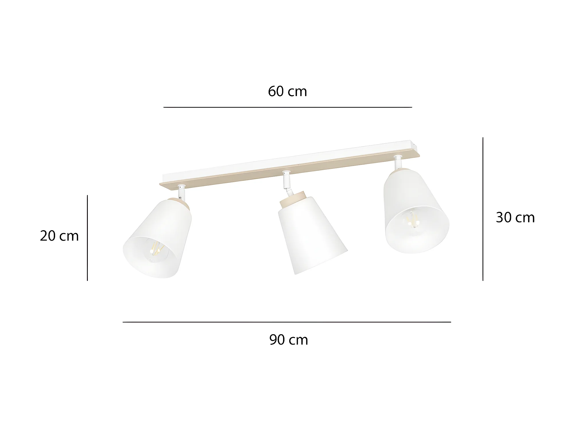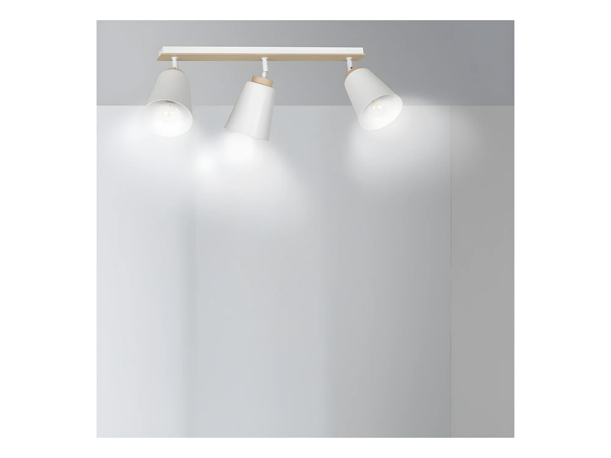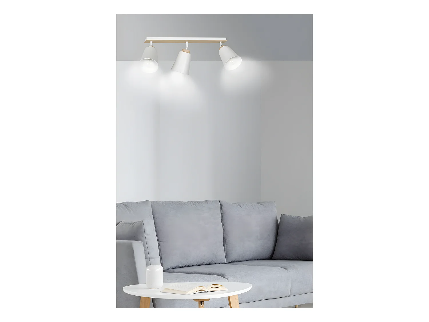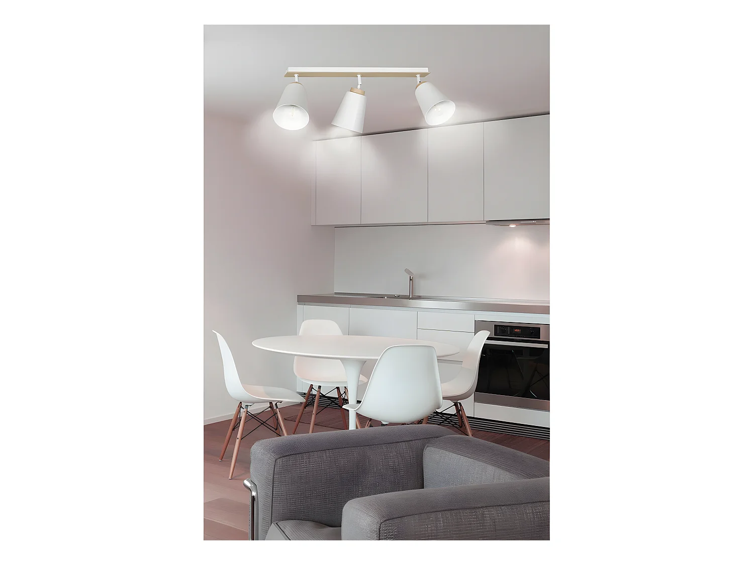 Plafonnier linéaire Tasla en métal et bois avec 3 abat-jour blancs orientables 3xE27