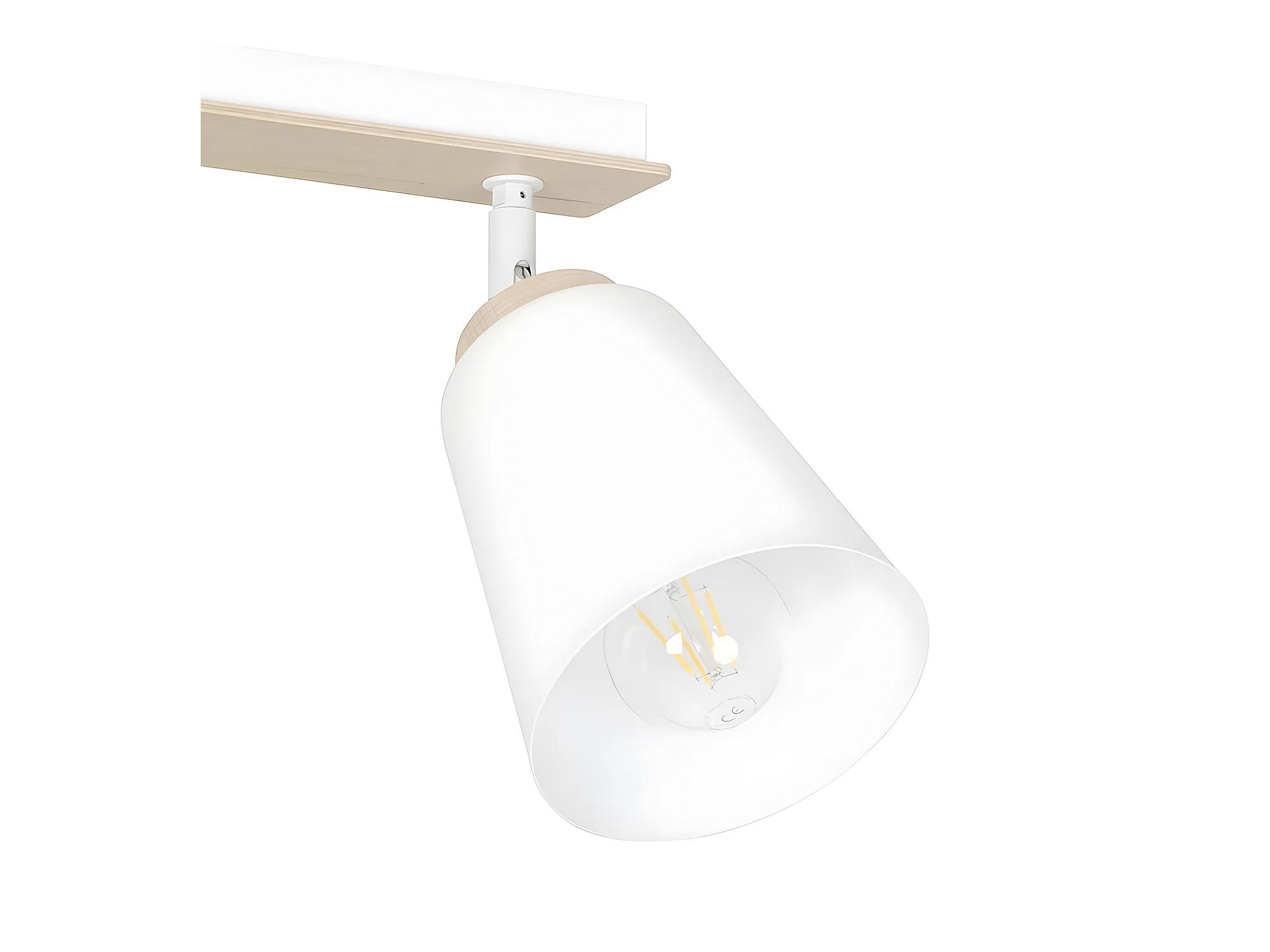 Plafonnier linéaire Tasla en métal et bois avec 2 abat-jour blancs orientables 2xE27