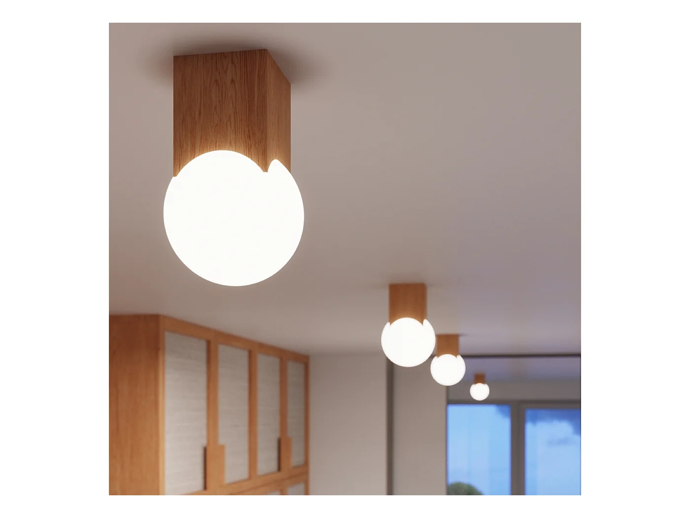 Plafonnier Lumivere minimaliste en bois/verre - 1 sources lumineuses 4000K - L.12 x H.19 cm - bois naturel/blanc