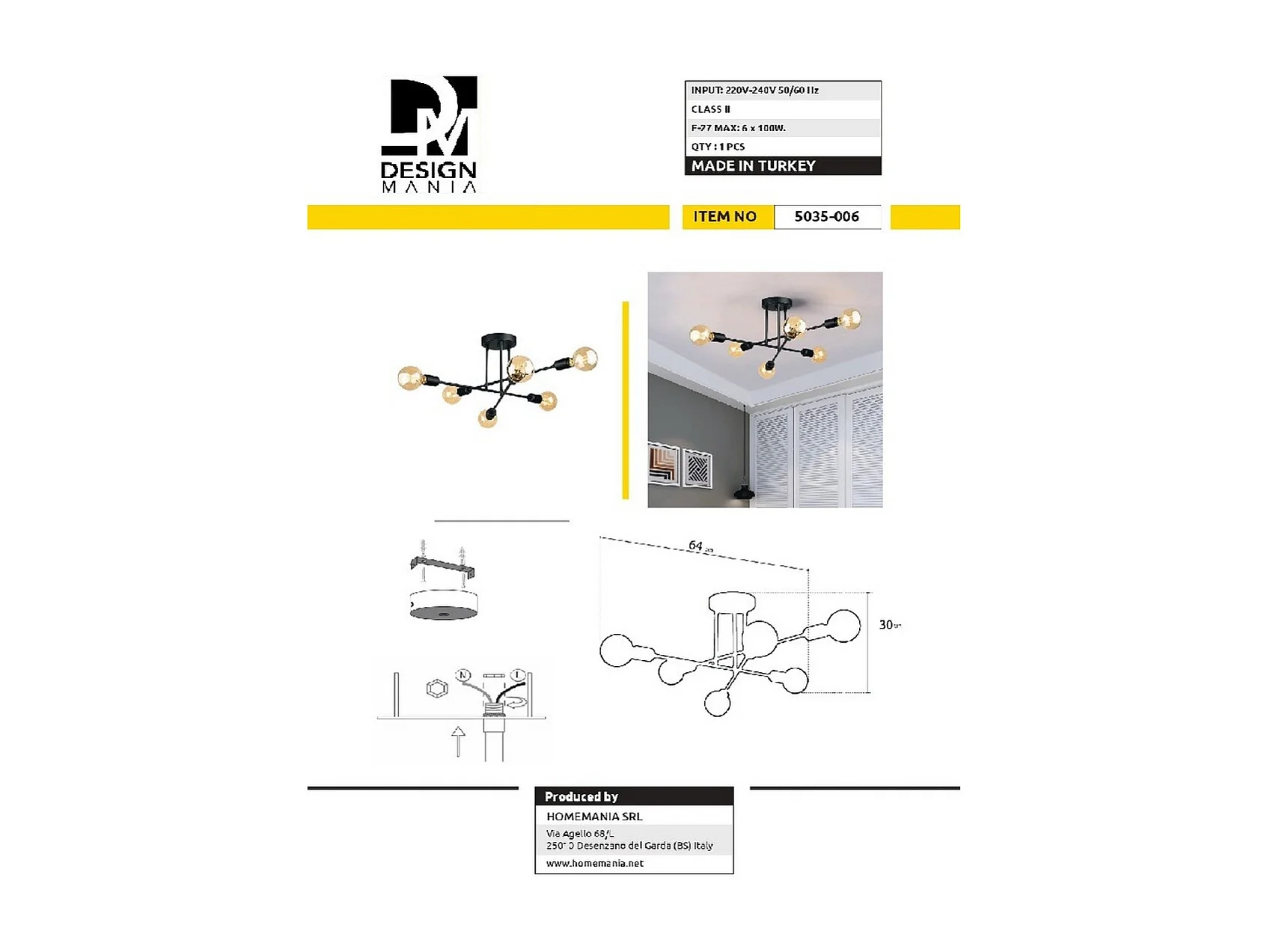 Plafonnier Matera, Noir, 64x64x30 cm, EPIKASA