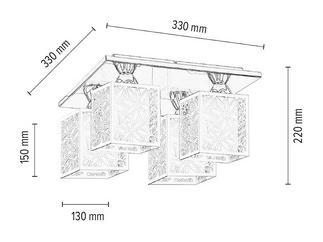 Plafonnier Mino, Blanc, 33x33x22 cm, EPIKASA