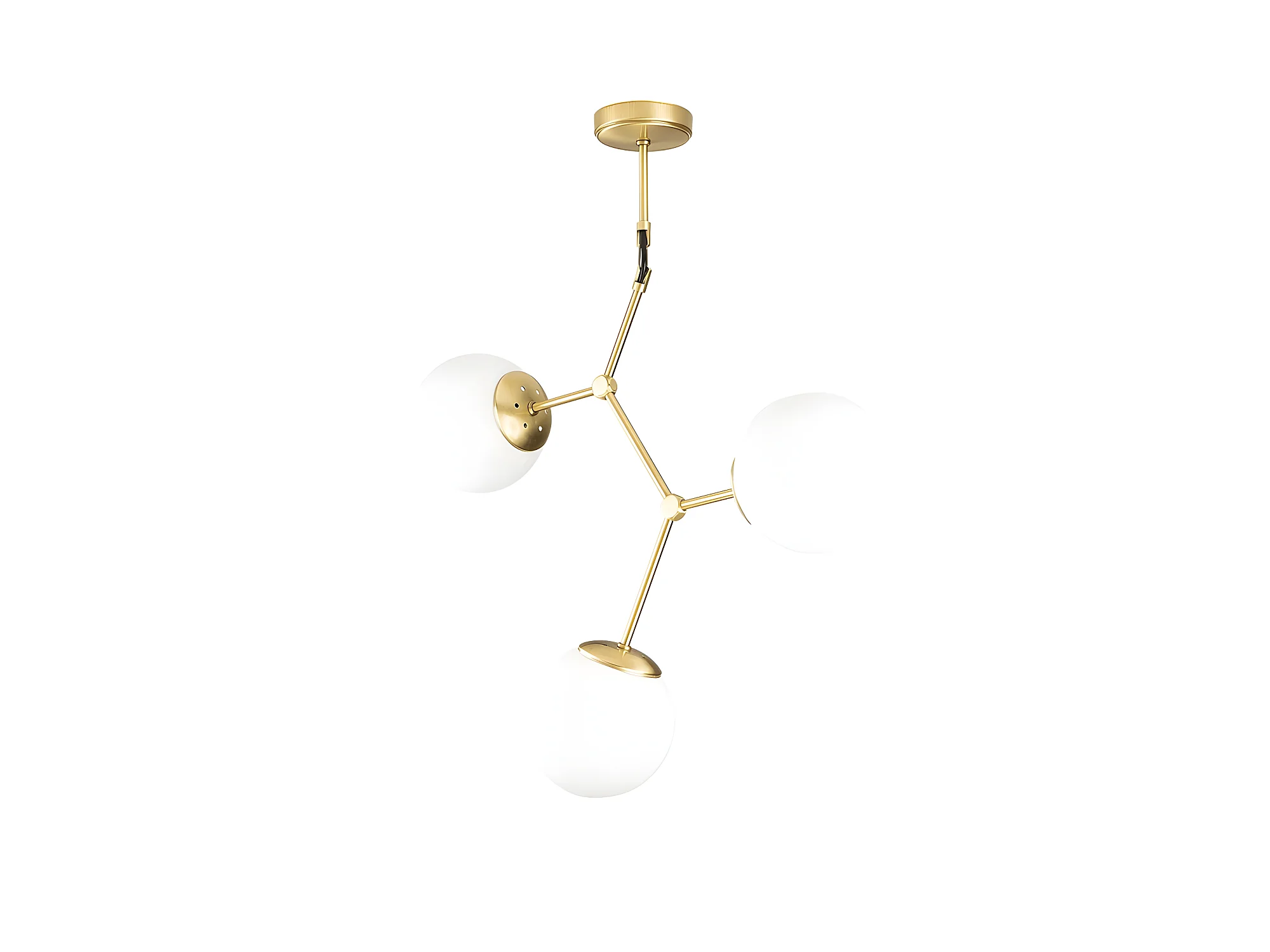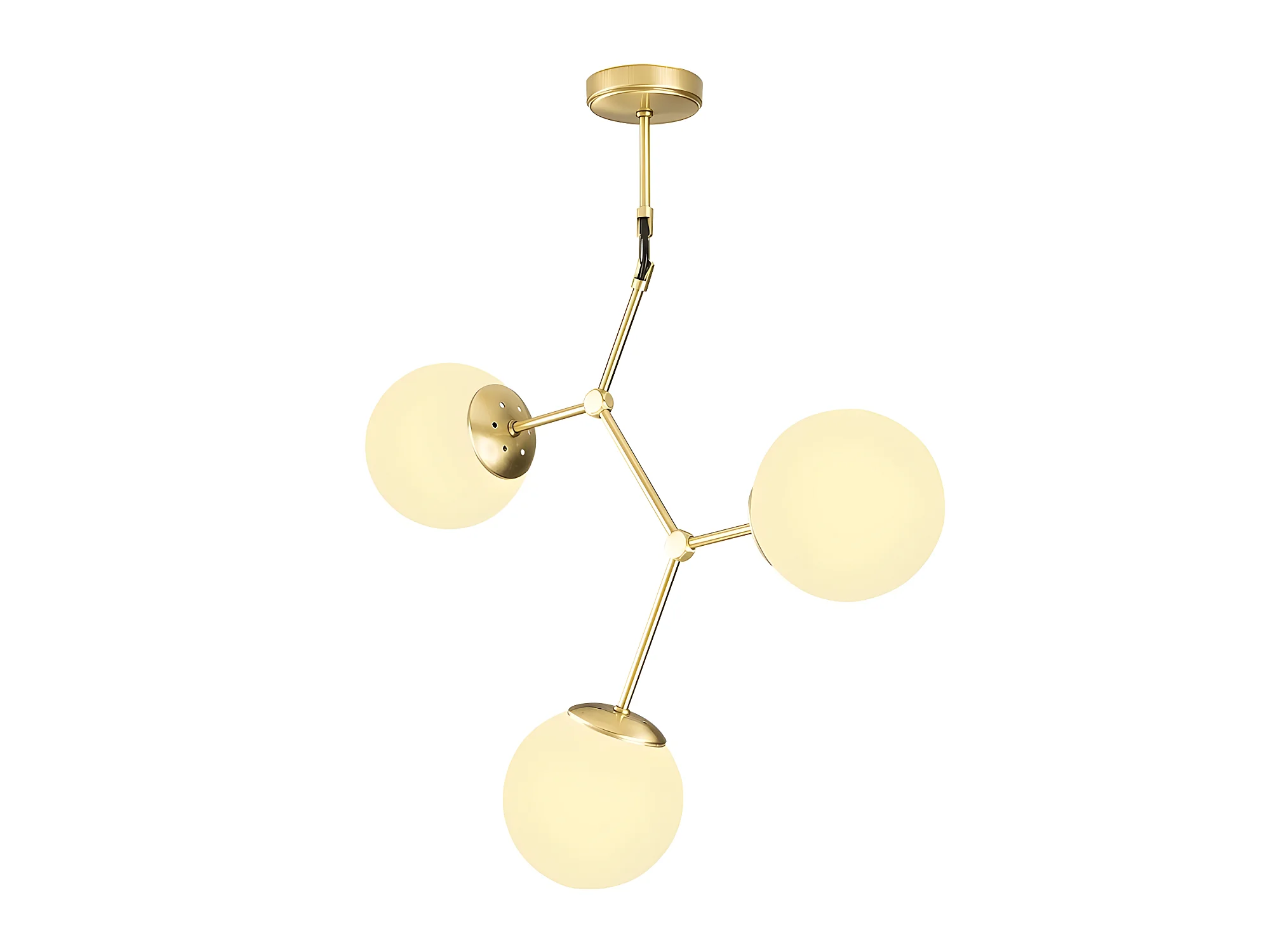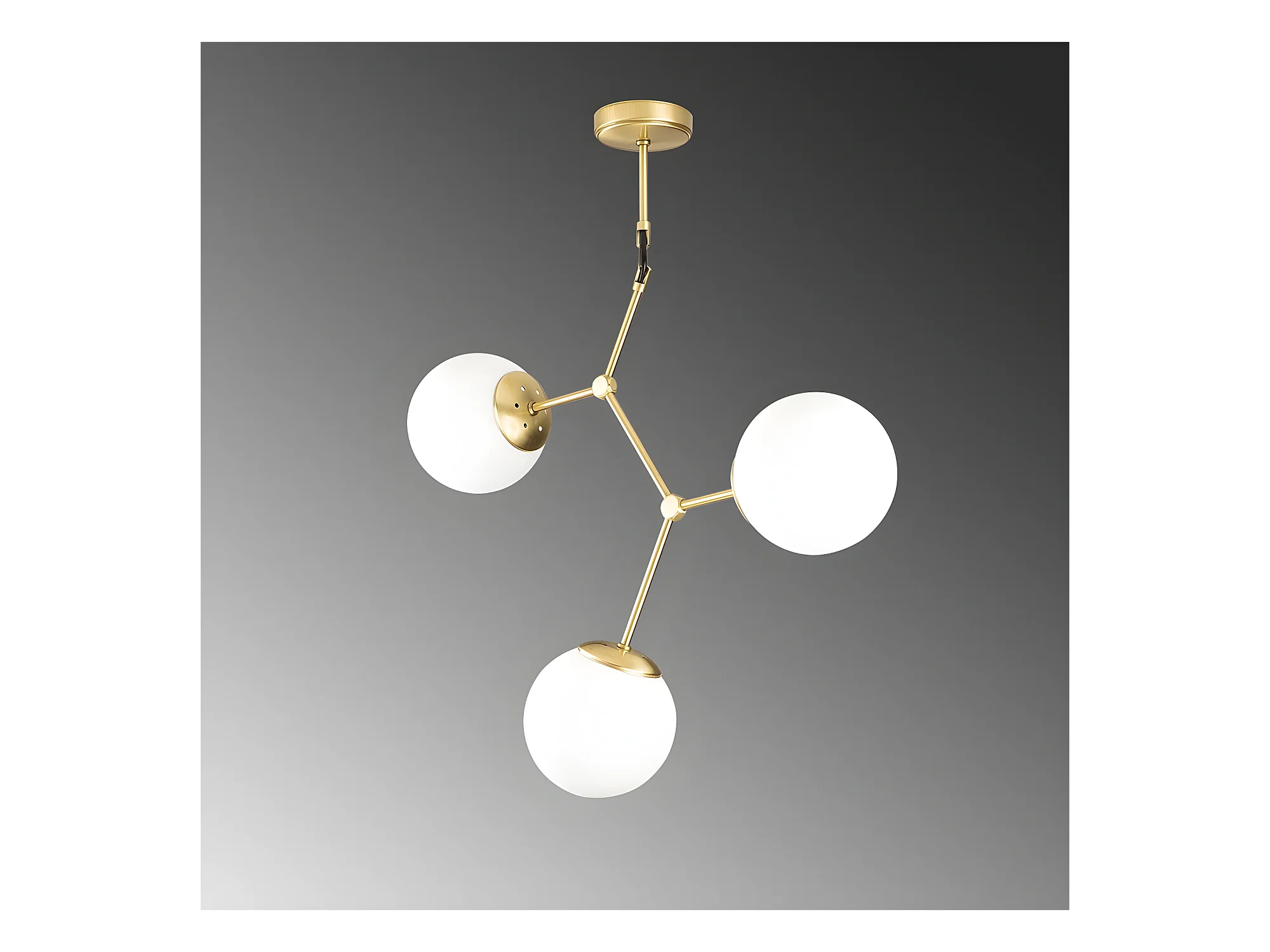 Plafonnier Mulen nordique doré antique avec 3 sphères en verre 3xE27