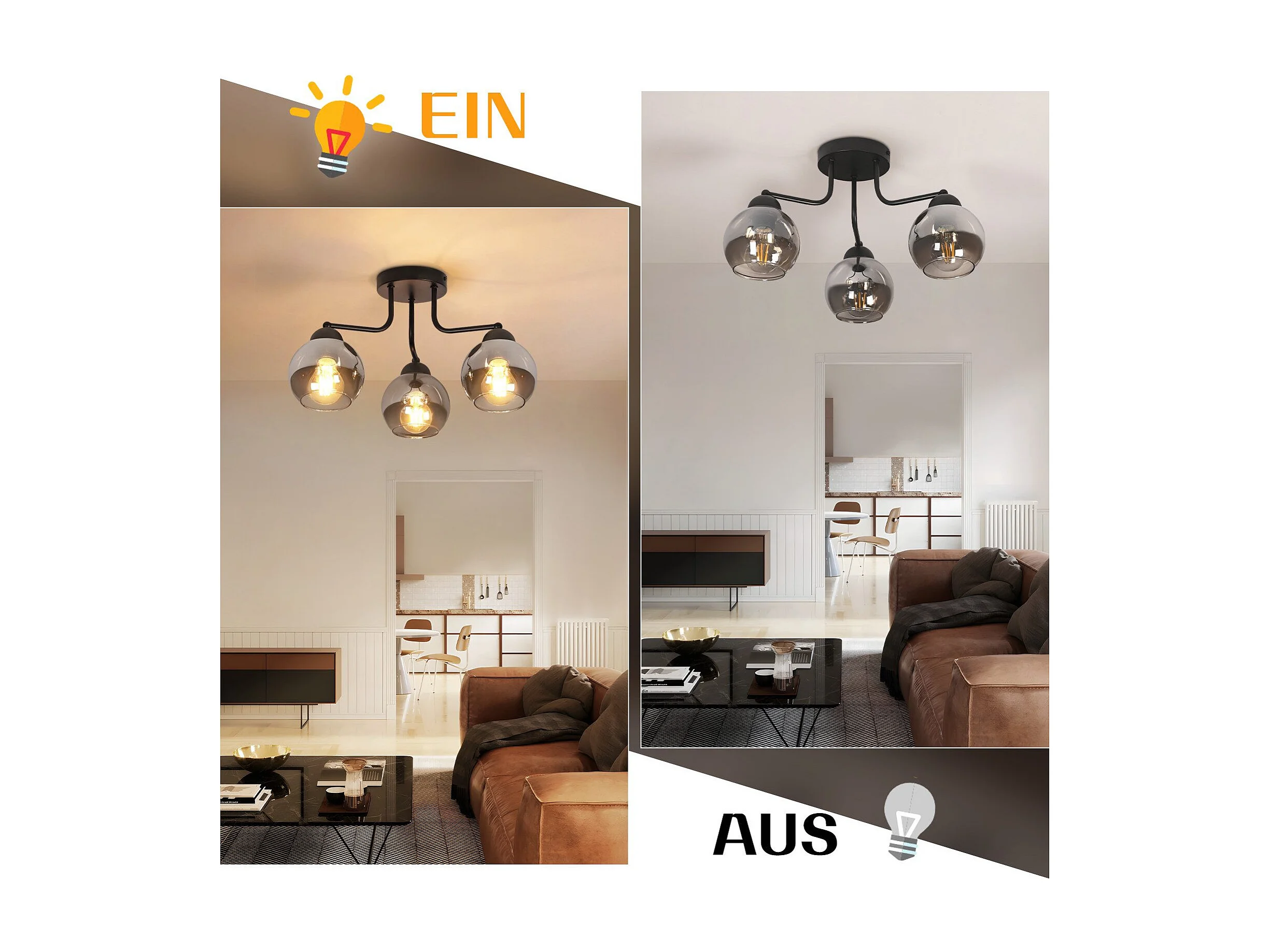 Plafonnier NETTLIFE en verre noir : lampe de cuisine vintage, lampe de couloir industrielle à 3 lampes E27