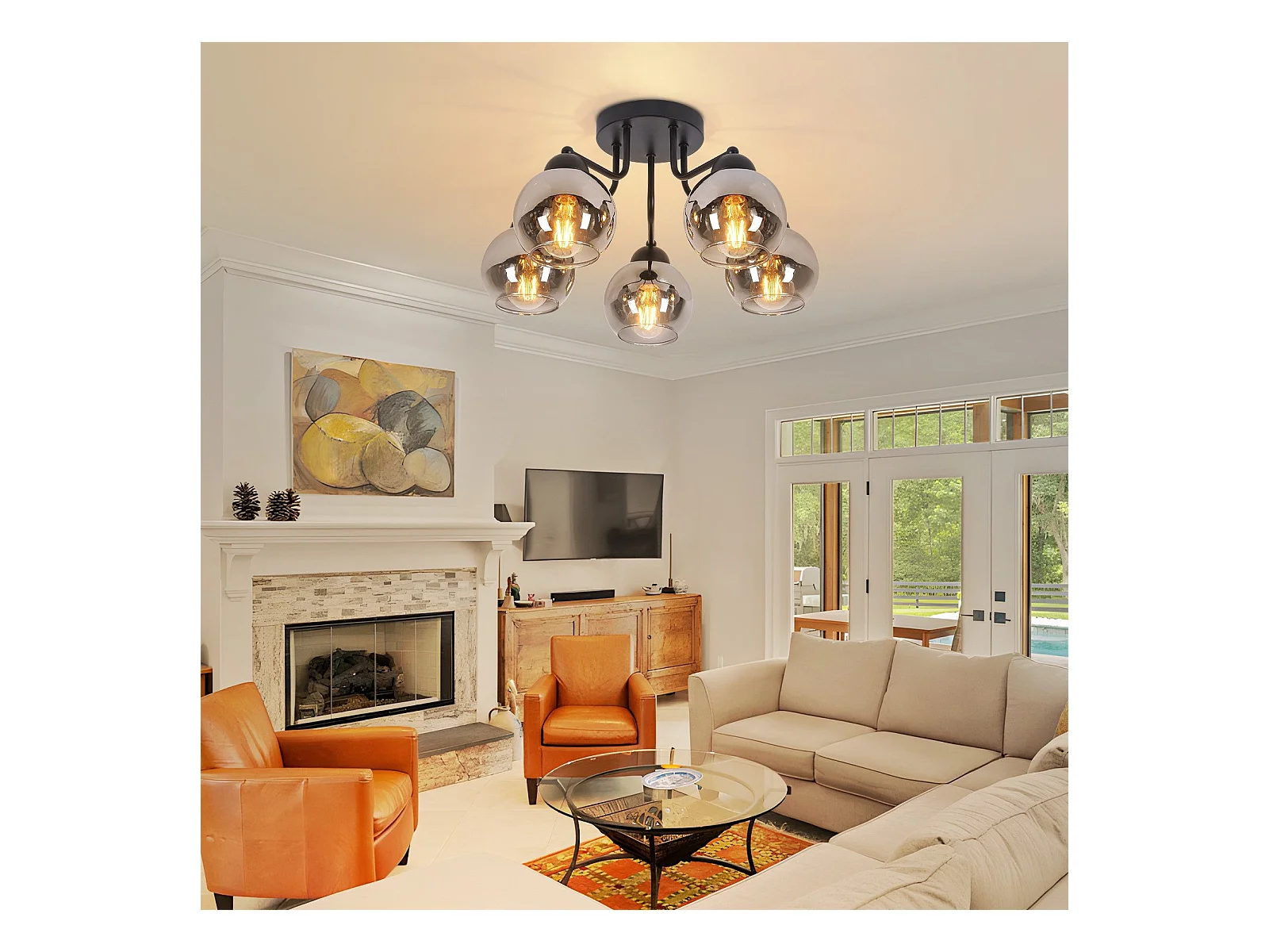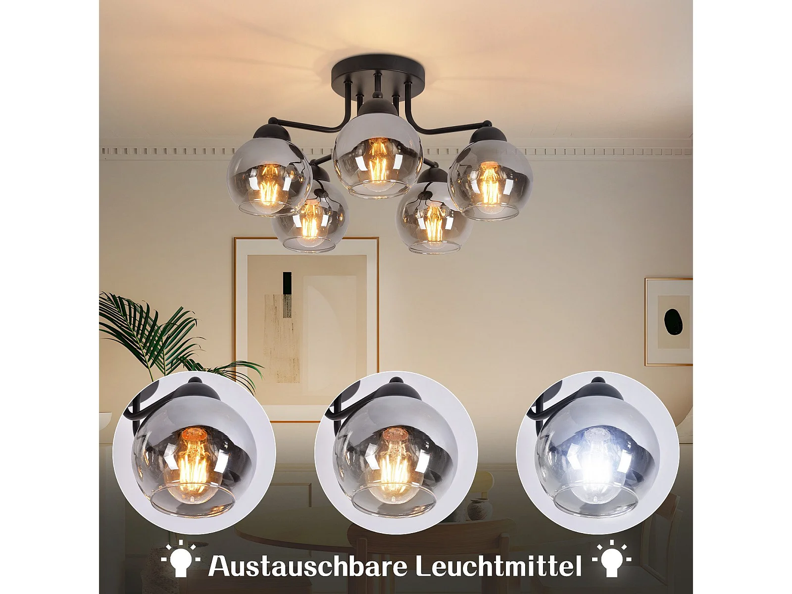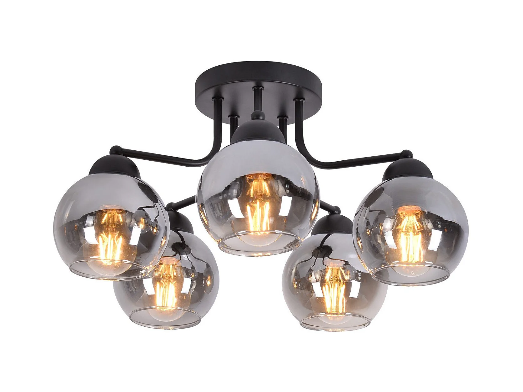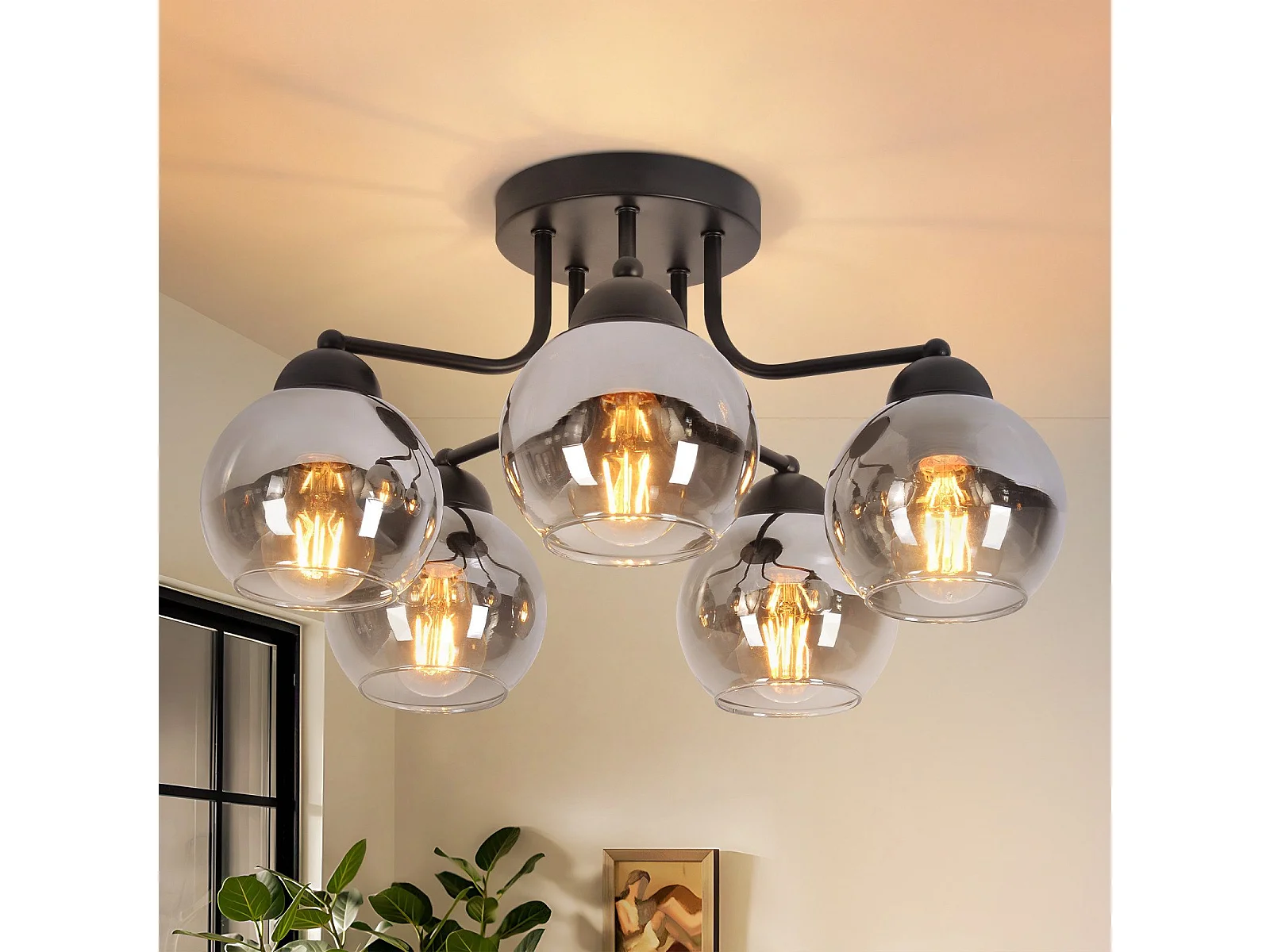 Plafonnier NETTLIFE en verre vintage : noir 5 lumières gris fumé en métal E27